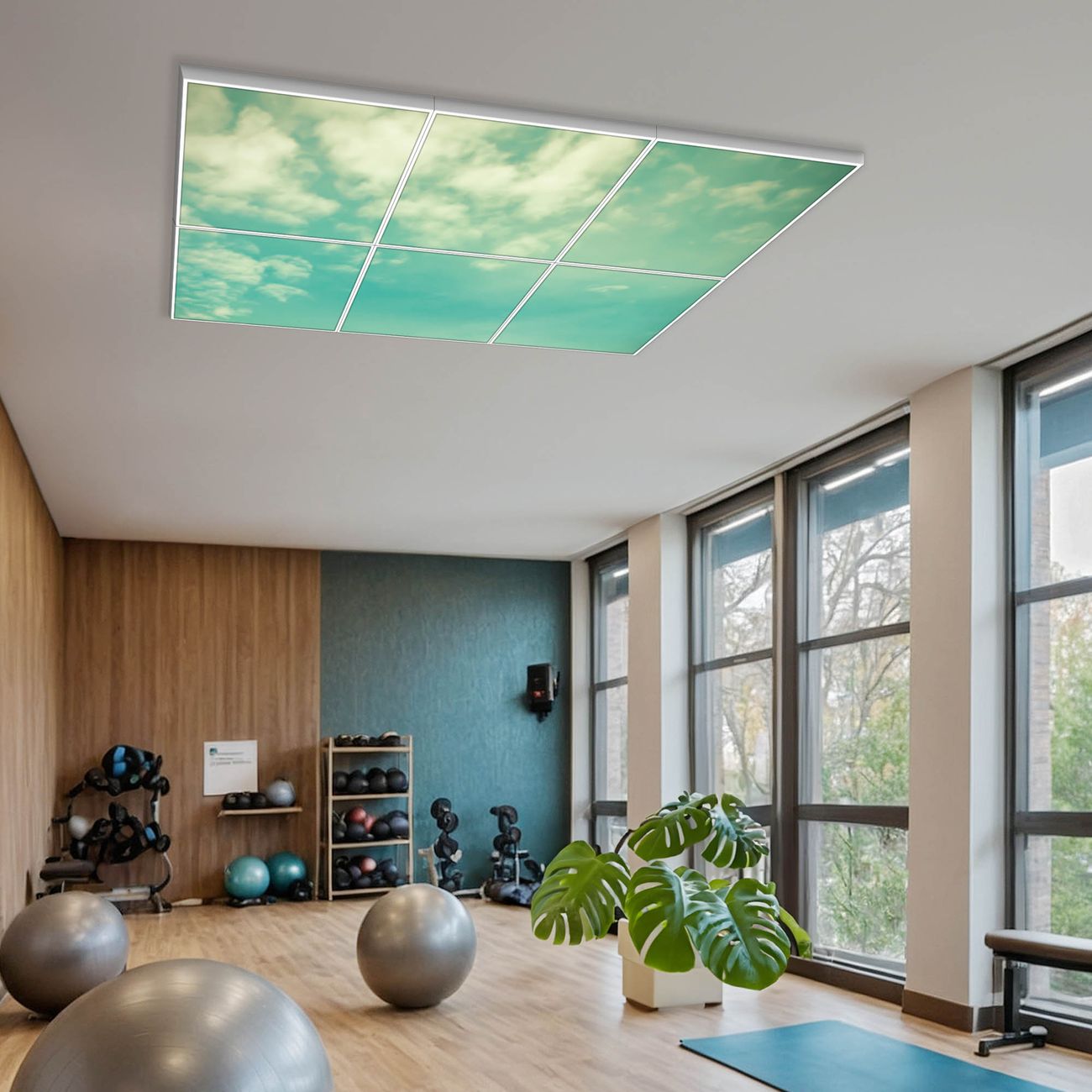 Entdecken Sie unsere vielseitigen Lichtdecken, hier in der Größe 186 x 124cm mit dem Motiv Motiv Leicht Bewölkt - Ihre Beleuchtungslösung für jede Umgebung Beleuchten Sie Ihren Raum nicht nur, sondern schaffen Sie Atmosphäre! Die banjado Lichtdecke verwandelt jeden Ort, ob zu Hause, in Praxen, Büros oder Studios in eine Wohlfühloase. Unsere einzelnen Elemente haben eine genormte Einheitsgröße von 62 x 62cm und können somit in jede gängige Rasterdecken verbaut werden. So finden Sie Ihre passende Ausführung: Gern helfen wir Ihnen, die passende Ausführung zu wählen. Hierfür muss die aktuelle Gegebenheit Ihrer Decke oder Wand beachtet werden. Haben Sie bereits eine Rasterdecke (auch Odenwalddecke genannt)? Hier bestellen Sie lediglich das Motiv + Beleuchtungspanel, denn beides wird in die bereits vorhandene Decke eingelegt. Haben Sie eine glatte Decke mit Lichtauslass oder möchten die Lichtdecke an der Wand befestigen? Hier bestellen Sie bitte Motiv + Beleuchtungspanel + Deckenbefestigung, eine Aufbauanleitung liegt immer bei. Die Lichtdecke kann sowohl an der Decke als auch an der Wand montiert werden, perfekt für kreative Lichtakzente oder alternative Beleuchtungslösungen. Haben Sie bereits eine Lichtdecke und möchten nur das Motiv wechseln? Hier bestellen Sie bitte nur Motiv, der Wechsel ist denkbar einfach. Der Aufbau Ihrer banjado Lichtdecke gestaltet sich unkompliziert, dank einer verständlichen Anleitung, die Ihnen Schritt für Schritt durch den Montageprozess hilft. Für die endgültige Installation und den sicheren Anschluss empfehlen wir die Hinzuziehung eines Fachmanns, um die optimale Funktion und Sicherheit Ihrer Beleuchtung zu gewährleisten. Falls Sie einen Fachmann für die Installation benötigen, geben Sie uns gern Bescheid, wir vermitteln Ihnen gern einen geeigneten Ansprechpartner aus Ihrer Nähe. Steuerung: Steigern Sie Ihr Beleuchtungserlebnis mit der nahtlosen Integration in Ihr Smart Home. Durch die Kompatibilität mit der SmartLife App, Alexa und Google Assistant wird Ihr Smartphone zur zentralen Steuerungseinheit. Ihr Handy fungiert hierbei sozusagen als Fernbedienung. Legen Sie individuelle Lichtszenen in der App fest, die bei Aktivierung über den Wand-Ein-/Ausschalter immer wieder abgerufen werden können ohne Handy. Mit der Szenenfunktion in der Smart App können Sie die Beleuchtung personalisieren und steuern, sodass sie auf Ihre individuellen Bedürfnisse, Tagesrhythmus und Stimmung zugeschnitten ist. Beispielsweise können Sie sich in der Morgendämmerung durch ein sanftes Licht wecken lassen oder das Licht der Praxis werktags um 7 Uhr automatisch einschalten lassen. Dieses kann dann natürlich auch zu einer bestimmten Zeit automatisch ausgeschaltet werden. Motivwahl: Diese einzigartige Lichtdecke zeichnet sich durch ihre Fähigkeit aus, die Lichtfarbe je nach gewähltem Motiv anzupassen - ein Baum wirft ein sanftes grünes Licht, während eine Wolkendecke Ihren Raum in ein beruhigendes blaues Leuchten hüllt. Berücksichtigen Sie dies bitte bei Ihrer Motivauswahl. Sie können das Motiv jederzeit ohne großen Aufwand austauschen, ob nach Jahreszeit oder anderem Anlass, unsere Auswahl lässt kaum Wünsche offen. Wir fertigen Ihnen gern eine personalisierte Lichtdecke mit einem eigenen Motiv oder Logo oder Foto, schreiben Sie uns jederzeit an. Technische Daten: Das Motiv ist auf einer 4mm starken Acrylglas Scheibe aufgebracht, das Gesamtgewicht Ihrer Ausführung beträgt 29,6kg. Die Farbtemperatur lässt sich frei einstellen von 3000 bis 6000 Kelvin, damit können Sie stufenlos zwischen warmweiß, neutralweiß und kaltweiß wählen. Die Gesamtleistung bei Ihrer gewählten Ausführung beträgt 240W. Der Lichtstrom beträgt 3600 Lumen, die Nennspannung 230 V. Die Lichtdecke ist mit Schutzart IP20 für den Innenbereich konzipiert und sollte nicht im Nassbereich verwendet werden.