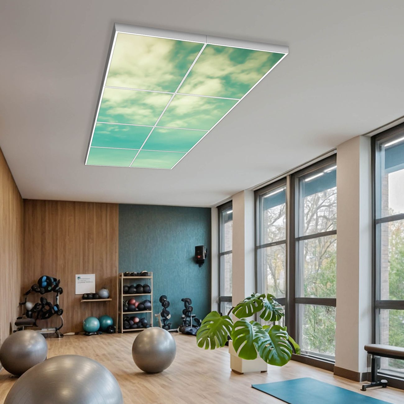 Entdecken Sie unsere vielseitigen Lichtdecken, hier in der Größe 124 x 248cm mit dem Motiv Motiv Leicht Bewölkt - Ihre Beleuchtungslösung für jede Umgebung Beleuchten Sie Ihren Raum nicht nur, sondern schaffen Sie Atmosphäre! Die banjado Lichtdecke verwandelt jeden Ort, ob zu Hause, in Praxen, Büros oder Studios in eine Wohlfühloase. Unsere einzelnen Elemente haben eine genormte Einheitsgröße von 62 x 62cm und können somit in jede gängige Rasterdecken verbaut werden. So finden Sie Ihre passende Ausführung: Gern helfen wir Ihnen, die passende Ausführung zu wählen. Hierfür muss die aktuelle Gegebenheit Ihrer Decke oder Wand beachtet werden. Haben Sie bereits eine Rasterdecke (auch Odenwalddecke genannt)? Hier bestellen Sie lediglich das Motiv + Beleuchtungspanel, denn beides wird in die bereits vorhandene Decke eingelegt. Haben Sie eine glatte Decke mit Lichtauslass oder möchten die Lichtdecke an der Wand befestigen? Hier bestellen Sie bitte Motiv + Beleuchtungspanel + Deckenbefestigung, eine Aufbauanleitung liegt immer bei. Die Lichtdecke kann sowohl an der Decke als auch an der Wand montiert werden, perfekt für kreative Lichtakzente oder alternative Beleuchtungslösungen. Haben Sie bereits eine Lichtdecke und möchten nur das Motiv wechseln? Hier bestellen Sie bitte nur Motiv, der Wechsel ist denkbar einfach. Der Aufbau Ihrer banjado Lichtdecke gestaltet sich unkompliziert, dank einer verständlichen Anleitung, die Ihnen Schritt für Schritt durch den Montageprozess hilft. Für die endgültige Installation und den sicheren Anschluss empfehlen wir die Hinzuziehung eines Fachmanns, um die optimale Funktion und Sicherheit Ihrer Beleuchtung zu gewährleisten. Falls Sie einen Fachmann für die Installation benötigen, geben Sie uns gern Bescheid, wir vermitteln Ihnen gern einen geeigneten Ansprechpartner aus Ihrer Nähe. Steuerung: Steigern Sie Ihr Beleuchtungserlebnis mit der nahtlosen Integration in Ihr Smart Home. Durch die Kompatibilität mit der SmartLife App, Alexa und Google Assistant wird Ihr Smartphone zur zentralen Steuerungseinheit. Ihr Handy fungiert hierbei sozusagen als Fernbedienung. Legen Sie individuelle Lichtszenen in der App fest, die bei Aktivierung über den Wand-Ein-/Ausschalter immer wieder abgerufen werden können ohne Handy. Mit der Szenenfunktion in der Smart App können Sie die Beleuchtung personalisieren und steuern, sodass sie auf Ihre individuellen Bedürfnisse, Tagesrhythmus und Stimmung zugeschnitten ist. Beispielsweise können Sie sich in der Morgendämmerung durch ein sanftes Licht wecken lassen oder das Licht der Praxis werktags um 7 Uhr automatisch einschalten lassen. Dieses kann dann natürlich auch zu einer bestimmten Zeit automatisch ausgeschaltet werden. Motivwahl: Diese einzigartige Lichtdecke zeichnet sich durch ihre Fähigkeit aus, die Lichtfarbe je nach gewähltem Motiv anzupassen - ein Baum wirft ein sanftes grünes Licht, während eine Wolkendecke Ihren Raum in ein beruhigendes blaues Leuchten hüllt. Berücksichtigen Sie dies bitte bei Ihrer Motivauswahl. Sie können das Motiv jederzeit ohne großen Aufwand austauschen, ob nach Jahreszeit oder anderem Anlass, unsere Auswahl lässt kaum Wünsche offen. Wir fertigen Ihnen gern eine personalisierte Lichtdecke mit einem eigenen Motiv oder Logo oder Foto, schreiben Sie uns jederzeit an. Technische Daten: Das Motiv ist auf einer 4mm starken Acrylglas Scheibe aufgebracht, das Gesamtgewicht Ihrer Ausführung beträgt 39,4kg. Die Farbtemperatur lässt sich frei einstellen von 3000 bis 6000 Kelvin, damit können Sie stufenlos zwischen warmweiß, neutralweiß und kaltweiß wählen. Die Gesamtleistung bei Ihrer gewählten Ausführung beträgt 320W. Der Lichtstrom beträgt 3600 Lumen, die Nennspannung 230 V. Die Lichtdecke ist mit Schutzart IP20 für den Innenbereich konzipiert und sollte nicht im Nassbereich verwendet werden.