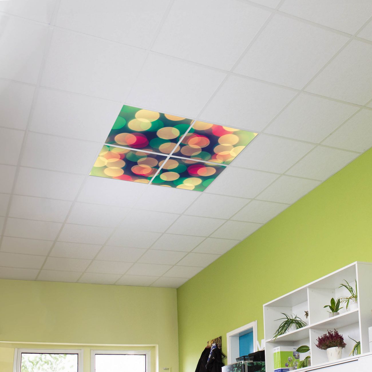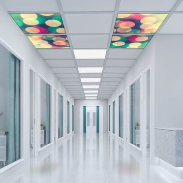 Entdecken Sie unsere vielseitigen Lichtdecken, hier in der Größe 124 x 124cm mit dem Motiv Motiv Lichtpunkte Weiß Grün Rot - Ihre Beleuchtungslösung für jede Umgebung Beleuchten Sie Ihren Raum nicht nur, sondern schaffen Sie Atmosphäre! Die banjado Lichtdecke verwandelt jeden Ort, ob zu Hause, in Praxen, Büros oder Studios in eine Wohlfühloase. Unsere einzelnen Elemente haben eine genormte Einheitsgröße von 62 x 62cm und können somit in jede gängige Rasterdecken verbaut werden. So finden Sie Ihre passende Ausführung: Gern helfen wir Ihnen, die passende Ausführung zu wählen. Hierfür muss die aktuelle Gegebenheit Ihrer Decke oder Wand beachtet werden. Haben Sie bereits eine Rasterdecke (auch Odenwalddecke genannt)? Hier bestellen Sie lediglich das Motiv + Beleuchtungspanel, denn beides wird in die bereits vorhandene Decke eingelegt. Haben Sie eine glatte Decke mit Lichtauslass oder möchten die Lichtdecke an der Wand befestigen? Hier bestellen Sie bitte Motiv + Beleuchtungspanel + Deckenbefestigung, eine Aufbauanleitung liegt immer bei. Die Lichtdecke kann sowohl an der Decke als auch an der Wand montiert werden, perfekt für kreative Lichtakzente oder alternative Beleuchtungslösungen. Haben Sie bereits eine Lichtdecke und möchten nur das Motiv wechseln? Hier bestellen Sie bitte nur Motiv, der Wechsel ist denkbar einfach. Der Aufbau Ihrer banjado Lichtdecke gestaltet sich unkompliziert, dank einer verständlichen Anleitung, die Ihnen Schritt für Schritt durch den Montageprozess hilft. Für die endgültige Installation und den sicheren Anschluss empfehlen wir die Hinzuziehung eines Fachmanns, um die optimale Funktion und Sicherheit Ihrer Beleuchtung zu gewährleisten. Falls Sie einen Fachmann für die Installation benötigen, geben Sie uns gern Bescheid, wir vermitteln Ihnen gern einen geeigneten Ansprechpartner aus Ihrer Nähe. Steuerung: Steigern Sie Ihr Beleuchtungserlebnis mit der nahtlosen Integration in Ihr Smart Home. Durch die Kompatibilität mit der SmartLife App, Alexa und Google Assistant wird Ihr Smartphone zur zentralen Steuerungseinheit. Ihr Handy fungiert hierbei sozusagen als Fernbedienung. Legen Sie individuelle Lichtszenen in der App fest, die bei Aktivierung über den Wand-Ein-/Ausschalter immer wieder abgerufen werden können ohne Handy. Mit der Szenenfunktion in der Smart App können Sie die Beleuchtung personalisieren und steuern, sodass sie auf Ihre individuellen Bedürfnisse, Tagesrhythmus und Stimmung zugeschnitten ist. Beispielsweise können Sie sich in der Morgendämmerung durch ein sanftes Licht wecken lassen oder das Licht der Praxis werktags um 7 Uhr automatisch einschalten lassen. Dieses kann dann natürlich auch zu einer bestimmten Zeit automatisch ausgeschaltet werden. Motivwahl: Diese einzigartige Lichtdecke zeichnet sich durch ihre Fähigkeit aus, die Lichtfarbe je nach gewähltem Motiv anzupassen - ein Baum wirft ein sanftes grünes Licht, während eine Wolkendecke Ihren Raum in ein beruhigendes blaues Leuchten hüllt. Berücksichtigen Sie dies bitte bei Ihrer Motivauswahl. Sie können das Motiv jederzeit ohne großen Aufwand austauschen, ob nach Jahreszeit oder anderem Anlass, unsere Auswahl lässt kaum Wünsche offen. Wir fertigen Ihnen gern eine personalisierte Lichtdecke mit einem eigenen Motiv oder Logo oder Foto, schreiben Sie uns jederzeit an. Technische Daten: Das Motiv ist auf einer 4mm starken Acrylglas Scheibe aufgebracht, das Gesamtgewicht Ihrer Ausführung beträgt 17,7kg. Die Farbtemperatur lässt sich frei einstellen von 3000 bis 6000 Kelvin, damit können Sie stufenlos zwischen warmweiß, neutralweiß und kaltweiß wählen. Die Gesamtleistung bei Ihrer gewählten Ausführung beträgt 160W. Der Lichtstrom beträgt 3600 Lumen, die Nennspannung 230 V. Die Lichtdecke ist mit Schutzart IP20 für den Innenbereich konzipiert und sollte nicht im Nassbereich verwendet werden.