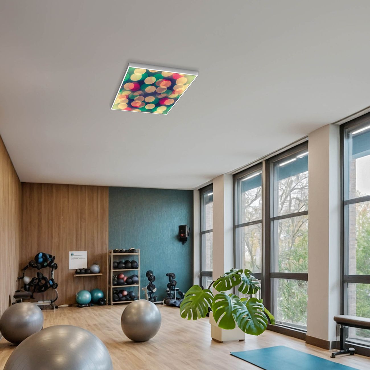 Entdecken Sie unsere vielseitigen Lichtdecken, hier in der Größe 62 x 62cm mit dem Motiv Motiv Lichtpunkte Weiß Grün Rot - Ihre Beleuchtungslösung für jede Umgebung Beleuchten Sie Ihren Raum nicht nur, sondern schaffen Sie Atmosphäre! Die banjado Lichtdecke verwandelt jeden Ort, ob zu Hause, in Praxen, Büros oder Studios in eine Wohlfühloase. Unsere einzelnen Elemente haben eine genormte Einheitsgröße von 62 x 62cm und können somit in jede gängige Rasterdecken verbaut werden. So finden Sie Ihre passende Ausführung: Gern helfen wir Ihnen, die passende Ausführung zu wählen. Hierfür muss die aktuelle Gegebenheit Ihrer Decke oder Wand beachtet werden. Haben Sie bereits eine Rasterdecke (auch Odenwalddecke genannt)? Hier bestellen Sie lediglich das Motiv + Beleuchtungspanel, denn beides wird in die bereits vorhandene Decke eingelegt. Haben Sie eine glatte Decke mit Lichtauslass oder möchten die Lichtdecke an der Wand befestigen? Hier bestellen Sie bitte Motiv + Beleuchtungspanel + Deckenbefestigung, eine Aufbauanleitung liegt immer bei. Die Lichtdecke kann sowohl an der Decke als auch an der Wand montiert werden, perfekt für kreative Lichtakzente oder alternative Beleuchtungslösungen. Haben Sie bereits eine Lichtdecke und möchten nur das Motiv wechseln? Hier bestellen Sie bitte nur Motiv, der Wechsel ist denkbar einfach. Der Aufbau Ihrer banjado Lichtdecke gestaltet sich unkompliziert, dank einer verständlichen Anleitung, die Ihnen Schritt für Schritt durch den Montageprozess hilft. Für die endgültige Installation und den sicheren Anschluss empfehlen wir die Hinzuziehung eines Fachmanns, um die optimale Funktion und Sicherheit Ihrer Beleuchtung zu gewährleisten. Falls Sie einen Fachmann für die Installation benötigen, geben Sie uns gern Bescheid, wir vermitteln Ihnen gern einen geeigneten Ansprechpartner aus Ihrer Nähe. Steuerung: Steigern Sie Ihr Beleuchtungserlebnis mit der nahtlosen Integration in Ihr Smart Home. Durch die Kompatibilität mit der SmartLife App, Alexa und Google Assistant wird Ihr Smartphone zur zentralen Steuerungseinheit. Ihr Handy fungiert hierbei sozusagen als Fernbedienung. Legen Sie individuelle Lichtszenen in der App fest, die bei Aktivierung über den Wand-Ein-/Ausschalter immer wieder abgerufen werden können ohne Handy. Mit der Szenenfunktion in der Smart App können Sie die Beleuchtung personalisieren und steuern, sodass sie auf Ihre individuellen Bedürfnisse, Tagesrhythmus und Stimmung zugeschnitten ist. Beispielsweise können Sie sich in der Morgendämmerung durch ein sanftes Licht wecken lassen oder das Licht der Praxis werktags um 7 Uhr automatisch einschalten lassen. Dieses kann dann natürlich auch zu einer bestimmten Zeit automatisch ausgeschaltet werden. Motivwahl: Diese einzigartige Lichtdecke zeichnet sich durch ihre Fähigkeit aus, die Lichtfarbe je nach gewähltem Motiv anzupassen - ein Baum wirft ein sanftes grünes Licht, während eine Wolkendecke Ihren Raum in ein beruhigendes blaues Leuchten hüllt. Berücksichtigen Sie dies bitte bei Ihrer Motivauswahl. Sie können das Motiv jederzeit ohne großen Aufwand austauschen, ob nach Jahreszeit oder anderem Anlass, unsere Auswahl lässt kaum Wünsche offen. Wir fertigen Ihnen gern eine personalisierte Lichtdecke mit einem eigenen Motiv oder Logo oder Foto, schreiben Sie uns jederzeit an. Technische Daten: Das Motiv ist auf einer 4mm starken Acrylglas Scheibe aufgebracht, das Gesamtgewicht Ihrer Ausführung beträgt 4,9kg. Die Farbtemperatur lässt sich frei einstellen von 3000 bis 6000 Kelvin, damit können Sie stufenlos zwischen warmweiß, neutralweiß und kaltweiß wählen. Die Gesamtleistung bei Ihrer gewählten Ausführung beträgt 40W. Der Lichtstrom beträgt 3600 Lumen, die Nennspannung 230 V. Die Lichtdecke ist mit Schutzart IP20 für den Innenbereich konzipiert und sollte nicht im Nassbereich verwendet werden.