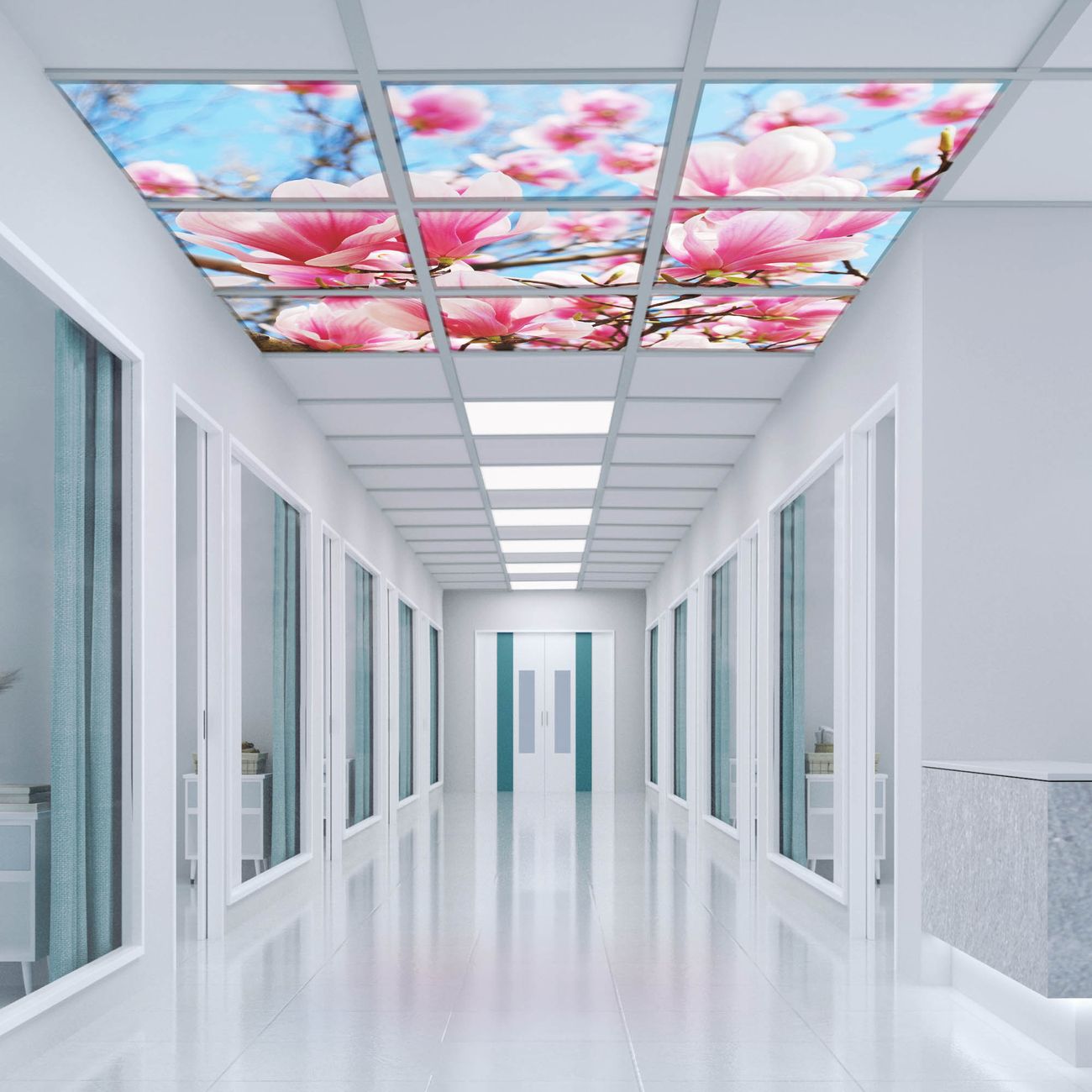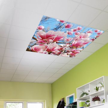Entdecken Sie unsere vielseitigen Lichtdecken, hier in der Größe 186 x 186cm mit dem Motiv Motiv Magnolienbaum - Ihre Beleuchtungslösung für jede Umgebung Beleuchten Sie Ihren Raum nicht nur, sondern schaffen Sie Atmosphäre! Die banjado Lichtdecke verwandelt jeden Ort, ob zu Hause, in Praxen, Büros oder Studios in eine Wohlfühloase. Unsere einzelnen Elemente haben eine genormte Einheitsgröße von 62 x 62cm und können somit in jede gängige Rasterdecken verbaut werden. So finden Sie Ihre passende Ausführung: Gern helfen wir Ihnen, die passende Ausführung zu wählen. Hierfür muss die aktuelle Gegebenheit Ihrer Decke oder Wand beachtet werden. Haben Sie bereits eine Rasterdecke (auch Odenwalddecke genannt)? Hier bestellen Sie lediglich das Motiv + Beleuchtungspanel, denn beides wird in die bereits vorhandene Decke eingelegt. Haben Sie eine glatte Decke mit Lichtauslass oder möchten die Lichtdecke an der Wand befestigen? Hier bestellen Sie bitte Motiv + Beleuchtungspanel + Deckenbefestigung, eine Aufbauanleitung liegt immer bei. Die Lichtdecke kann sowohl an der Decke als auch an der Wand montiert werden, perfekt für kreative Lichtakzente oder alternative Beleuchtungslösungen. Haben Sie bereits eine Lichtdecke und möchten nur das Motiv wechseln? Hier bestellen Sie bitte nur Motiv, der Wechsel ist denkbar einfach. Der Aufbau Ihrer banjado Lichtdecke gestaltet sich unkompliziert, dank einer verständlichen Anleitung, die Ihnen Schritt für Schritt durch den Montageprozess hilft. Für die endgültige Installation und den sicheren Anschluss empfehlen wir die Hinzuziehung eines Fachmanns, um die optimale Funktion und Sicherheit Ihrer Beleuchtung zu gewährleisten. Falls Sie einen Fachmann für die Installation benötigen, geben Sie uns gern Bescheid, wir vermitteln Ihnen gern einen geeigneten Ansprechpartner aus Ihrer Nähe. Steuerung: Steigern Sie Ihr Beleuchtungserlebnis mit der nahtlosen Integration in Ihr Smart Home. Durch die Kompatibilität mit der SmartLife App, Alexa und Google Assistant wird Ihr Smartphone zur zentralen Steuerungseinheit. Ihr Handy fungiert hierbei sozusagen als Fernbedienung. Legen Sie individuelle Lichtszenen in der App fest, die bei Aktivierung über den Wand-Ein-/Ausschalter immer wieder abgerufen werden können ohne Handy. Mit der Szenenfunktion in der Smart App können Sie die Beleuchtung personalisieren und steuern, sodass sie auf Ihre individuellen Bedürfnisse, Tagesrhythmus und Stimmung zugeschnitten ist. Beispielsweise können Sie sich in der Morgendämmerung durch ein sanftes Licht wecken lassen oder das Licht der Praxis werktags um 7 Uhr automatisch einschalten lassen. Dieses kann dann natürlich auch zu einer bestimmten Zeit automatisch ausgeschaltet werden. Motivwahl: Diese einzigartige Lichtdecke zeichnet sich durch ihre Fähigkeit aus, die Lichtfarbe je nach gewähltem Motiv anzupassen - ein Baum wirft ein sanftes grünes Licht, während eine Wolkendecke Ihren Raum in ein beruhigendes blaues Leuchten hüllt. Berücksichtigen Sie dies bitte bei Ihrer Motivauswahl. Sie können das Motiv jederzeit ohne großen Aufwand austauschen, ob nach Jahreszeit oder anderem Anlass, unsere Auswahl lässt kaum Wünsche offen. Wir fertigen Ihnen gern eine personalisierte Lichtdecke mit einem eigenen Motiv oder Logo oder Foto, schreiben Sie uns jederzeit an. Technische Daten: Das Motiv ist auf einer 4mm starken Acrylglas Scheibe aufgebracht, das Gesamtgewicht Ihrer Ausführung beträgt 39,9kg. Die Farbtemperatur lässt sich frei einstellen von 3000 bis 6000 Kelvin, damit können Sie stufenlos zwischen warmweiß, neutralweiß und kaltweiß wählen. Die Gesamtleistung bei Ihrer gewählten Ausführung beträgt 360W. Der Lichtstrom beträgt 3600 Lumen, die Nennspannung 230 V. Die Lichtdecke ist mit Schutzart IP20 für den Innenbereich konzipiert und sollte nicht im Nassbereich verwendet werden.