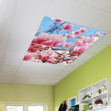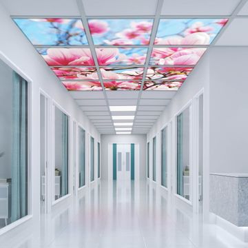 Entdecken Sie unsere vielseitigen Lichtdecken, hier in der Größe 186 x 248cm mit dem Motiv Motiv Magnolienbaum - Ihre Beleuchtungslösung für jede Umgebung Beleuchten Sie Ihren Raum nicht nur, sondern schaffen Sie Atmosphäre! Die banjado Lichtdecke verwandelt jeden Ort, ob zu Hause, in Praxen, Büros oder Studios in eine Wohlfühloase. Unsere einzelnen Elemente haben eine genormte Einheitsgröße von 62 x 62cm und können somit in jede gängige Rasterdecken verbaut werden. So finden Sie Ihre passende Ausführung: Gern helfen wir Ihnen, die passende Ausführung zu wählen. Hierfür muss die aktuelle Gegebenheit Ihrer Decke oder Wand beachtet werden. Haben Sie bereits eine Rasterdecke (auch Odenwalddecke genannt)? Hier bestellen Sie lediglich das Motiv + Beleuchtungspanel, denn beides wird in die bereits vorhandene Decke eingelegt. Haben Sie eine glatte Decke mit Lichtauslass oder möchten die Lichtdecke an der Wand befestigen? Hier bestellen Sie bitte Motiv + Beleuchtungspanel + Deckenbefestigung, eine Aufbauanleitung liegt immer bei. Die Lichtdecke kann sowohl an der Decke als auch an der Wand montiert werden, perfekt für kreative Lichtakzente oder alternative Beleuchtungslösungen. Haben Sie bereits eine Lichtdecke und möchten nur das Motiv wechseln? Hier bestellen Sie bitte nur Motiv, der Wechsel ist denkbar einfach. Der Aufbau Ihrer banjado Lichtdecke gestaltet sich unkompliziert, dank einer verständlichen Anleitung, die Ihnen Schritt für Schritt durch den Montageprozess hilft. Für die endgültige Installation und den sicheren Anschluss empfehlen wir die Hinzuziehung eines Fachmanns, um die optimale Funktion und Sicherheit Ihrer Beleuchtung zu gewährleisten. Falls Sie einen Fachmann für die Installation benötigen, geben Sie uns gern Bescheid, wir vermitteln Ihnen gern einen geeigneten Ansprechpartner aus Ihrer Nähe. Steuerung: Steigern Sie Ihr Beleuchtungserlebnis mit der nahtlosen Integration in Ihr Smart Home. Durch die Kompatibilität mit der SmartLife App, Alexa und Google Assistant wird Ihr Smartphone zur zentralen Steuerungseinheit. Ihr Handy fungiert hierbei sozusagen als Fernbedienung. Legen Sie individuelle Lichtszenen in der App fest, die bei Aktivierung über den Wand-Ein-/Ausschalter immer wieder abgerufen werden können ohne Handy. Mit der Szenenfunktion in der Smart App können Sie die Beleuchtung personalisieren und steuern, sodass sie auf Ihre individuellen Bedürfnisse, Tagesrhythmus und Stimmung zugeschnitten ist. Beispielsweise können Sie sich in der Morgendämmerung durch ein sanftes Licht wecken lassen oder das Licht der Praxis werktags um 7 Uhr automatisch einschalten lassen. Dieses kann dann natürlich auch zu einer bestimmten Zeit automatisch ausgeschaltet werden. Motivwahl: Diese einzigartige Lichtdecke zeichnet sich durch ihre Fähigkeit aus, die Lichtfarbe je nach gewähltem Motiv anzupassen - ein Baum wirft ein sanftes grünes Licht, während eine Wolkendecke Ihren Raum in ein beruhigendes blaues Leuchten hüllt. Berücksichtigen Sie dies bitte bei Ihrer Motivauswahl. Sie können das Motiv jederzeit ohne großen Aufwand austauschen, ob nach Jahreszeit oder anderem Anlass, unsere Auswahl lässt kaum Wünsche offen. Wir fertigen Ihnen gern eine personalisierte Lichtdecke mit einem eigenen Motiv oder Logo oder Foto, schreiben Sie uns jederzeit an. Technische Daten: Das Motiv ist auf einer 4mm starken Acrylglas Scheibe aufgebracht, das Gesamtgewicht Ihrer Ausführung beträgt 53,1kg. Die Farbtemperatur lässt sich frei einstellen von 3000 bis 6000 Kelvin, damit können Sie stufenlos zwischen warmweiß, neutralweiß und kaltweiß wählen. Die Gesamtleistung bei Ihrer gewählten Ausführung beträgt 480W. Der Lichtstrom beträgt 3600 Lumen, die Nennspannung 230 V. Die Lichtdecke ist mit Schutzart IP20 für den Innenbereich konzipiert und sollte nicht im Nassbereich verwendet werden.