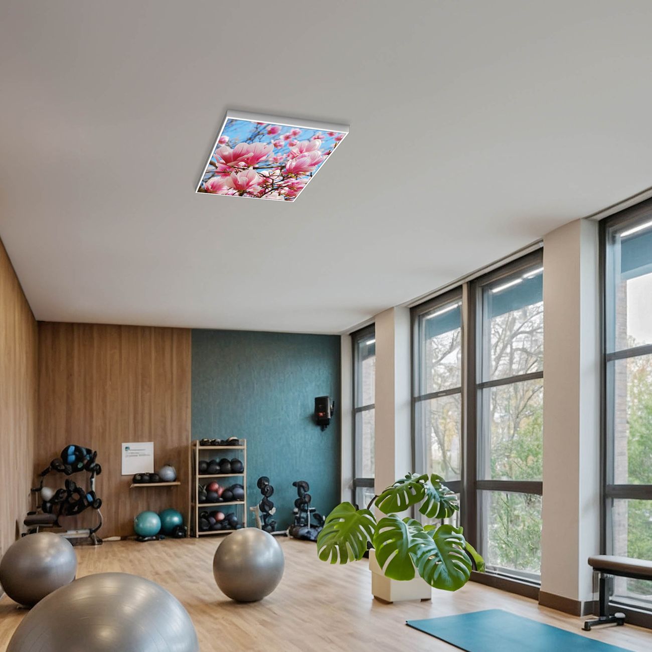 Entdecken Sie unsere vielseitigen Lichtdecken, hier in der Größe 62 x 62cm mit dem Motiv Motiv Magnolienbaum - Ihre Beleuchtungslösung für jede Umgebung Beleuchten Sie Ihren Raum nicht nur, sondern schaffen Sie Atmosphäre! Die banjado Lichtdecke verwandelt jeden Ort, ob zu Hause, in Praxen, Büros oder Studios in eine Wohlfühloase. Unsere einzelnen Elemente haben eine genormte Einheitsgröße von 62 x 62cm und können somit in jede gängige Rasterdecken verbaut werden. So finden Sie Ihre passende Ausführung: Gern helfen wir Ihnen, die passende Ausführung zu wählen. Hierfür muss die aktuelle Gegebenheit Ihrer Decke oder Wand beachtet werden. Haben Sie bereits eine Rasterdecke (auch Odenwalddecke genannt)? Hier bestellen Sie lediglich das Motiv + Beleuchtungspanel, denn beides wird in die bereits vorhandene Decke eingelegt. Haben Sie eine glatte Decke mit Lichtauslass oder möchten die Lichtdecke an der Wand befestigen? Hier bestellen Sie bitte Motiv + Beleuchtungspanel + Deckenbefestigung, eine Aufbauanleitung liegt immer bei. Die Lichtdecke kann sowohl an der Decke als auch an der Wand montiert werden, perfekt für kreative Lichtakzente oder alternative Beleuchtungslösungen. Haben Sie bereits eine Lichtdecke und möchten nur das Motiv wechseln? Hier bestellen Sie bitte nur Motiv, der Wechsel ist denkbar einfach. Der Aufbau Ihrer banjado Lichtdecke gestaltet sich unkompliziert, dank einer verständlichen Anleitung, die Ihnen Schritt für Schritt durch den Montageprozess hilft. Für die endgültige Installation und den sicheren Anschluss empfehlen wir die Hinzuziehung eines Fachmanns, um die optimale Funktion und Sicherheit Ihrer Beleuchtung zu gewährleisten. Falls Sie einen Fachmann für die Installation benötigen, geben Sie uns gern Bescheid, wir vermitteln Ihnen gern einen geeigneten Ansprechpartner aus Ihrer Nähe. Steuerung: Steigern Sie Ihr Beleuchtungserlebnis mit der nahtlosen Integration in Ihr Smart Home. Durch die Kompatibilität mit der SmartLife App, Alexa und Google Assistant wird Ihr Smartphone zur zentralen Steuerungseinheit. Ihr Handy fungiert hierbei sozusagen als Fernbedienung. Legen Sie individuelle Lichtszenen in der App fest, die bei Aktivierung über den Wand-Ein-/Ausschalter immer wieder abgerufen werden können ohne Handy. Mit der Szenenfunktion in der Smart App können Sie die Beleuchtung personalisieren und steuern, sodass sie auf Ihre individuellen Bedürfnisse, Tagesrhythmus und Stimmung zugeschnitten ist. Beispielsweise können Sie sich in der Morgendämmerung durch ein sanftes Licht wecken lassen oder das Licht der Praxis werktags um 7 Uhr automatisch einschalten lassen. Dieses kann dann natürlich auch zu einer bestimmten Zeit automatisch ausgeschaltet werden. Motivwahl: Diese einzigartige Lichtdecke zeichnet sich durch ihre Fähigkeit aus, die Lichtfarbe je nach gewähltem Motiv anzupassen - ein Baum wirft ein sanftes grünes Licht, während eine Wolkendecke Ihren Raum in ein beruhigendes blaues Leuchten hüllt. Berücksichtigen Sie dies bitte bei Ihrer Motivauswahl. Sie können das Motiv jederzeit ohne großen Aufwand austauschen, ob nach Jahreszeit oder anderem Anlass, unsere Auswahl lässt kaum Wünsche offen. Wir fertigen Ihnen gern eine personalisierte Lichtdecke mit einem eigenen Motiv oder Logo oder Foto, schreiben Sie uns jederzeit an. Technische Daten: Das Motiv ist auf einer 4mm starken Acrylglas Scheibe aufgebracht, das Gesamtgewicht Ihrer Ausführung beträgt 4,9kg. Die Farbtemperatur lässt sich frei einstellen von 3000 bis 6000 Kelvin, damit können Sie stufenlos zwischen warmweiß, neutralweiß und kaltweiß wählen. Die Gesamtleistung bei Ihrer gewählten Ausführung beträgt 40W. Der Lichtstrom beträgt 3600 Lumen, die Nennspannung 230 V. Die Lichtdecke ist mit Schutzart IP20 für den Innenbereich konzipiert und sollte nicht im Nassbereich verwendet werden.