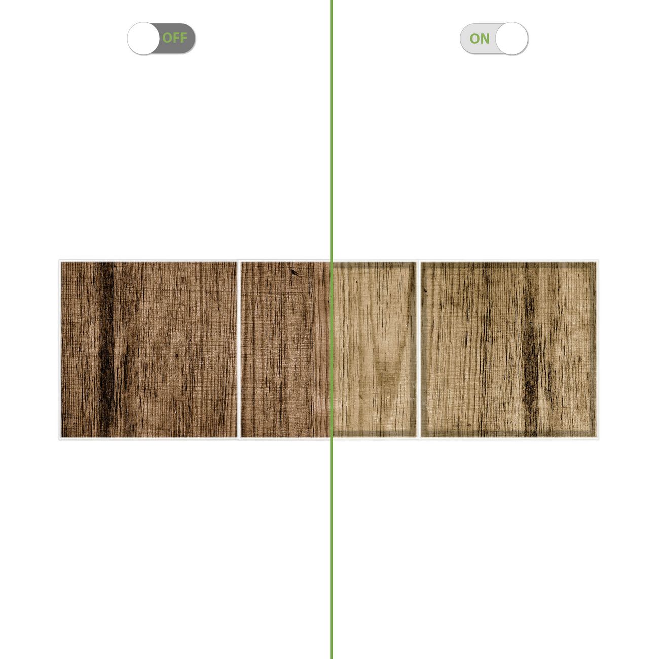 Entdecken Sie unsere vielseitigen Lichtdecken, hier in der Größe 186 x 62cm mit dem Motiv Motiv Maserung Dunkel - Ihre Beleuchtungslösung für jede Umgebung Beleuchten Sie Ihren Raum nicht nur, sondern schaffen Sie Atmosphäre! Die banjado Lichtdecke verwandelt jeden Ort, ob zu Hause, in Praxen, Büros oder Studios in eine Wohlfühloase. Unsere einzelnen Elemente haben eine genormte Einheitsgröße von 62 x 62cm und können somit in jede gängige Rasterdecken verbaut werden. So finden Sie Ihre passende Ausführung: Gern helfen wir Ihnen, die passende Ausführung zu wählen. Hierfür muss die aktuelle Gegebenheit Ihrer Decke oder Wand beachtet werden. Haben Sie bereits eine Rasterdecke (auch Odenwalddecke genannt)? Hier bestellen Sie lediglich das Motiv + Beleuchtungspanel, denn beides wird in die bereits vorhandene Decke eingelegt. Haben Sie eine glatte Decke mit Lichtauslass oder möchten die Lichtdecke an der Wand befestigen? Hier bestellen Sie bitte Motiv + Beleuchtungspanel + Deckenbefestigung, eine Aufbauanleitung liegt immer bei. Die Lichtdecke kann sowohl an der Decke als auch an der Wand montiert werden, perfekt für kreative Lichtakzente oder alternative Beleuchtungslösungen. Haben Sie bereits eine Lichtdecke und möchten nur das Motiv wechseln? Hier bestellen Sie bitte nur Motiv, der Wechsel ist denkbar einfach. Der Aufbau Ihrer banjado Lichtdecke gestaltet sich unkompliziert, dank einer verständlichen Anleitung, die Ihnen Schritt für Schritt durch den Montageprozess hilft. Für die endgültige Installation und den sicheren Anschluss empfehlen wir die Hinzuziehung eines Fachmanns, um die optimale Funktion und Sicherheit Ihrer Beleuchtung zu gewährleisten. Falls Sie einen Fachmann für die Installation benötigen, geben Sie uns gern Bescheid, wir vermitteln Ihnen gern einen geeigneten Ansprechpartner aus Ihrer Nähe. Steuerung: Steigern Sie Ihr Beleuchtungserlebnis mit der nahtlosen Integration in Ihr Smart Home. Durch die Kompatibilität mit der SmartLife App, Alexa und Google Assistant wird Ihr Smartphone zur zentralen Steuerungseinheit. Ihr Handy fungiert hierbei sozusagen als Fernbedienung. Legen Sie individuelle Lichtszenen in der App fest, die bei Aktivierung über den Wand-Ein-/Ausschalter immer wieder abgerufen werden können ohne Handy. Mit der Szenenfunktion in der Smart App können Sie die Beleuchtung personalisieren und steuern, sodass sie auf Ihre individuellen Bedürfnisse, Tagesrhythmus und Stimmung zugeschnitten ist. Beispielsweise können Sie sich in der Morgendämmerung durch ein sanftes Licht wecken lassen oder das Licht der Praxis werktags um 7 Uhr automatisch einschalten lassen. Dieses kann dann natürlich auch zu einer bestimmten Zeit automatisch ausgeschaltet werden. Motivwahl: Diese einzigartige Lichtdecke zeichnet sich durch ihre Fähigkeit aus, die Lichtfarbe je nach gewähltem Motiv anzupassen - ein Baum wirft ein sanftes grünes Licht, während eine Wolkendecke Ihren Raum in ein beruhigendes blaues Leuchten hüllt. Berücksichtigen Sie dies bitte bei Ihrer Motivauswahl. Sie können das Motiv jederzeit ohne großen Aufwand austauschen, ob nach Jahreszeit oder anderem Anlass, unsere Auswahl lässt kaum Wünsche offen. Wir fertigen Ihnen gern eine personalisierte Lichtdecke mit einem eigenen Motiv oder Logo oder Foto, schreiben Sie uns jederzeit an. Technische Daten: Das Motiv ist auf einer 4mm starken Acrylglas Scheibe aufgebracht, das Gesamtgewicht Ihrer Ausführung beträgt 13,3kg. Die Farbtemperatur lässt sich frei einstellen von 3000 bis 6000 Kelvin, damit können Sie stufenlos zwischen warmweiß, neutralweiß und kaltweiß wählen. Die Gesamtleistung bei Ihrer gewählten Ausführung beträgt 120W. Der Lichtstrom beträgt 3600 Lumen, die Nennspannung 230 V. Die Lichtdecke ist mit Schutzart IP20 für den Innenbereich konzipiert und sollte nicht im Nassbereich verwendet werden.