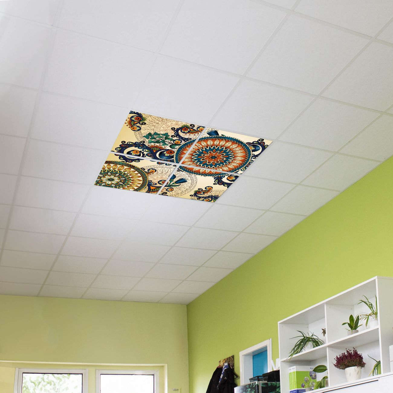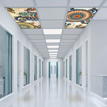 Entdecken Sie unsere vielseitigen Lichtdecken, hier in der Größe 124 x 124cm mit dem Motiv Motiv Modernes Mandala - Ihre Beleuchtungslösung für jede Umgebung Beleuchten Sie Ihren Raum nicht nur, sondern schaffen Sie Atmosphäre! Die banjado Lichtdecke verwandelt jeden Ort, ob zu Hause, in Praxen, Büros oder Studios in eine Wohlfühloase. Unsere einzelnen Elemente haben eine genormte Einheitsgröße von 62 x 62cm und können somit in jede gängige Rasterdecken verbaut werden. So finden Sie Ihre passende Ausführung: Gern helfen wir Ihnen, die passende Ausführung zu wählen. Hierfür muss die aktuelle Gegebenheit Ihrer Decke oder Wand beachtet werden. Haben Sie bereits eine Rasterdecke (auch Odenwalddecke genannt)? Hier bestellen Sie lediglich das Motiv + Beleuchtungspanel, denn beides wird in die bereits vorhandene Decke eingelegt. Haben Sie eine glatte Decke mit Lichtauslass oder möchten die Lichtdecke an der Wand befestigen? Hier bestellen Sie bitte Motiv + Beleuchtungspanel + Deckenbefestigung, eine Aufbauanleitung liegt immer bei. Die Lichtdecke kann sowohl an der Decke als auch an der Wand montiert werden, perfekt für kreative Lichtakzente oder alternative Beleuchtungslösungen. Haben Sie bereits eine Lichtdecke und möchten nur das Motiv wechseln? Hier bestellen Sie bitte nur Motiv, der Wechsel ist denkbar einfach. Der Aufbau Ihrer banjado Lichtdecke gestaltet sich unkompliziert, dank einer verständlichen Anleitung, die Ihnen Schritt für Schritt durch den Montageprozess hilft. Für die endgültige Installation und den sicheren Anschluss empfehlen wir die Hinzuziehung eines Fachmanns, um die optimale Funktion und Sicherheit Ihrer Beleuchtung zu gewährleisten. Falls Sie einen Fachmann für die Installation benötigen, geben Sie uns gern Bescheid, wir vermitteln Ihnen gern einen geeigneten Ansprechpartner aus Ihrer Nähe. Steuerung: Steigern Sie Ihr Beleuchtungserlebnis mit der nahtlosen Integration in Ihr Smart Home. Durch die Kompatibilität mit der SmartLife App, Alexa und Google Assistant wird Ihr Smartphone zur zentralen Steuerungseinheit. Ihr Handy fungiert hierbei sozusagen als Fernbedienung. Legen Sie individuelle Lichtszenen in der App fest, die bei Aktivierung über den Wand-Ein-/Ausschalter immer wieder abgerufen werden können ohne Handy. Mit der Szenenfunktion in der Smart App können Sie die Beleuchtung personalisieren und steuern, sodass sie auf Ihre individuellen Bedürfnisse, Tagesrhythmus und Stimmung zugeschnitten ist. Beispielsweise können Sie sich in der Morgendämmerung durch ein sanftes Licht wecken lassen oder das Licht der Praxis werktags um 7 Uhr automatisch einschalten lassen. Dieses kann dann natürlich auch zu einer bestimmten Zeit automatisch ausgeschaltet werden. Motivwahl: Diese einzigartige Lichtdecke zeichnet sich durch ihre Fähigkeit aus, die Lichtfarbe je nach gewähltem Motiv anzupassen - ein Baum wirft ein sanftes grünes Licht, während eine Wolkendecke Ihren Raum in ein beruhigendes blaues Leuchten hüllt. Berücksichtigen Sie dies bitte bei Ihrer Motivauswahl. Sie können das Motiv jederzeit ohne großen Aufwand austauschen, ob nach Jahreszeit oder anderem Anlass, unsere Auswahl lässt kaum Wünsche offen. Wir fertigen Ihnen gern eine personalisierte Lichtdecke mit einem eigenen Motiv oder Logo oder Foto, schreiben Sie uns jederzeit an. Technische Daten: Das Motiv ist auf einer 4mm starken Acrylglas Scheibe aufgebracht, das Gesamtgewicht Ihrer Ausführung beträgt 17,7kg. Die Farbtemperatur lässt sich frei einstellen von 3000 bis 6000 Kelvin, damit können Sie stufenlos zwischen warmweiß, neutralweiß und kaltweiß wählen. Die Gesamtleistung bei Ihrer gewählten Ausführung beträgt 160W. Der Lichtstrom beträgt 3600 Lumen, die Nennspannung 230 V. Die Lichtdecke ist mit Schutzart IP20 für den Innenbereich konzipiert und sollte nicht im Nassbereich verwendet werden.