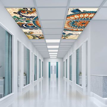 Entdecken Sie unsere vielseitigen Lichtdecken, hier in der Größe 124 x 248cm mit dem Motiv Motiv Modernes Mandala - Ihre Beleuchtungslösung für jede Umgebung Beleuchten Sie Ihren Raum nicht nur, sondern schaffen Sie Atmosphäre! Die banjado Lichtdecke verwandelt jeden Ort, ob zu Hause, in Praxen, Büros oder Studios in eine Wohlfühloase. Unsere einzelnen Elemente haben eine genormte Einheitsgröße von 62 x 62cm und können somit in jede gängige Rasterdecken verbaut werden. So finden Sie Ihre passende Ausführung: Gern helfen wir Ihnen, die passende Ausführung zu wählen. Hierfür muss die aktuelle Gegebenheit Ihrer Decke oder Wand beachtet werden. Haben Sie bereits eine Rasterdecke (auch Odenwalddecke genannt)? Hier bestellen Sie lediglich das Motiv + Beleuchtungspanel, denn beides wird in die bereits vorhandene Decke eingelegt. Haben Sie eine glatte Decke mit Lichtauslass oder möchten die Lichtdecke an der Wand befestigen? Hier bestellen Sie bitte Motiv + Beleuchtungspanel + Deckenbefestigung, eine Aufbauanleitung liegt immer bei. Die Lichtdecke kann sowohl an der Decke als auch an der Wand montiert werden, perfekt für kreative Lichtakzente oder alternative Beleuchtungslösungen. Haben Sie bereits eine Lichtdecke und möchten nur das Motiv wechseln? Hier bestellen Sie bitte nur Motiv, der Wechsel ist denkbar einfach. Der Aufbau Ihrer banjado Lichtdecke gestaltet sich unkompliziert, dank einer verständlichen Anleitung, die Ihnen Schritt für Schritt durch den Montageprozess hilft. Für die endgültige Installation und den sicheren Anschluss empfehlen wir die Hinzuziehung eines Fachmanns, um die optimale Funktion und Sicherheit Ihrer Beleuchtung zu gewährleisten. Falls Sie einen Fachmann für die Installation benötigen, geben Sie uns gern Bescheid, wir vermitteln Ihnen gern einen geeigneten Ansprechpartner aus Ihrer Nähe. Steuerung: Steigern Sie Ihr Beleuchtungserlebnis mit der nahtlosen Integration in Ihr Smart Home. Durch die Kompatibilität mit der SmartLife App, Alexa und Google Assistant wird Ihr Smartphone zur zentralen Steuerungseinheit. Ihr Handy fungiert hierbei sozusagen als Fernbedienung. Legen Sie individuelle Lichtszenen in der App fest, die bei Aktivierung über den Wand-Ein-/Ausschalter immer wieder abgerufen werden können ohne Handy. Mit der Szenenfunktion in der Smart App können Sie die Beleuchtung personalisieren und steuern, sodass sie auf Ihre individuellen Bedürfnisse, Tagesrhythmus und Stimmung zugeschnitten ist. Beispielsweise können Sie sich in der Morgendämmerung durch ein sanftes Licht wecken lassen oder das Licht der Praxis werktags um 7 Uhr automatisch einschalten lassen. Dieses kann dann natürlich auch zu einer bestimmten Zeit automatisch ausgeschaltet werden. Motivwahl: Diese einzigartige Lichtdecke zeichnet sich durch ihre Fähigkeit aus, die Lichtfarbe je nach gewähltem Motiv anzupassen - ein Baum wirft ein sanftes grünes Licht, während eine Wolkendecke Ihren Raum in ein beruhigendes blaues Leuchten hüllt. Berücksichtigen Sie dies bitte bei Ihrer Motivauswahl. Sie können das Motiv jederzeit ohne großen Aufwand austauschen, ob nach Jahreszeit oder anderem Anlass, unsere Auswahl lässt kaum Wünsche offen. Wir fertigen Ihnen gern eine personalisierte Lichtdecke mit einem eigenen Motiv oder Logo oder Foto, schreiben Sie uns jederzeit an. Technische Daten: Das Motiv ist auf einer 4mm starken Acrylglas Scheibe aufgebracht, das Gesamtgewicht Ihrer Ausführung beträgt 18,1kg. Die Farbtemperatur lässt sich frei einstellen von 3000 bis 6000 Kelvin, damit können Sie stufenlos zwischen warmweiß, neutralweiß und kaltweiß wählen. Die Gesamtleistung bei Ihrer gewählten Ausführung beträgt 320W. Der Lichtstrom beträgt 3600 Lumen, die Nennspannung 230 V. Die Lichtdecke ist mit Schutzart IP20 für den Innenbereich konzipiert und sollte nicht im Nassbereich verwendet werden.