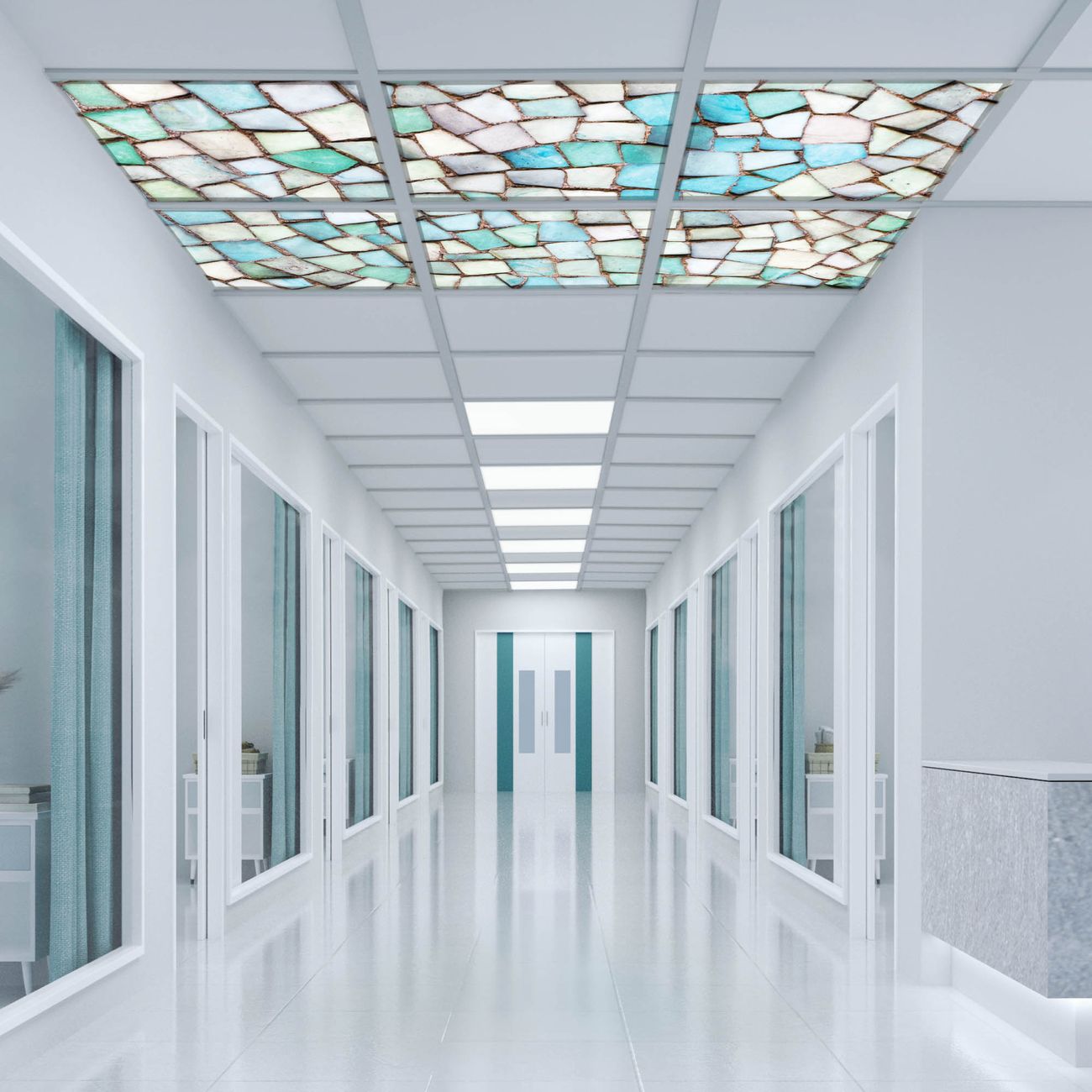 Entdecken Sie unsere vielseitigen Lichtdecken, hier in der Größe 186 x 124cm mit dem Motiv Motiv Mosaik Blau - Ihre Beleuchtungslösung für jede Umgebung Beleuchten Sie Ihren Raum nicht nur, sondern schaffen Sie Atmosphäre! Die banjado Lichtdecke verwandelt jeden Ort, ob zu Hause, in Praxen, Büros oder Studios in eine Wohlfühloase. Unsere einzelnen Elemente haben eine genormte Einheitsgröße von 62 x 62cm und können somit in jede gängige Rasterdecken verbaut werden. So finden Sie Ihre passende Ausführung: Gern helfen wir Ihnen, die passende Ausführung zu wählen. Hierfür muss die aktuelle Gegebenheit Ihrer Decke oder Wand beachtet werden. Haben Sie bereits eine Rasterdecke (auch Odenwalddecke genannt)? Hier bestellen Sie lediglich das Motiv + Beleuchtungspanel, denn beides wird in die bereits vorhandene Decke eingelegt. Haben Sie eine glatte Decke mit Lichtauslass oder möchten die Lichtdecke an der Wand befestigen? Hier bestellen Sie bitte Motiv + Beleuchtungspanel + Deckenbefestigung, eine Aufbauanleitung liegt immer bei. Die Lichtdecke kann sowohl an der Decke als auch an der Wand montiert werden, perfekt für kreative Lichtakzente oder alternative Beleuchtungslösungen. Haben Sie bereits eine Lichtdecke und möchten nur das Motiv wechseln? Hier bestellen Sie bitte nur Motiv, der Wechsel ist denkbar einfach. Der Aufbau Ihrer banjado Lichtdecke gestaltet sich unkompliziert, dank einer verständlichen Anleitung, die Ihnen Schritt für Schritt durch den Montageprozess hilft. Für die endgültige Installation und den sicheren Anschluss empfehlen wir die Hinzuziehung eines Fachmanns, um die optimale Funktion und Sicherheit Ihrer Beleuchtung zu gewährleisten. Falls Sie einen Fachmann für die Installation benötigen, geben Sie uns gern Bescheid, wir vermitteln Ihnen gern einen geeigneten Ansprechpartner aus Ihrer Nähe. Steuerung: Steigern Sie Ihr Beleuchtungserlebnis mit der nahtlosen Integration in Ihr Smart Home. Durch die Kompatibilität mit der SmartLife App, Alexa und Google Assistant wird Ihr Smartphone zur zentralen Steuerungseinheit. Ihr Handy fungiert hierbei sozusagen als Fernbedienung. Legen Sie individuelle Lichtszenen in der App fest, die bei Aktivierung über den Wand-Ein-/Ausschalter immer wieder abgerufen werden können ohne Handy. Mit der Szenenfunktion in der Smart App können Sie die Beleuchtung personalisieren und steuern, sodass sie auf Ihre individuellen Bedürfnisse, Tagesrhythmus und Stimmung zugeschnitten ist. Beispielsweise können Sie sich in der Morgendämmerung durch ein sanftes Licht wecken lassen oder das Licht der Praxis werktags um 7 Uhr automatisch einschalten lassen. Dieses kann dann natürlich auch zu einer bestimmten Zeit automatisch ausgeschaltet werden. Motivwahl: Diese einzigartige Lichtdecke zeichnet sich durch ihre Fähigkeit aus, die Lichtfarbe je nach gewähltem Motiv anzupassen - ein Baum wirft ein sanftes grünes Licht, während eine Wolkendecke Ihren Raum in ein beruhigendes blaues Leuchten hüllt. Berücksichtigen Sie dies bitte bei Ihrer Motivauswahl. Sie können das Motiv jederzeit ohne großen Aufwand austauschen, ob nach Jahreszeit oder anderem Anlass, unsere Auswahl lässt kaum Wünsche offen. Wir fertigen Ihnen gern eine personalisierte Lichtdecke mit einem eigenen Motiv oder Logo oder Foto, schreiben Sie uns jederzeit an. Technische Daten: Das Motiv ist auf einer 4mm starken Acrylglas Scheibe aufgebracht, das Gesamtgewicht Ihrer Ausführung beträgt 26,6kg. Die Farbtemperatur lässt sich frei einstellen von 3000 bis 6000 Kelvin, damit können Sie stufenlos zwischen warmweiß, neutralweiß und kaltweiß wählen. Die Gesamtleistung bei Ihrer gewählten Ausführung beträgt 240W. Der Lichtstrom beträgt 3600 Lumen, die Nennspannung 230 V. Die Lichtdecke ist mit Schutzart IP20 für den Innenbereich konzipiert und sollte nicht im Nassbereich verwendet werden.