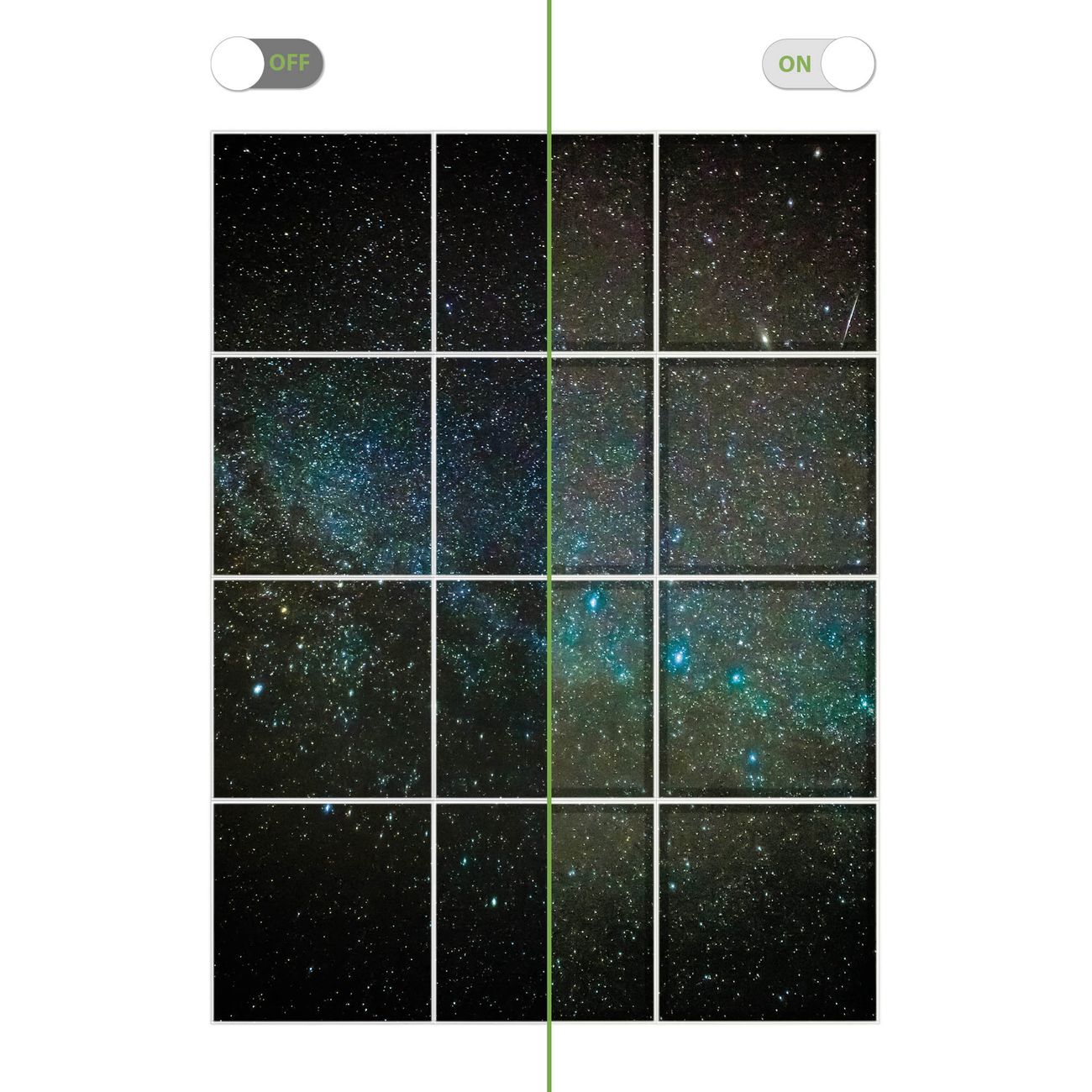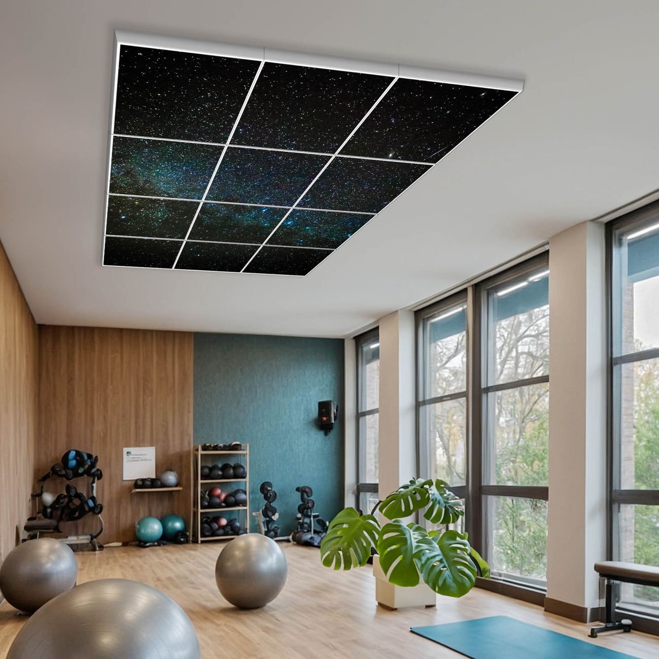 Entdecken Sie unsere vielseitigen Lichtdecken, hier in der Größe 186 x 248cm mit dem Motiv Motiv Nachthimmel - Ihre Beleuchtungslösung für jede Umgebung Beleuchten Sie Ihren Raum nicht nur, sondern schaffen Sie Atmosphäre! Die banjado Lichtdecke verwandelt jeden Ort, ob zu Hause, in Praxen, Büros oder Studios in eine Wohlfühloase. Unsere einzelnen Elemente haben eine genormte Einheitsgröße von 62 x 62cm und können somit in jede gängige Rasterdecken verbaut werden. So finden Sie Ihre passende Ausführung: Gern helfen wir Ihnen, die passende Ausführung zu wählen. Hierfür muss die aktuelle Gegebenheit Ihrer Decke oder Wand beachtet werden. Haben Sie bereits eine Rasterdecke (auch Odenwalddecke genannt)? Hier bestellen Sie lediglich das Motiv + Beleuchtungspanel, denn beides wird in die bereits vorhandene Decke eingelegt. Haben Sie eine glatte Decke mit Lichtauslass oder möchten die Lichtdecke an der Wand befestigen? Hier bestellen Sie bitte Motiv + Beleuchtungspanel + Deckenbefestigung, eine Aufbauanleitung liegt immer bei. Die Lichtdecke kann sowohl an der Decke als auch an der Wand montiert werden, perfekt für kreative Lichtakzente oder alternative Beleuchtungslösungen. Haben Sie bereits eine Lichtdecke und möchten nur das Motiv wechseln? Hier bestellen Sie bitte nur Motiv, der Wechsel ist denkbar einfach. Der Aufbau Ihrer banjado Lichtdecke gestaltet sich unkompliziert, dank einer verständlichen Anleitung, die Ihnen Schritt für Schritt durch den Montageprozess hilft. Für die endgültige Installation und den sicheren Anschluss empfehlen wir die Hinzuziehung eines Fachmanns, um die optimale Funktion und Sicherheit Ihrer Beleuchtung zu gewährleisten. Falls Sie einen Fachmann für die Installation benötigen, geben Sie uns gern Bescheid, wir vermitteln Ihnen gern einen geeigneten Ansprechpartner aus Ihrer Nähe. Steuerung: Steigern Sie Ihr Beleuchtungserlebnis mit der nahtlosen Integration in Ihr Smart Home. Durch die Kompatibilität mit der SmartLife App, Alexa und Google Assistant wird Ihr Smartphone zur zentralen Steuerungseinheit. Ihr Handy fungiert hierbei sozusagen als Fernbedienung. Legen Sie individuelle Lichtszenen in der App fest, die bei Aktivierung über den Wand-Ein-/Ausschalter immer wieder abgerufen werden können ohne Handy. Mit der Szenenfunktion in der Smart App können Sie die Beleuchtung personalisieren und steuern, sodass sie auf Ihre individuellen Bedürfnisse, Tagesrhythmus und Stimmung zugeschnitten ist. Beispielsweise können Sie sich in der Morgendämmerung durch ein sanftes Licht wecken lassen oder das Licht der Praxis werktags um 7 Uhr automatisch einschalten lassen. Dieses kann dann natürlich auch zu einer bestimmten Zeit automatisch ausgeschaltet werden. Motivwahl: Diese einzigartige Lichtdecke zeichnet sich durch ihre Fähigkeit aus, die Lichtfarbe je nach gewähltem Motiv anzupassen - ein Baum wirft ein sanftes grünes Licht, während eine Wolkendecke Ihren Raum in ein beruhigendes blaues Leuchten hüllt. Berücksichtigen Sie dies bitte bei Ihrer Motivauswahl. Sie können das Motiv jederzeit ohne großen Aufwand austauschen, ob nach Jahreszeit oder anderem Anlass, unsere Auswahl lässt kaum Wünsche offen. Wir fertigen Ihnen gern eine personalisierte Lichtdecke mit einem eigenen Motiv oder Logo oder Foto, schreiben Sie uns jederzeit an. Technische Daten: Das Motiv ist auf einer 4mm starken Acrylglas Scheibe aufgebracht, das Gesamtgewicht Ihrer Ausführung beträgt 59,1kg. Die Farbtemperatur lässt sich frei einstellen von 3000 bis 6000 Kelvin, damit können Sie stufenlos zwischen warmweiß, neutralweiß und kaltweiß wählen. Die Gesamtleistung bei Ihrer gewählten Ausführung beträgt 480W. Der Lichtstrom beträgt 3600 Lumen, die Nennspannung 230 V. Die Lichtdecke ist mit Schutzart IP20 für den Innenbereich konzipiert und sollte nicht im Nassbereich verwendet werden.