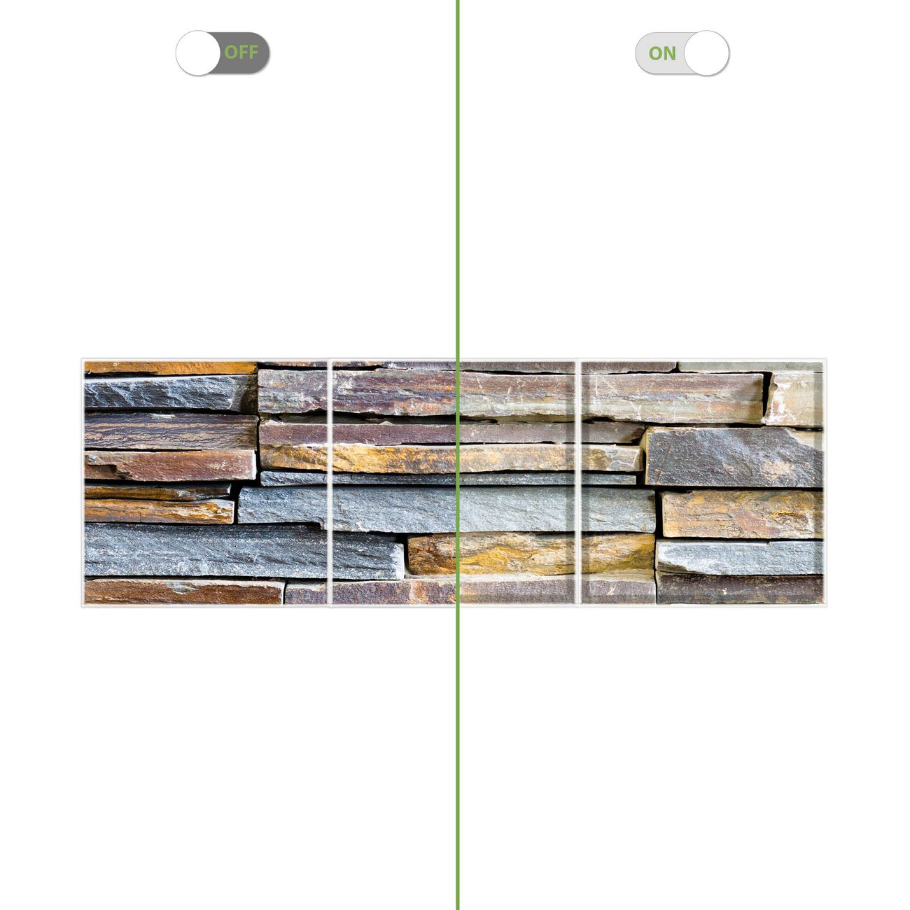 Entdecken Sie unsere vielseitigen Lichtdecken, hier in der Größe 186 x 62cm mit dem Motiv Motiv Naturstein - Ihre Beleuchtungslösung für jede Umgebung Beleuchten Sie Ihren Raum nicht nur, sondern schaffen Sie Atmosphäre! Die banjado Lichtdecke verwandelt jeden Ort, ob zu Hause, in Praxen, Büros oder Studios in eine Wohlfühloase. Unsere einzelnen Elemente haben eine genormte Einheitsgröße von 62 x 62cm und können somit in jede gängige Rasterdecken verbaut werden. So finden Sie Ihre passende Ausführung: Gern helfen wir Ihnen, die passende Ausführung zu wählen. Hierfür muss die aktuelle Gegebenheit Ihrer Decke oder Wand beachtet werden. Haben Sie bereits eine Rasterdecke (auch Odenwalddecke genannt)? Hier bestellen Sie lediglich das Motiv + Beleuchtungspanel, denn beides wird in die bereits vorhandene Decke eingelegt. Haben Sie eine glatte Decke mit Lichtauslass oder möchten die Lichtdecke an der Wand befestigen? Hier bestellen Sie bitte Motiv + Beleuchtungspanel + Deckenbefestigung, eine Aufbauanleitung liegt immer bei. Die Lichtdecke kann sowohl an der Decke als auch an der Wand montiert werden, perfekt für kreative Lichtakzente oder alternative Beleuchtungslösungen. Haben Sie bereits eine Lichtdecke und möchten nur das Motiv wechseln? Hier bestellen Sie bitte nur Motiv, der Wechsel ist denkbar einfach. Der Aufbau Ihrer banjado Lichtdecke gestaltet sich unkompliziert, dank einer verständlichen Anleitung, die Ihnen Schritt für Schritt durch den Montageprozess hilft. Für die endgültige Installation und den sicheren Anschluss empfehlen wir die Hinzuziehung eines Fachmanns, um die optimale Funktion und Sicherheit Ihrer Beleuchtung zu gewährleisten. Falls Sie einen Fachmann für die Installation benötigen, geben Sie uns gern Bescheid, wir vermitteln Ihnen gern einen geeigneten Ansprechpartner aus Ihrer Nähe. Steuerung: Steigern Sie Ihr Beleuchtungserlebnis mit der nahtlosen Integration in Ihr Smart Home. Durch die Kompatibilität mit der SmartLife App, Alexa und Google Assistant wird Ihr Smartphone zur zentralen Steuerungseinheit. Ihr Handy fungiert hierbei sozusagen als Fernbedienung. Legen Sie individuelle Lichtszenen in der App fest, die bei Aktivierung über den Wand-Ein-/Ausschalter immer wieder abgerufen werden können ohne Handy. Mit der Szenenfunktion in der Smart App können Sie die Beleuchtung personalisieren und steuern, sodass sie auf Ihre individuellen Bedürfnisse, Tagesrhythmus und Stimmung zugeschnitten ist. Beispielsweise können Sie sich in der Morgendämmerung durch ein sanftes Licht wecken lassen oder das Licht der Praxis werktags um 7 Uhr automatisch einschalten lassen. Dieses kann dann natürlich auch zu einer bestimmten Zeit automatisch ausgeschaltet werden. Motivwahl: Diese einzigartige Lichtdecke zeichnet sich durch ihre Fähigkeit aus, die Lichtfarbe je nach gewähltem Motiv anzupassen - ein Baum wirft ein sanftes grünes Licht, während eine Wolkendecke Ihren Raum in ein beruhigendes blaues Leuchten hüllt. Berücksichtigen Sie dies bitte bei Ihrer Motivauswahl. Sie können das Motiv jederzeit ohne großen Aufwand austauschen, ob nach Jahreszeit oder anderem Anlass, unsere Auswahl lässt kaum Wünsche offen. Wir fertigen Ihnen gern eine personalisierte Lichtdecke mit einem eigenen Motiv oder Logo oder Foto, schreiben Sie uns jederzeit an. Technische Daten: Das Motiv ist auf einer 4mm starken Acrylglas Scheibe aufgebracht, das Gesamtgewicht Ihrer Ausführung beträgt 13,3kg. Die Farbtemperatur lässt sich frei einstellen von 3000 bis 6000 Kelvin, damit können Sie stufenlos zwischen warmweiß, neutralweiß und kaltweiß wählen. Die Gesamtleistung bei Ihrer gewählten Ausführung beträgt 120W. Der Lichtstrom beträgt 3600 Lumen, die Nennspannung 230 V. Die Lichtdecke ist mit Schutzart IP20 für den Innenbereich konzipiert und sollte nicht im Nassbereich verwendet werden.