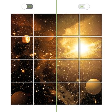 Entdecken Sie unsere vielseitigen Lichtdecken, hier in der Größe 248 x 248cm mit dem Motiv Motiv Outer Space - Ihre Beleuchtungslösung für jede Umgebung Beleuchten Sie Ihren Raum nicht nur, sondern schaffen Sie Atmosphäre! Die banjado Lichtdecke verwandelt jeden Ort, ob zu Hause, in Praxen, Büros oder Studios in eine Wohlfühloase. Unsere einzelnen Elemente haben eine genormte Einheitsgröße von 62 x 62cm und können somit in jede gängige Rasterdecken verbaut werden. So finden Sie Ihre passende Ausführung: Gern helfen wir Ihnen, die passende Ausführung zu wählen. Hierfür muss die aktuelle Gegebenheit Ihrer Decke oder Wand beachtet werden. Haben Sie bereits eine Rasterdecke (auch Odenwalddecke genannt)? Hier bestellen Sie lediglich das Motiv + Beleuchtungspanel, denn beides wird in die bereits vorhandene Decke eingelegt. Haben Sie eine glatte Decke mit Lichtauslass oder möchten die Lichtdecke an der Wand befestigen? Hier bestellen Sie bitte Motiv + Beleuchtungspanel + Deckenbefestigung, eine Aufbauanleitung liegt immer bei. Die Lichtdecke kann sowohl an der Decke als auch an der Wand montiert werden, perfekt für kreative Lichtakzente oder alternative Beleuchtungslösungen. Haben Sie bereits eine Lichtdecke und möchten nur das Motiv wechseln? Hier bestellen Sie bitte nur Motiv, der Wechsel ist denkbar einfach. Der Aufbau Ihrer banjado Lichtdecke gestaltet sich unkompliziert, dank einer verständlichen Anleitung, die Ihnen Schritt für Schritt durch den Montageprozess hilft. Für die endgültige Installation und den sicheren Anschluss empfehlen wir die Hinzuziehung eines Fachmanns, um die optimale Funktion und Sicherheit Ihrer Beleuchtung zu gewährleisten. Falls Sie einen Fachmann für die Installation benötigen, geben Sie uns gern Bescheid, wir vermitteln Ihnen gern einen geeigneten Ansprechpartner aus Ihrer Nähe. Steuerung: Steigern Sie Ihr Beleuchtungserlebnis mit der nahtlosen Integration in Ihr Smart Home. Durch die Kompatibilität mit der SmartLife App, Alexa und Google Assistant wird Ihr Smartphone zur zentralen Steuerungseinheit. Ihr Handy fungiert hierbei sozusagen als Fernbedienung. Legen Sie individuelle Lichtszenen in der App fest, die bei Aktivierung über den Wand-Ein-/Ausschalter immer wieder abgerufen werden können ohne Handy. Mit der Szenenfunktion in der Smart App können Sie die Beleuchtung personalisieren und steuern, sodass sie auf Ihre individuellen Bedürfnisse, Tagesrhythmus und Stimmung zugeschnitten ist. Beispielsweise können Sie sich in der Morgendämmerung durch ein sanftes Licht wecken lassen oder das Licht der Praxis werktags um 7 Uhr automatisch einschalten lassen. Dieses kann dann natürlich auch zu einer bestimmten Zeit automatisch ausgeschaltet werden. Motivwahl: Diese einzigartige Lichtdecke zeichnet sich durch ihre Fähigkeit aus, die Lichtfarbe je nach gewähltem Motiv anzupassen - ein Baum wirft ein sanftes grünes Licht, während eine Wolkendecke Ihren Raum in ein beruhigendes blaues Leuchten hüllt. Berücksichtigen Sie dies bitte bei Ihrer Motivauswahl. Sie können das Motiv jederzeit ohne großen Aufwand austauschen, ob nach Jahreszeit oder anderem Anlass, unsere Auswahl lässt kaum Wünsche offen. Wir fertigen Ihnen gern eine personalisierte Lichtdecke mit einem eigenen Motiv oder Logo oder Foto, schreiben Sie uns jederzeit an. Technische Daten: Das Motiv ist auf einer 4mm starken Acrylglas Scheibe aufgebracht, das Gesamtgewicht Ihrer Ausführung beträgt 70,9kg. Die Farbtemperatur lässt sich frei einstellen von 3000 bis 6000 Kelvin, damit können Sie stufenlos zwischen warmweiß, neutralweiß und kaltweiß wählen. Die Gesamtleistung bei Ihrer gewählten Ausführung beträgt 640W. Der Lichtstrom beträgt 3600 Lumen, die Nennspannung 230 V. Die Lichtdecke ist mit Schutzart IP20 für den Innenbereich konzipiert und sollte nicht im Nassbereich verwendet werden.