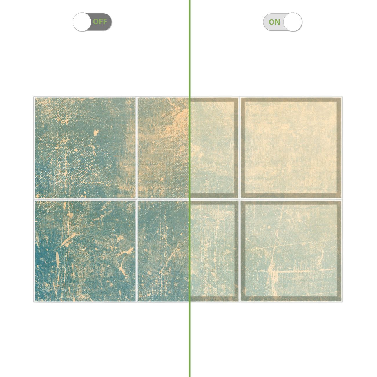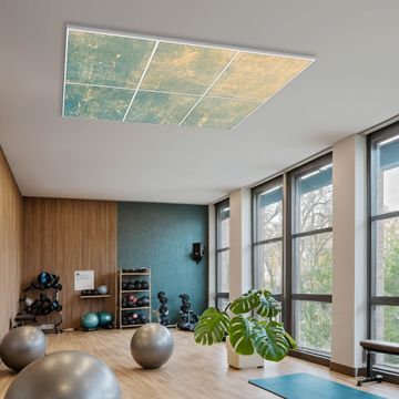 Entdecken Sie unsere vielseitigen Lichtdecken, hier in der Größe 186 x 124cm mit dem Motiv Motiv Patina Grün - Ihre Beleuchtungslösung für jede Umgebung Beleuchten Sie Ihren Raum nicht nur, sondern schaffen Sie Atmosphäre! Die banjado Lichtdecke verwandelt jeden Ort, ob zu Hause, in Praxen, Büros oder Studios in eine Wohlfühloase. Unsere einzelnen Elemente haben eine genormte Einheitsgröße von 62 x 62cm und können somit in jede gängige Rasterdecken verbaut werden. So finden Sie Ihre passende Ausführung: Gern helfen wir Ihnen, die passende Ausführung zu wählen. Hierfür muss die aktuelle Gegebenheit Ihrer Decke oder Wand beachtet werden. Haben Sie bereits eine Rasterdecke (auch Odenwalddecke genannt)? Hier bestellen Sie lediglich das Motiv + Beleuchtungspanel, denn beides wird in die bereits vorhandene Decke eingelegt. Haben Sie eine glatte Decke mit Lichtauslass oder möchten die Lichtdecke an der Wand befestigen? Hier bestellen Sie bitte Motiv + Beleuchtungspanel + Deckenbefestigung, eine Aufbauanleitung liegt immer bei. Die Lichtdecke kann sowohl an der Decke als auch an der Wand montiert werden, perfekt für kreative Lichtakzente oder alternative Beleuchtungslösungen. Haben Sie bereits eine Lichtdecke und möchten nur das Motiv wechseln? Hier bestellen Sie bitte nur Motiv, der Wechsel ist denkbar einfach. Der Aufbau Ihrer banjado Lichtdecke gestaltet sich unkompliziert, dank einer verständlichen Anleitung, die Ihnen Schritt für Schritt durch den Montageprozess hilft. Für die endgültige Installation und den sicheren Anschluss empfehlen wir die Hinzuziehung eines Fachmanns, um die optimale Funktion und Sicherheit Ihrer Beleuchtung zu gewährleisten. Falls Sie einen Fachmann für die Installation benötigen, geben Sie uns gern Bescheid, wir vermitteln Ihnen gern einen geeigneten Ansprechpartner aus Ihrer Nähe. Steuerung: Steigern Sie Ihr Beleuchtungserlebnis mit der nahtlosen Integration in Ihr Smart Home. Durch die Kompatibilität mit der SmartLife App, Alexa und Google Assistant wird Ihr Smartphone zur zentralen Steuerungseinheit. Ihr Handy fungiert hierbei sozusagen als Fernbedienung. Legen Sie individuelle Lichtszenen in der App fest, die bei Aktivierung über den Wand-Ein-/Ausschalter immer wieder abgerufen werden können ohne Handy. Mit der Szenenfunktion in der Smart App können Sie die Beleuchtung personalisieren und steuern, sodass sie auf Ihre individuellen Bedürfnisse, Tagesrhythmus und Stimmung zugeschnitten ist. Beispielsweise können Sie sich in der Morgendämmerung durch ein sanftes Licht wecken lassen oder das Licht der Praxis werktags um 7 Uhr automatisch einschalten lassen. Dieses kann dann natürlich auch zu einer bestimmten Zeit automatisch ausgeschaltet werden. Motivwahl: Diese einzigartige Lichtdecke zeichnet sich durch ihre Fähigkeit aus, die Lichtfarbe je nach gewähltem Motiv anzupassen - ein Baum wirft ein sanftes grünes Licht, während eine Wolkendecke Ihren Raum in ein beruhigendes blaues Leuchten hüllt. Berücksichtigen Sie dies bitte bei Ihrer Motivauswahl. Sie können das Motiv jederzeit ohne großen Aufwand austauschen, ob nach Jahreszeit oder anderem Anlass, unsere Auswahl lässt kaum Wünsche offen. Wir fertigen Ihnen gern eine personalisierte Lichtdecke mit einem eigenen Motiv oder Logo oder Foto, schreiben Sie uns jederzeit an. Technische Daten: Das Motiv ist auf einer 4mm starken Acrylglas Scheibe aufgebracht, das Gesamtgewicht Ihrer Ausführung beträgt 29,6kg. Die Farbtemperatur lässt sich frei einstellen von 3000 bis 6000 Kelvin, damit können Sie stufenlos zwischen warmweiß, neutralweiß und kaltweiß wählen. Die Gesamtleistung bei Ihrer gewählten Ausführung beträgt 240W. Der Lichtstrom beträgt 3600 Lumen, die Nennspannung 230 V. Die Lichtdecke ist mit Schutzart IP20 für den Innenbereich konzipiert und sollte nicht im Nassbereich verwendet werden.