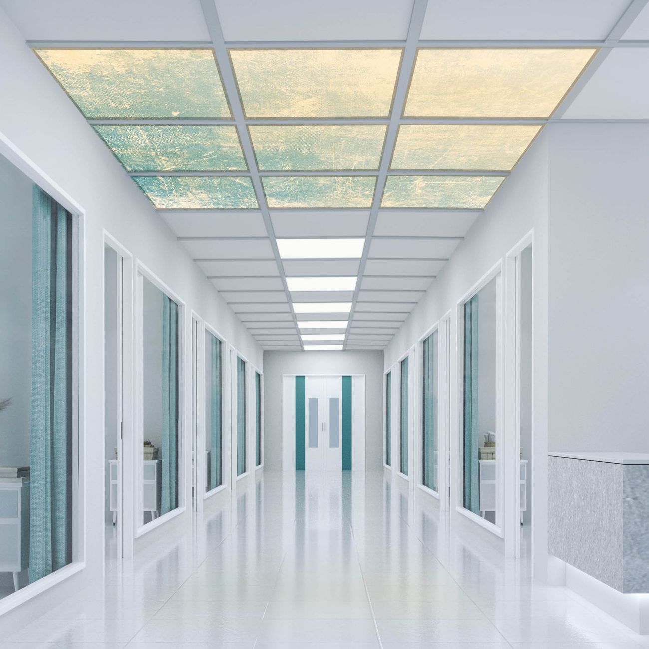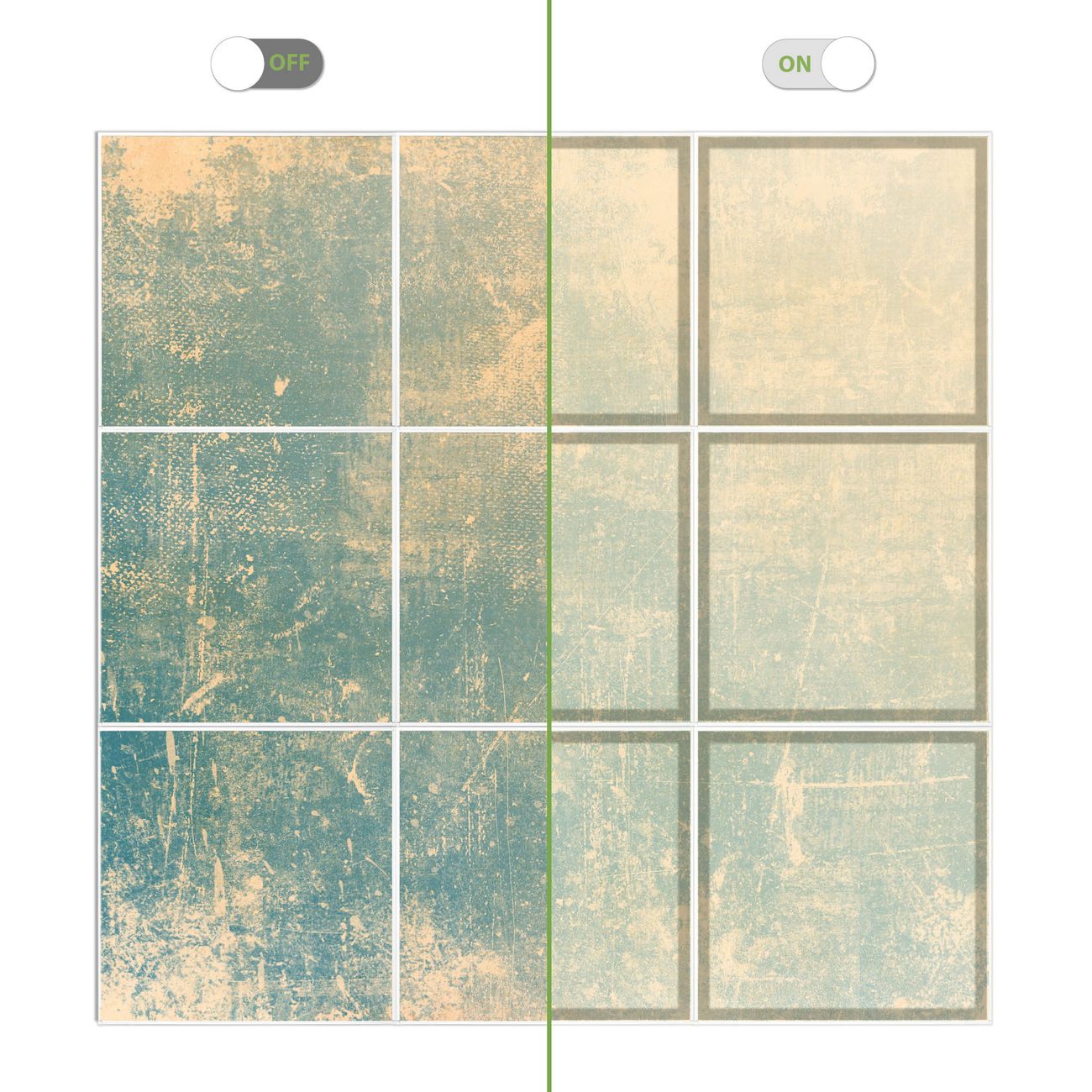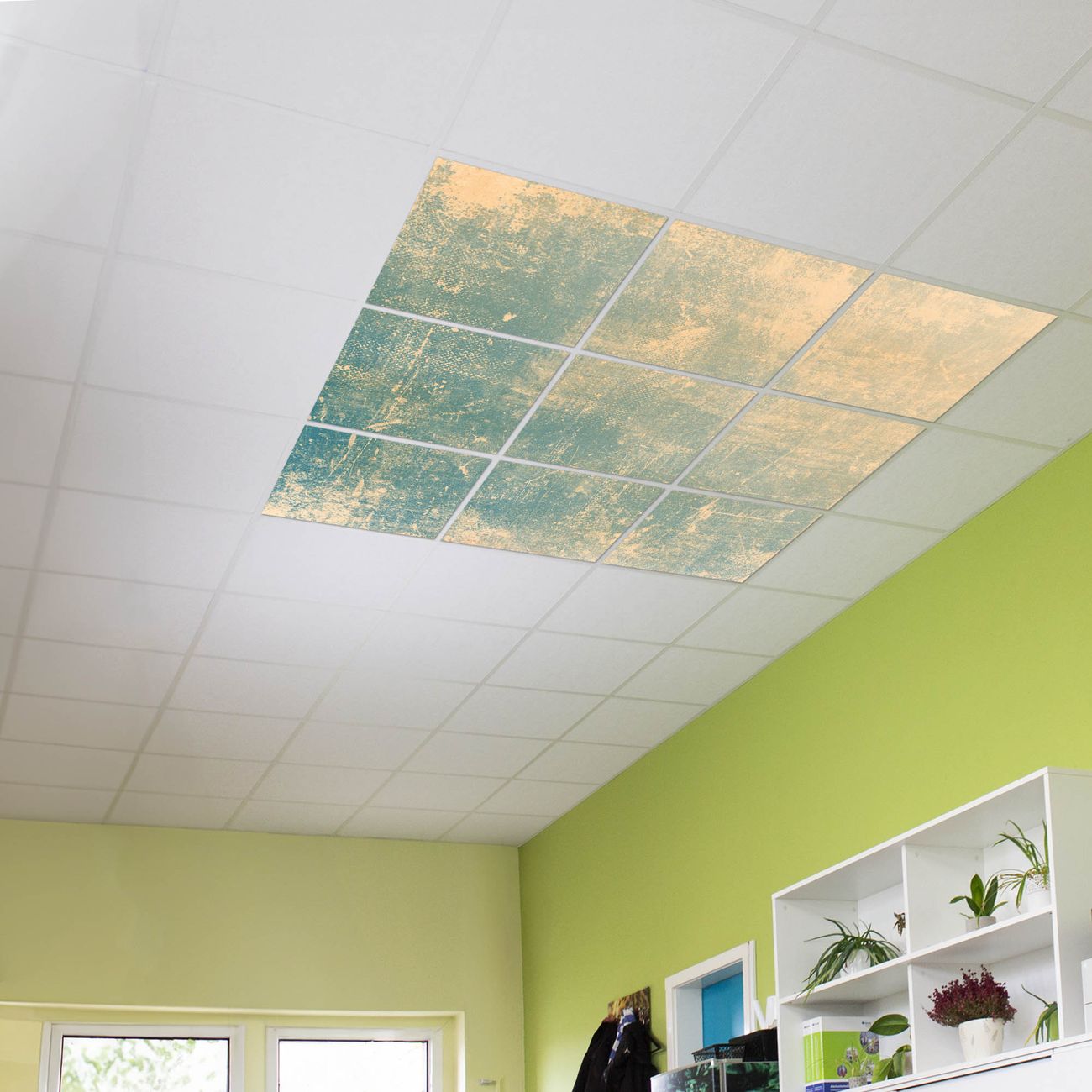 Entdecken Sie unsere vielseitigen Lichtdecken, hier in der Größe 186 x 186cm mit dem Motiv Motiv Patina Grün - Ihre Beleuchtungslösung für jede Umgebung Beleuchten Sie Ihren Raum nicht nur, sondern schaffen Sie Atmosphäre! Die banjado Lichtdecke verwandelt jeden Ort, ob zu Hause, in Praxen, Büros oder Studios in eine Wohlfühloase. Unsere einzelnen Elemente haben eine genormte Einheitsgröße von 62 x 62cm und können somit in jede gängige Rasterdecken verbaut werden. So finden Sie Ihre passende Ausführung: Gern helfen wir Ihnen, die passende Ausführung zu wählen. Hierfür muss die aktuelle Gegebenheit Ihrer Decke oder Wand beachtet werden. Haben Sie bereits eine Rasterdecke (auch Odenwalddecke genannt)? Hier bestellen Sie lediglich das Motiv + Beleuchtungspanel, denn beides wird in die bereits vorhandene Decke eingelegt. Haben Sie eine glatte Decke mit Lichtauslass oder möchten die Lichtdecke an der Wand befestigen? Hier bestellen Sie bitte Motiv + Beleuchtungspanel + Deckenbefestigung, eine Aufbauanleitung liegt immer bei. Die Lichtdecke kann sowohl an der Decke als auch an der Wand montiert werden, perfekt für kreative Lichtakzente oder alternative Beleuchtungslösungen. Haben Sie bereits eine Lichtdecke und möchten nur das Motiv wechseln? Hier bestellen Sie bitte nur Motiv, der Wechsel ist denkbar einfach. Der Aufbau Ihrer banjado Lichtdecke gestaltet sich unkompliziert, dank einer verständlichen Anleitung, die Ihnen Schritt für Schritt durch den Montageprozess hilft. Für die endgültige Installation und den sicheren Anschluss empfehlen wir die Hinzuziehung eines Fachmanns, um die optimale Funktion und Sicherheit Ihrer Beleuchtung zu gewährleisten. Falls Sie einen Fachmann für die Installation benötigen, geben Sie uns gern Bescheid, wir vermitteln Ihnen gern einen geeigneten Ansprechpartner aus Ihrer Nähe. Steuerung: Steigern Sie Ihr Beleuchtungserlebnis mit der nahtlosen Integration in Ihr Smart Home. Durch die Kompatibilität mit der SmartLife App, Alexa und Google Assistant wird Ihr Smartphone zur zentralen Steuerungseinheit. Ihr Handy fungiert hierbei sozusagen als Fernbedienung. Legen Sie individuelle Lichtszenen in der App fest, die bei Aktivierung über den Wand-Ein-/Ausschalter immer wieder abgerufen werden können ohne Handy. Mit der Szenenfunktion in der Smart App können Sie die Beleuchtung personalisieren und steuern, sodass sie auf Ihre individuellen Bedürfnisse, Tagesrhythmus und Stimmung zugeschnitten ist. Beispielsweise können Sie sich in der Morgendämmerung durch ein sanftes Licht wecken lassen oder das Licht der Praxis werktags um 7 Uhr automatisch einschalten lassen. Dieses kann dann natürlich auch zu einer bestimmten Zeit automatisch ausgeschaltet werden. Motivwahl: Diese einzigartige Lichtdecke zeichnet sich durch ihre Fähigkeit aus, die Lichtfarbe je nach gewähltem Motiv anzupassen - ein Baum wirft ein sanftes grünes Licht, während eine Wolkendecke Ihren Raum in ein beruhigendes blaues Leuchten hüllt. Berücksichtigen Sie dies bitte bei Ihrer Motivauswahl. Sie können das Motiv jederzeit ohne großen Aufwand austauschen, ob nach Jahreszeit oder anderem Anlass, unsere Auswahl lässt kaum Wünsche offen. Wir fertigen Ihnen gern eine personalisierte Lichtdecke mit einem eigenen Motiv oder Logo oder Foto, schreiben Sie uns jederzeit an. Technische Daten: Das Motiv ist auf einer 4mm starken Acrylglas Scheibe aufgebracht, das Gesamtgewicht Ihrer Ausführung beträgt 39,9kg. Die Farbtemperatur lässt sich frei einstellen von 3000 bis 6000 Kelvin, damit können Sie stufenlos zwischen warmweiß, neutralweiß und kaltweiß wählen. Die Gesamtleistung bei Ihrer gewählten Ausführung beträgt 360W. Der Lichtstrom beträgt 3600 Lumen, die Nennspannung 230 V. Die Lichtdecke ist mit Schutzart IP20 für den Innenbereich konzipiert und sollte nicht im Nassbereich verwendet werden.