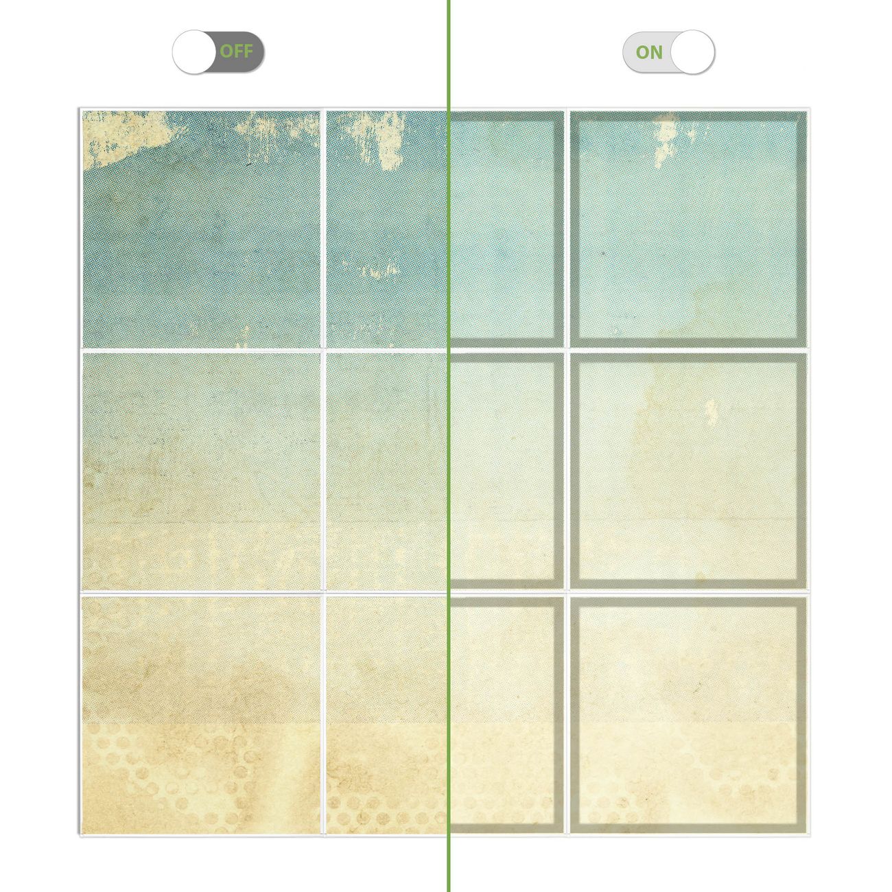 Entdecken Sie unsere vielseitigen Lichtdecken, hier in der Größe 186 x 186cm mit dem Motiv Motiv Patina Papier - Ihre Beleuchtungslösung für jede Umgebung Beleuchten Sie Ihren Raum nicht nur, sondern schaffen Sie Atmosphäre! Die banjado Lichtdecke verwandelt jeden Ort, ob zu Hause, in Praxen, Büros oder Studios in eine Wohlfühloase. Unsere einzelnen Elemente haben eine genormte Einheitsgröße von 62 x 62cm und können somit in jede gängige Rasterdecken verbaut werden. So finden Sie Ihre passende Ausführung: Gern helfen wir Ihnen, die passende Ausführung zu wählen. Hierfür muss die aktuelle Gegebenheit Ihrer Decke oder Wand beachtet werden. Haben Sie bereits eine Rasterdecke (auch Odenwalddecke genannt)? Hier bestellen Sie lediglich das Motiv + Beleuchtungspanel, denn beides wird in die bereits vorhandene Decke eingelegt. Haben Sie eine glatte Decke mit Lichtauslass oder möchten die Lichtdecke an der Wand befestigen? Hier bestellen Sie bitte Motiv + Beleuchtungspanel + Deckenbefestigung, eine Aufbauanleitung liegt immer bei. Die Lichtdecke kann sowohl an der Decke als auch an der Wand montiert werden, perfekt für kreative Lichtakzente oder alternative Beleuchtungslösungen. Haben Sie bereits eine Lichtdecke und möchten nur das Motiv wechseln? Hier bestellen Sie bitte nur Motiv, der Wechsel ist denkbar einfach. Der Aufbau Ihrer banjado Lichtdecke gestaltet sich unkompliziert, dank einer verständlichen Anleitung, die Ihnen Schritt für Schritt durch den Montageprozess hilft. Für die endgültige Installation und den sicheren Anschluss empfehlen wir die Hinzuziehung eines Fachmanns, um die optimale Funktion und Sicherheit Ihrer Beleuchtung zu gewährleisten. Falls Sie einen Fachmann für die Installation benötigen, geben Sie uns gern Bescheid, wir vermitteln Ihnen gern einen geeigneten Ansprechpartner aus Ihrer Nähe. Steuerung: Steigern Sie Ihr Beleuchtungserlebnis mit der nahtlosen Integration in Ihr Smart Home. Durch die Kompatibilität mit der SmartLife App, Alexa und Google Assistant wird Ihr Smartphone zur zentralen Steuerungseinheit. Ihr Handy fungiert hierbei sozusagen als Fernbedienung. Legen Sie individuelle Lichtszenen in der App fest, die bei Aktivierung über den Wand-Ein-/Ausschalter immer wieder abgerufen werden können ohne Handy. Mit der Szenenfunktion in der Smart App können Sie die Beleuchtung personalisieren und steuern, sodass sie auf Ihre individuellen Bedürfnisse, Tagesrhythmus und Stimmung zugeschnitten ist. Beispielsweise können Sie sich in der Morgendämmerung durch ein sanftes Licht wecken lassen oder das Licht der Praxis werktags um 7 Uhr automatisch einschalten lassen. Dieses kann dann natürlich auch zu einer bestimmten Zeit automatisch ausgeschaltet werden. Motivwahl: Diese einzigartige Lichtdecke zeichnet sich durch ihre Fähigkeit aus, die Lichtfarbe je nach gewähltem Motiv anzupassen - ein Baum wirft ein sanftes grünes Licht, während eine Wolkendecke Ihren Raum in ein beruhigendes blaues Leuchten hüllt. Berücksichtigen Sie dies bitte bei Ihrer Motivauswahl. Sie können das Motiv jederzeit ohne großen Aufwand austauschen, ob nach Jahreszeit oder anderem Anlass, unsere Auswahl lässt kaum Wünsche offen. Wir fertigen Ihnen gern eine personalisierte Lichtdecke mit einem eigenen Motiv oder Logo oder Foto, schreiben Sie uns jederzeit an. Technische Daten: Das Motiv ist auf einer 4mm starken Acrylglas Scheibe aufgebracht, das Gesamtgewicht Ihrer Ausführung beträgt 39,9kg. Die Farbtemperatur lässt sich frei einstellen von 3000 bis 6000 Kelvin, damit können Sie stufenlos zwischen warmweiß, neutralweiß und kaltweiß wählen. Die Gesamtleistung bei Ihrer gewählten Ausführung beträgt 360W. Der Lichtstrom beträgt 3600 Lumen, die Nennspannung 230 V. Die Lichtdecke ist mit Schutzart IP20 für den Innenbereich konzipiert und sollte nicht im Nassbereich verwendet werden.