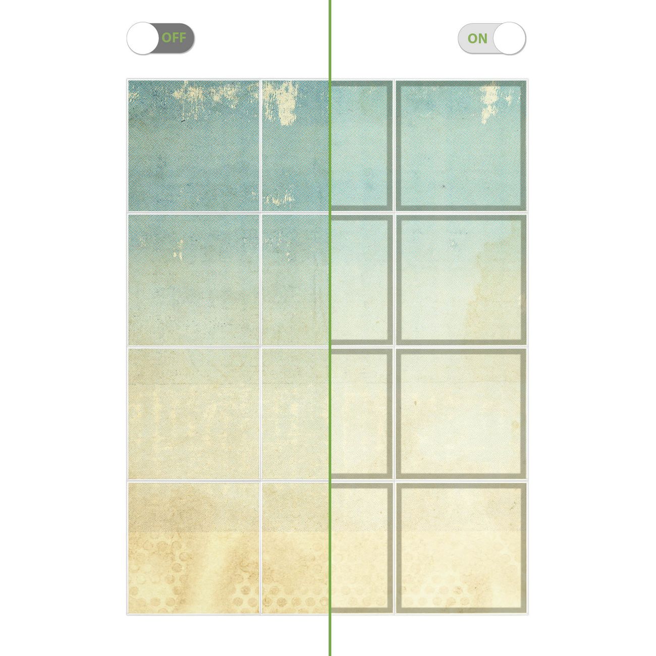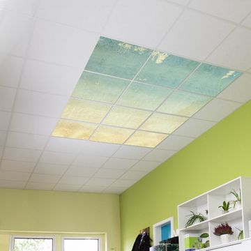 Entdecken Sie unsere vielseitigen Lichtdecken, hier in der Größe 186 x 248cm mit dem Motiv Motiv Patina Papier - Ihre Beleuchtungslösung für jede Umgebung Beleuchten Sie Ihren Raum nicht nur, sondern schaffen Sie Atmosphäre! Die banjado Lichtdecke verwandelt jeden Ort, ob zu Hause, in Praxen, Büros oder Studios in eine Wohlfühloase. Unsere einzelnen Elemente haben eine genormte Einheitsgröße von 62 x 62cm und können somit in jede gängige Rasterdecken verbaut werden. So finden Sie Ihre passende Ausführung: Gern helfen wir Ihnen, die passende Ausführung zu wählen. Hierfür muss die aktuelle Gegebenheit Ihrer Decke oder Wand beachtet werden. Haben Sie bereits eine Rasterdecke (auch Odenwalddecke genannt)? Hier bestellen Sie lediglich das Motiv + Beleuchtungspanel, denn beides wird in die bereits vorhandene Decke eingelegt. Haben Sie eine glatte Decke mit Lichtauslass oder möchten die Lichtdecke an der Wand befestigen? Hier bestellen Sie bitte Motiv + Beleuchtungspanel + Deckenbefestigung, eine Aufbauanleitung liegt immer bei. Die Lichtdecke kann sowohl an der Decke als auch an der Wand montiert werden, perfekt für kreative Lichtakzente oder alternative Beleuchtungslösungen. Haben Sie bereits eine Lichtdecke und möchten nur das Motiv wechseln? Hier bestellen Sie bitte nur Motiv, der Wechsel ist denkbar einfach. Der Aufbau Ihrer banjado Lichtdecke gestaltet sich unkompliziert, dank einer verständlichen Anleitung, die Ihnen Schritt für Schritt durch den Montageprozess hilft. Für die endgültige Installation und den sicheren Anschluss empfehlen wir die Hinzuziehung eines Fachmanns, um die optimale Funktion und Sicherheit Ihrer Beleuchtung zu gewährleisten. Falls Sie einen Fachmann für die Installation benötigen, geben Sie uns gern Bescheid, wir vermitteln Ihnen gern einen geeigneten Ansprechpartner aus Ihrer Nähe. Steuerung: Steigern Sie Ihr Beleuchtungserlebnis mit der nahtlosen Integration in Ihr Smart Home. Durch die Kompatibilität mit der SmartLife App, Alexa und Google Assistant wird Ihr Smartphone zur zentralen Steuerungseinheit. Ihr Handy fungiert hierbei sozusagen als Fernbedienung. Legen Sie individuelle Lichtszenen in der App fest, die bei Aktivierung über den Wand-Ein-/Ausschalter immer wieder abgerufen werden können ohne Handy. Mit der Szenenfunktion in der Smart App können Sie die Beleuchtung personalisieren und steuern, sodass sie auf Ihre individuellen Bedürfnisse, Tagesrhythmus und Stimmung zugeschnitten ist. Beispielsweise können Sie sich in der Morgendämmerung durch ein sanftes Licht wecken lassen oder das Licht der Praxis werktags um 7 Uhr automatisch einschalten lassen. Dieses kann dann natürlich auch zu einer bestimmten Zeit automatisch ausgeschaltet werden. Motivwahl: Diese einzigartige Lichtdecke zeichnet sich durch ihre Fähigkeit aus, die Lichtfarbe je nach gewähltem Motiv anzupassen - ein Baum wirft ein sanftes grünes Licht, während eine Wolkendecke Ihren Raum in ein beruhigendes blaues Leuchten hüllt. Berücksichtigen Sie dies bitte bei Ihrer Motivauswahl. Sie können das Motiv jederzeit ohne großen Aufwand austauschen, ob nach Jahreszeit oder anderem Anlass, unsere Auswahl lässt kaum Wünsche offen. Wir fertigen Ihnen gern eine personalisierte Lichtdecke mit einem eigenen Motiv oder Logo oder Foto, schreiben Sie uns jederzeit an. Technische Daten: Das Motiv ist auf einer 4mm starken Acrylglas Scheibe aufgebracht, das Gesamtgewicht Ihrer Ausführung beträgt 53,1kg. Die Farbtemperatur lässt sich frei einstellen von 3000 bis 6000 Kelvin, damit können Sie stufenlos zwischen warmweiß, neutralweiß und kaltweiß wählen. Die Gesamtleistung bei Ihrer gewählten Ausführung beträgt 480W. Der Lichtstrom beträgt 3600 Lumen, die Nennspannung 230 V. Die Lichtdecke ist mit Schutzart IP20 für den Innenbereich konzipiert und sollte nicht im Nassbereich verwendet werden.