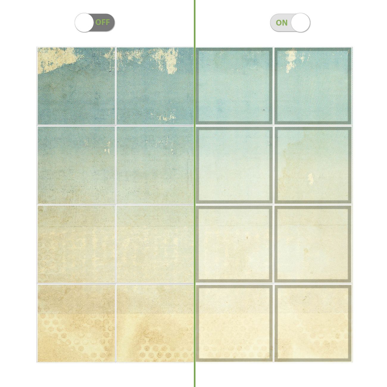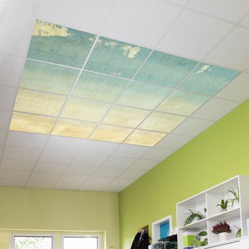 Entdecken Sie unsere vielseitigen Lichtdecken, hier in der Größe 248 x 248cm mit dem Motiv Motiv Patina Papier - Ihre Beleuchtungslösung für jede Umgebung Beleuchten Sie Ihren Raum nicht nur, sondern schaffen Sie Atmosphäre! Die banjado Lichtdecke verwandelt jeden Ort, ob zu Hause, in Praxen, Büros oder Studios in eine Wohlfühloase. Unsere einzelnen Elemente haben eine genormte Einheitsgröße von 62 x 62cm und können somit in jede gängige Rasterdecken verbaut werden. So finden Sie Ihre passende Ausführung: Gern helfen wir Ihnen, die passende Ausführung zu wählen. Hierfür muss die aktuelle Gegebenheit Ihrer Decke oder Wand beachtet werden. Haben Sie bereits eine Rasterdecke (auch Odenwalddecke genannt)? Hier bestellen Sie lediglich das Motiv + Beleuchtungspanel, denn beides wird in die bereits vorhandene Decke eingelegt. Haben Sie eine glatte Decke mit Lichtauslass oder möchten die Lichtdecke an der Wand befestigen? Hier bestellen Sie bitte Motiv + Beleuchtungspanel + Deckenbefestigung, eine Aufbauanleitung liegt immer bei. Die Lichtdecke kann sowohl an der Decke als auch an der Wand montiert werden, perfekt für kreative Lichtakzente oder alternative Beleuchtungslösungen. Haben Sie bereits eine Lichtdecke und möchten nur das Motiv wechseln? Hier bestellen Sie bitte nur Motiv, der Wechsel ist denkbar einfach. Der Aufbau Ihrer banjado Lichtdecke gestaltet sich unkompliziert, dank einer verständlichen Anleitung, die Ihnen Schritt für Schritt durch den Montageprozess hilft. Für die endgültige Installation und den sicheren Anschluss empfehlen wir die Hinzuziehung eines Fachmanns, um die optimale Funktion und Sicherheit Ihrer Beleuchtung zu gewährleisten. Falls Sie einen Fachmann für die Installation benötigen, geben Sie uns gern Bescheid, wir vermitteln Ihnen gern einen geeigneten Ansprechpartner aus Ihrer Nähe. Steuerung: Steigern Sie Ihr Beleuchtungserlebnis mit der nahtlosen Integration in Ihr Smart Home. Durch die Kompatibilität mit der SmartLife App, Alexa und Google Assistant wird Ihr Smartphone zur zentralen Steuerungseinheit. Ihr Handy fungiert hierbei sozusagen als Fernbedienung. Legen Sie individuelle Lichtszenen in der App fest, die bei Aktivierung über den Wand-Ein-/Ausschalter immer wieder abgerufen werden können ohne Handy. Mit der Szenenfunktion in der Smart App können Sie die Beleuchtung personalisieren und steuern, sodass sie auf Ihre individuellen Bedürfnisse, Tagesrhythmus und Stimmung zugeschnitten ist. Beispielsweise können Sie sich in der Morgendämmerung durch ein sanftes Licht wecken lassen oder das Licht der Praxis werktags um 7 Uhr automatisch einschalten lassen. Dieses kann dann natürlich auch zu einer bestimmten Zeit automatisch ausgeschaltet werden. Motivwahl: Diese einzigartige Lichtdecke zeichnet sich durch ihre Fähigkeit aus, die Lichtfarbe je nach gewähltem Motiv anzupassen - ein Baum wirft ein sanftes grünes Licht, während eine Wolkendecke Ihren Raum in ein beruhigendes blaues Leuchten hüllt. Berücksichtigen Sie dies bitte bei Ihrer Motivauswahl. Sie können das Motiv jederzeit ohne großen Aufwand austauschen, ob nach Jahreszeit oder anderem Anlass, unsere Auswahl lässt kaum Wünsche offen. Wir fertigen Ihnen gern eine personalisierte Lichtdecke mit einem eigenen Motiv oder Logo oder Foto, schreiben Sie uns jederzeit an. Technische Daten: Das Motiv ist auf einer 4mm starken Acrylglas Scheibe aufgebracht, das Gesamtgewicht Ihrer Ausführung beträgt 36,2kg. Die Farbtemperatur lässt sich frei einstellen von 3000 bis 6000 Kelvin, damit können Sie stufenlos zwischen warmweiß, neutralweiß und kaltweiß wählen. Die Gesamtleistung bei Ihrer gewählten Ausführung beträgt 640W. Der Lichtstrom beträgt 3600 Lumen, die Nennspannung 230 V. Die Lichtdecke ist mit Schutzart IP20 für den Innenbereich konzipiert und sollte nicht im Nassbereich verwendet werden.
