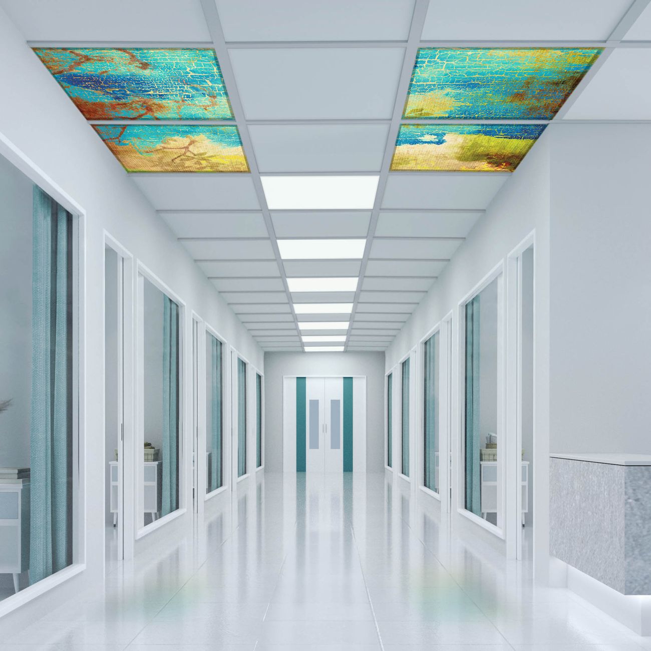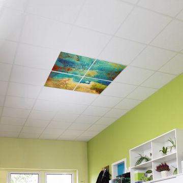 Entdecken Sie unsere vielseitigen Lichtdecken, hier in der Größe 124 x 124cm mit dem Motiv Motiv Patina - Ihre Beleuchtungslösung für jede Umgebung Beleuchten Sie Ihren Raum nicht nur, sondern schaffen Sie Atmosphäre! Die banjado Lichtdecke verwandelt jeden Ort, ob zu Hause, in Praxen, Büros oder Studios in eine Wohlfühloase. Unsere einzelnen Elemente haben eine genormte Einheitsgröße von 62 x 62cm und können somit in jede gängige Rasterdecken verbaut werden. So finden Sie Ihre passende Ausführung: Gern helfen wir Ihnen, die passende Ausführung zu wählen. Hierfür muss die aktuelle Gegebenheit Ihrer Decke oder Wand beachtet werden. Haben Sie bereits eine Rasterdecke (auch Odenwalddecke genannt)? Hier bestellen Sie lediglich das Motiv + Beleuchtungspanel, denn beides wird in die bereits vorhandene Decke eingelegt. Haben Sie eine glatte Decke mit Lichtauslass oder möchten die Lichtdecke an der Wand befestigen? Hier bestellen Sie bitte Motiv + Beleuchtungspanel + Deckenbefestigung, eine Aufbauanleitung liegt immer bei. Die Lichtdecke kann sowohl an der Decke als auch an der Wand montiert werden, perfekt für kreative Lichtakzente oder alternative Beleuchtungslösungen. Haben Sie bereits eine Lichtdecke und möchten nur das Motiv wechseln? Hier bestellen Sie bitte nur Motiv, der Wechsel ist denkbar einfach. Der Aufbau Ihrer banjado Lichtdecke gestaltet sich unkompliziert, dank einer verständlichen Anleitung, die Ihnen Schritt für Schritt durch den Montageprozess hilft. Für die endgültige Installation und den sicheren Anschluss empfehlen wir die Hinzuziehung eines Fachmanns, um die optimale Funktion und Sicherheit Ihrer Beleuchtung zu gewährleisten. Falls Sie einen Fachmann für die Installation benötigen, geben Sie uns gern Bescheid, wir vermitteln Ihnen gern einen geeigneten Ansprechpartner aus Ihrer Nähe. Steuerung: Steigern Sie Ihr Beleuchtungserlebnis mit der nahtlosen Integration in Ihr Smart Home. Durch die Kompatibilität mit der SmartLife App, Alexa und Google Assistant wird Ihr Smartphone zur zentralen Steuerungseinheit. Ihr Handy fungiert hierbei sozusagen als Fernbedienung. Legen Sie individuelle Lichtszenen in der App fest, die bei Aktivierung über den Wand-Ein-/Ausschalter immer wieder abgerufen werden können ohne Handy. Mit der Szenenfunktion in der Smart App können Sie die Beleuchtung personalisieren und steuern, sodass sie auf Ihre individuellen Bedürfnisse, Tagesrhythmus und Stimmung zugeschnitten ist. Beispielsweise können Sie sich in der Morgendämmerung durch ein sanftes Licht wecken lassen oder das Licht der Praxis werktags um 7 Uhr automatisch einschalten lassen. Dieses kann dann natürlich auch zu einer bestimmten Zeit automatisch ausgeschaltet werden. Motivwahl: Diese einzigartige Lichtdecke zeichnet sich durch ihre Fähigkeit aus, die Lichtfarbe je nach gewähltem Motiv anzupassen - ein Baum wirft ein sanftes grünes Licht, während eine Wolkendecke Ihren Raum in ein beruhigendes blaues Leuchten hüllt. Berücksichtigen Sie dies bitte bei Ihrer Motivauswahl. Sie können das Motiv jederzeit ohne großen Aufwand austauschen, ob nach Jahreszeit oder anderem Anlass, unsere Auswahl lässt kaum Wünsche offen. Wir fertigen Ihnen gern eine personalisierte Lichtdecke mit einem eigenen Motiv oder Logo oder Foto, schreiben Sie uns jederzeit an. Technische Daten: Das Motiv ist auf einer 4mm starken Acrylglas Scheibe aufgebracht, das Gesamtgewicht Ihrer Ausführung beträgt 17,7kg. Die Farbtemperatur lässt sich frei einstellen von 3000 bis 6000 Kelvin, damit können Sie stufenlos zwischen warmweiß, neutralweiß und kaltweiß wählen. Die Gesamtleistung bei Ihrer gewählten Ausführung beträgt 160W. Der Lichtstrom beträgt 3600 Lumen, die Nennspannung 230 V. Die Lichtdecke ist mit Schutzart IP20 für den Innenbereich konzipiert und sollte nicht im Nassbereich verwendet werden.