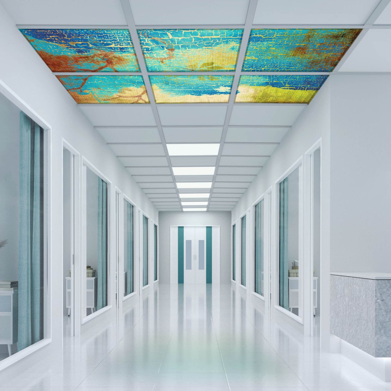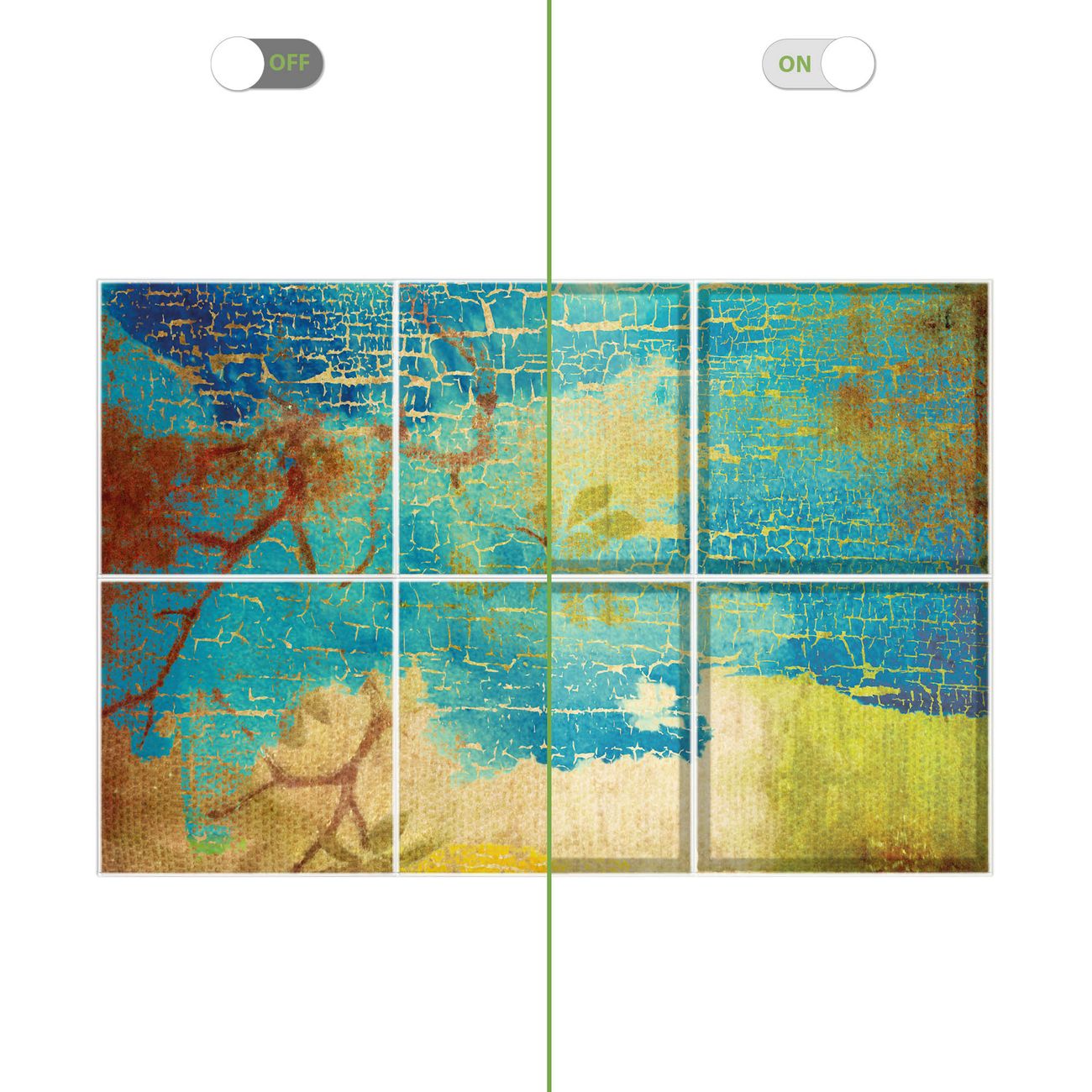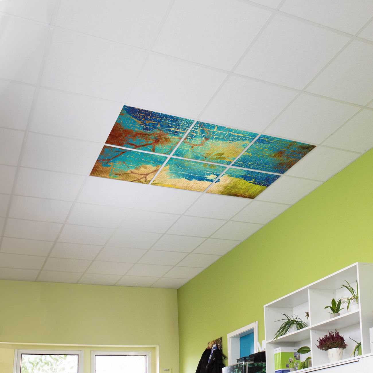 Entdecken Sie unsere vielseitigen Lichtdecken, hier in der Größe 186 x 124cm mit dem Motiv Motiv Patina - Ihre Beleuchtungslösung für jede Umgebung Beleuchten Sie Ihren Raum nicht nur, sondern schaffen Sie Atmosphäre! Die banjado Lichtdecke verwandelt jeden Ort, ob zu Hause, in Praxen, Büros oder Studios in eine Wohlfühloase. Unsere einzelnen Elemente haben eine genormte Einheitsgröße von 62 x 62cm und können somit in jede gängige Rasterdecken verbaut werden. So finden Sie Ihre passende Ausführung: Gern helfen wir Ihnen, die passende Ausführung zu wählen. Hierfür muss die aktuelle Gegebenheit Ihrer Decke oder Wand beachtet werden. Haben Sie bereits eine Rasterdecke (auch Odenwalddecke genannt)? Hier bestellen Sie lediglich das Motiv + Beleuchtungspanel, denn beides wird in die bereits vorhandene Decke eingelegt. Haben Sie eine glatte Decke mit Lichtauslass oder möchten die Lichtdecke an der Wand befestigen? Hier bestellen Sie bitte Motiv + Beleuchtungspanel + Deckenbefestigung, eine Aufbauanleitung liegt immer bei. Die Lichtdecke kann sowohl an der Decke als auch an der Wand montiert werden, perfekt für kreative Lichtakzente oder alternative Beleuchtungslösungen. Haben Sie bereits eine Lichtdecke und möchten nur das Motiv wechseln? Hier bestellen Sie bitte nur Motiv, der Wechsel ist denkbar einfach. Der Aufbau Ihrer banjado Lichtdecke gestaltet sich unkompliziert, dank einer verständlichen Anleitung, die Ihnen Schritt für Schritt durch den Montageprozess hilft. Für die endgültige Installation und den sicheren Anschluss empfehlen wir die Hinzuziehung eines Fachmanns, um die optimale Funktion und Sicherheit Ihrer Beleuchtung zu gewährleisten. Falls Sie einen Fachmann für die Installation benötigen, geben Sie uns gern Bescheid, wir vermitteln Ihnen gern einen geeigneten Ansprechpartner aus Ihrer Nähe. Steuerung: Steigern Sie Ihr Beleuchtungserlebnis mit der nahtlosen Integration in Ihr Smart Home. Durch die Kompatibilität mit der SmartLife App, Alexa und Google Assistant wird Ihr Smartphone zur zentralen Steuerungseinheit. Ihr Handy fungiert hierbei sozusagen als Fernbedienung. Legen Sie individuelle Lichtszenen in der App fest, die bei Aktivierung über den Wand-Ein-/Ausschalter immer wieder abgerufen werden können ohne Handy. Mit der Szenenfunktion in der Smart App können Sie die Beleuchtung personalisieren und steuern, sodass sie auf Ihre individuellen Bedürfnisse, Tagesrhythmus und Stimmung zugeschnitten ist. Beispielsweise können Sie sich in der Morgendämmerung durch ein sanftes Licht wecken lassen oder das Licht der Praxis werktags um 7 Uhr automatisch einschalten lassen. Dieses kann dann natürlich auch zu einer bestimmten Zeit automatisch ausgeschaltet werden. Motivwahl: Diese einzigartige Lichtdecke zeichnet sich durch ihre Fähigkeit aus, die Lichtfarbe je nach gewähltem Motiv anzupassen - ein Baum wirft ein sanftes grünes Licht, während eine Wolkendecke Ihren Raum in ein beruhigendes blaues Leuchten hüllt. Berücksichtigen Sie dies bitte bei Ihrer Motivauswahl. Sie können das Motiv jederzeit ohne großen Aufwand austauschen, ob nach Jahreszeit oder anderem Anlass, unsere Auswahl lässt kaum Wünsche offen. Wir fertigen Ihnen gern eine personalisierte Lichtdecke mit einem eigenen Motiv oder Logo oder Foto, schreiben Sie uns jederzeit an. Technische Daten: Das Motiv ist auf einer 4mm starken Acrylglas Scheibe aufgebracht, das Gesamtgewicht Ihrer Ausführung beträgt 26,6kg. Die Farbtemperatur lässt sich frei einstellen von 3000 bis 6000 Kelvin, damit können Sie stufenlos zwischen warmweiß, neutralweiß und kaltweiß wählen. Die Gesamtleistung bei Ihrer gewählten Ausführung beträgt 240W. Der Lichtstrom beträgt 3600 Lumen, die Nennspannung 230 V. Die Lichtdecke ist mit Schutzart IP20 für den Innenbereich konzipiert und sollte nicht im Nassbereich verwendet werden.