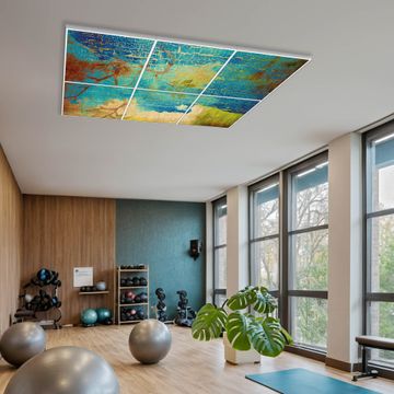 Entdecken Sie unsere vielseitigen Lichtdecken, hier in der Größe 186 x 124cm mit dem Motiv Motiv Patina - Ihre Beleuchtungslösung für jede Umgebung Beleuchten Sie Ihren Raum nicht nur, sondern schaffen Sie Atmosphäre! Die banjado Lichtdecke verwandelt jeden Ort, ob zu Hause, in Praxen, Büros oder Studios in eine Wohlfühloase. Unsere einzelnen Elemente haben eine genormte Einheitsgröße von 62 x 62cm und können somit in jede gängige Rasterdecken verbaut werden. So finden Sie Ihre passende Ausführung: Gern helfen wir Ihnen, die passende Ausführung zu wählen. Hierfür muss die aktuelle Gegebenheit Ihrer Decke oder Wand beachtet werden. Haben Sie bereits eine Rasterdecke (auch Odenwalddecke genannt)? Hier bestellen Sie lediglich das Motiv + Beleuchtungspanel, denn beides wird in die bereits vorhandene Decke eingelegt. Haben Sie eine glatte Decke mit Lichtauslass oder möchten die Lichtdecke an der Wand befestigen? Hier bestellen Sie bitte Motiv + Beleuchtungspanel + Deckenbefestigung, eine Aufbauanleitung liegt immer bei. Die Lichtdecke kann sowohl an der Decke als auch an der Wand montiert werden, perfekt für kreative Lichtakzente oder alternative Beleuchtungslösungen. Haben Sie bereits eine Lichtdecke und möchten nur das Motiv wechseln? Hier bestellen Sie bitte nur Motiv, der Wechsel ist denkbar einfach. Der Aufbau Ihrer banjado Lichtdecke gestaltet sich unkompliziert, dank einer verständlichen Anleitung, die Ihnen Schritt für Schritt durch den Montageprozess hilft. Für die endgültige Installation und den sicheren Anschluss empfehlen wir die Hinzuziehung eines Fachmanns, um die optimale Funktion und Sicherheit Ihrer Beleuchtung zu gewährleisten. Falls Sie einen Fachmann für die Installation benötigen, geben Sie uns gern Bescheid, wir vermitteln Ihnen gern einen geeigneten Ansprechpartner aus Ihrer Nähe. Steuerung: Steigern Sie Ihr Beleuchtungserlebnis mit der nahtlosen Integration in Ihr Smart Home. Durch die Kompatibilität mit der SmartLife App, Alexa und Google Assistant wird Ihr Smartphone zur zentralen Steuerungseinheit. Ihr Handy fungiert hierbei sozusagen als Fernbedienung. Legen Sie individuelle Lichtszenen in der App fest, die bei Aktivierung über den Wand-Ein-/Ausschalter immer wieder abgerufen werden können ohne Handy. Mit der Szenenfunktion in der Smart App können Sie die Beleuchtung personalisieren und steuern, sodass sie auf Ihre individuellen Bedürfnisse, Tagesrhythmus und Stimmung zugeschnitten ist. Beispielsweise können Sie sich in der Morgendämmerung durch ein sanftes Licht wecken lassen oder das Licht der Praxis werktags um 7 Uhr automatisch einschalten lassen. Dieses kann dann natürlich auch zu einer bestimmten Zeit automatisch ausgeschaltet werden. Motivwahl: Diese einzigartige Lichtdecke zeichnet sich durch ihre Fähigkeit aus, die Lichtfarbe je nach gewähltem Motiv anzupassen - ein Baum wirft ein sanftes grünes Licht, während eine Wolkendecke Ihren Raum in ein beruhigendes blaues Leuchten hüllt. Berücksichtigen Sie dies bitte bei Ihrer Motivauswahl. Sie können das Motiv jederzeit ohne großen Aufwand austauschen, ob nach Jahreszeit oder anderem Anlass, unsere Auswahl lässt kaum Wünsche offen. Wir fertigen Ihnen gern eine personalisierte Lichtdecke mit einem eigenen Motiv oder Logo oder Foto, schreiben Sie uns jederzeit an. Technische Daten: Das Motiv ist auf einer 4mm starken Acrylglas Scheibe aufgebracht, das Gesamtgewicht Ihrer Ausführung beträgt 29,6kg. Die Farbtemperatur lässt sich frei einstellen von 3000 bis 6000 Kelvin, damit können Sie stufenlos zwischen warmweiß, neutralweiß und kaltweiß wählen. Die Gesamtleistung bei Ihrer gewählten Ausführung beträgt 240W. Der Lichtstrom beträgt 3600 Lumen, die Nennspannung 230 V. Die Lichtdecke ist mit Schutzart IP20 für den Innenbereich konzipiert und sollte nicht im Nassbereich verwendet werden.