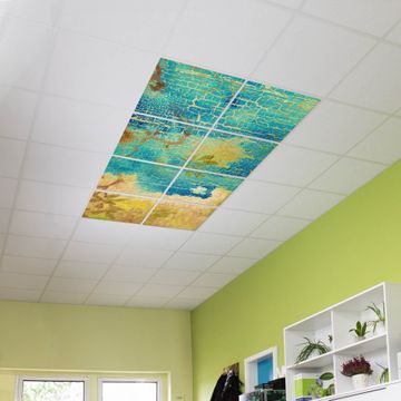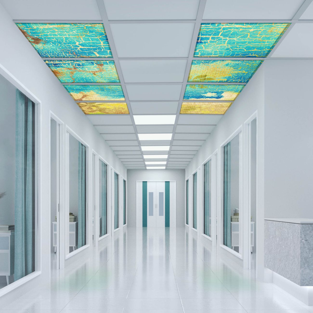 Entdecken Sie unsere vielseitigen Lichtdecken, hier in der Größe 124 x 248cm mit dem Motiv Motiv Patina - Ihre Beleuchtungslösung für jede Umgebung Beleuchten Sie Ihren Raum nicht nur, sondern schaffen Sie Atmosphäre! Die banjado Lichtdecke verwandelt jeden Ort, ob zu Hause, in Praxen, Büros oder Studios in eine Wohlfühloase. Unsere einzelnen Elemente haben eine genormte Einheitsgröße von 62 x 62cm und können somit in jede gängige Rasterdecken verbaut werden. So finden Sie Ihre passende Ausführung: Gern helfen wir Ihnen, die passende Ausführung zu wählen. Hierfür muss die aktuelle Gegebenheit Ihrer Decke oder Wand beachtet werden. Haben Sie bereits eine Rasterdecke (auch Odenwalddecke genannt)? Hier bestellen Sie lediglich das Motiv + Beleuchtungspanel, denn beides wird in die bereits vorhandene Decke eingelegt. Haben Sie eine glatte Decke mit Lichtauslass oder möchten die Lichtdecke an der Wand befestigen? Hier bestellen Sie bitte Motiv + Beleuchtungspanel + Deckenbefestigung, eine Aufbauanleitung liegt immer bei. Die Lichtdecke kann sowohl an der Decke als auch an der Wand montiert werden, perfekt für kreative Lichtakzente oder alternative Beleuchtungslösungen. Haben Sie bereits eine Lichtdecke und möchten nur das Motiv wechseln? Hier bestellen Sie bitte nur Motiv, der Wechsel ist denkbar einfach. Der Aufbau Ihrer banjado Lichtdecke gestaltet sich unkompliziert, dank einer verständlichen Anleitung, die Ihnen Schritt für Schritt durch den Montageprozess hilft. Für die endgültige Installation und den sicheren Anschluss empfehlen wir die Hinzuziehung eines Fachmanns, um die optimale Funktion und Sicherheit Ihrer Beleuchtung zu gewährleisten. Falls Sie einen Fachmann für die Installation benötigen, geben Sie uns gern Bescheid, wir vermitteln Ihnen gern einen geeigneten Ansprechpartner aus Ihrer Nähe. Steuerung: Steigern Sie Ihr Beleuchtungserlebnis mit der nahtlosen Integration in Ihr Smart Home. Durch die Kompatibilität mit der SmartLife App, Alexa und Google Assistant wird Ihr Smartphone zur zentralen Steuerungseinheit. Ihr Handy fungiert hierbei sozusagen als Fernbedienung. Legen Sie individuelle Lichtszenen in der App fest, die bei Aktivierung über den Wand-Ein-/Ausschalter immer wieder abgerufen werden können ohne Handy. Mit der Szenenfunktion in der Smart App können Sie die Beleuchtung personalisieren und steuern, sodass sie auf Ihre individuellen Bedürfnisse, Tagesrhythmus und Stimmung zugeschnitten ist. Beispielsweise können Sie sich in der Morgendämmerung durch ein sanftes Licht wecken lassen oder das Licht der Praxis werktags um 7 Uhr automatisch einschalten lassen. Dieses kann dann natürlich auch zu einer bestimmten Zeit automatisch ausgeschaltet werden. Motivwahl: Diese einzigartige Lichtdecke zeichnet sich durch ihre Fähigkeit aus, die Lichtfarbe je nach gewähltem Motiv anzupassen - ein Baum wirft ein sanftes grünes Licht, während eine Wolkendecke Ihren Raum in ein beruhigendes blaues Leuchten hüllt. Berücksichtigen Sie dies bitte bei Ihrer Motivauswahl. Sie können das Motiv jederzeit ohne großen Aufwand austauschen, ob nach Jahreszeit oder anderem Anlass, unsere Auswahl lässt kaum Wünsche offen. Wir fertigen Ihnen gern eine personalisierte Lichtdecke mit einem eigenen Motiv oder Logo oder Foto, schreiben Sie uns jederzeit an. Technische Daten: Das Motiv ist auf einer 4mm starken Acrylglas Scheibe aufgebracht, das Gesamtgewicht Ihrer Ausführung beträgt 35,4kg. Die Farbtemperatur lässt sich frei einstellen von 3000 bis 6000 Kelvin, damit können Sie stufenlos zwischen warmweiß, neutralweiß und kaltweiß wählen. Die Gesamtleistung bei Ihrer gewählten Ausführung beträgt 320W. Der Lichtstrom beträgt 3600 Lumen, die Nennspannung 230 V. Die Lichtdecke ist mit Schutzart IP20 für den Innenbereich konzipiert und sollte nicht im Nassbereich verwendet werden.