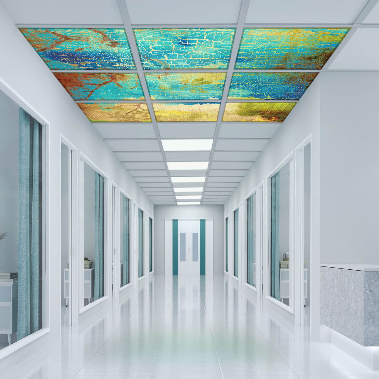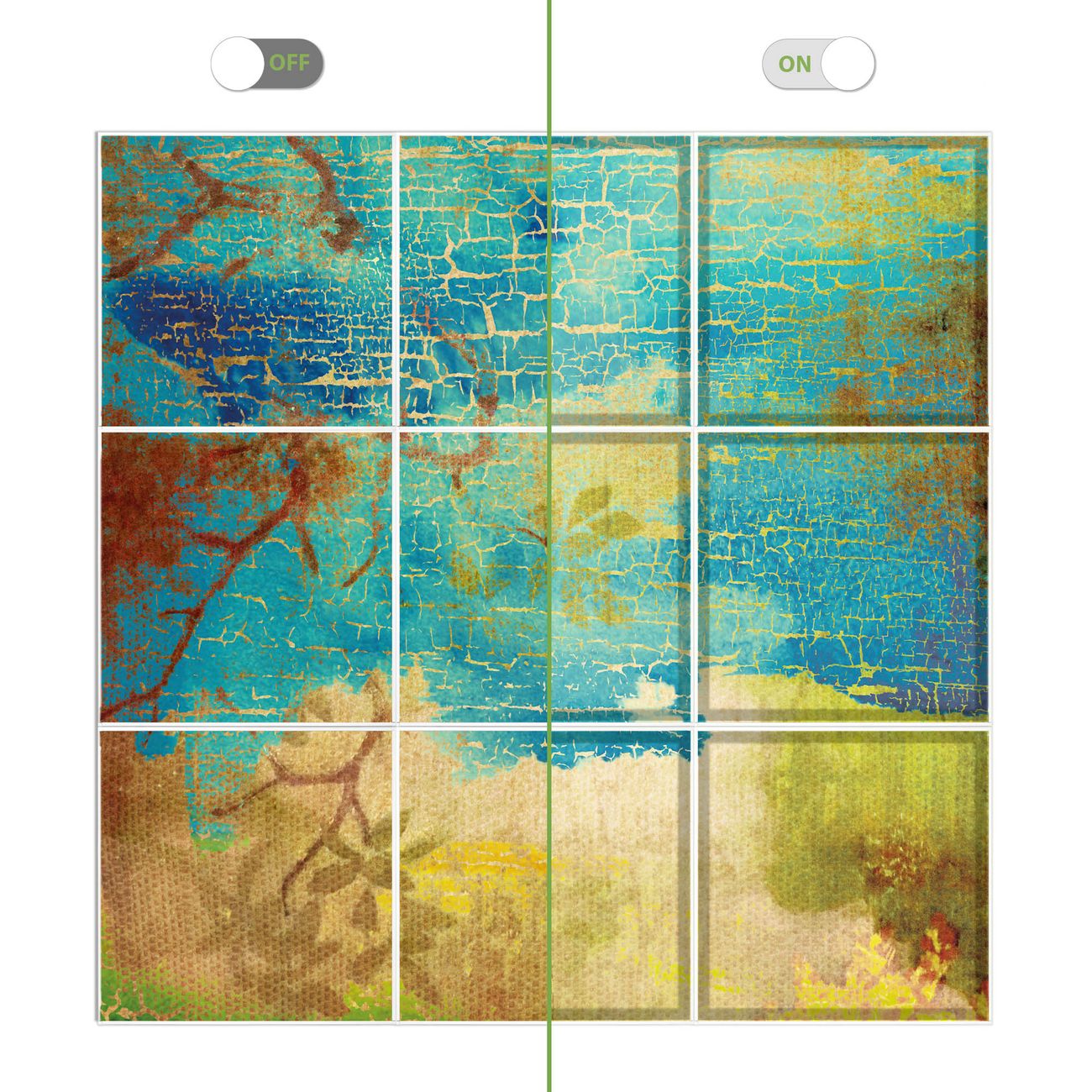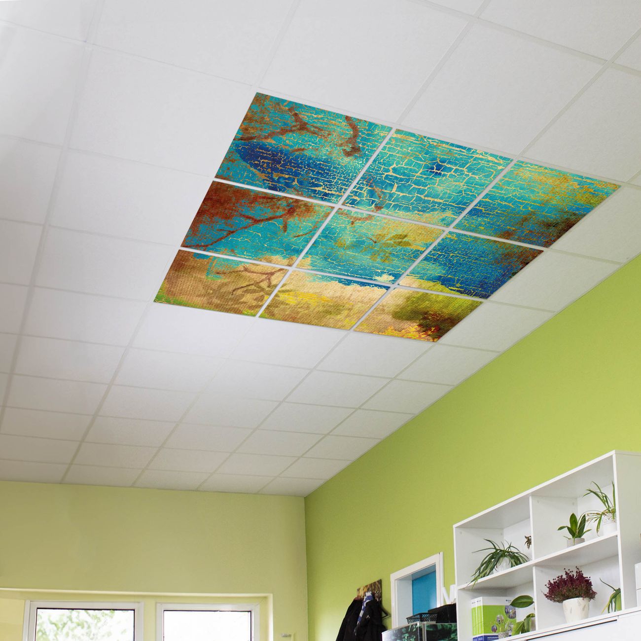 Entdecken Sie unsere vielseitigen Lichtdecken, hier in der Größe 186 x 186cm mit dem Motiv Motiv Patina - Ihre Beleuchtungslösung für jede Umgebung Beleuchten Sie Ihren Raum nicht nur, sondern schaffen Sie Atmosphäre! Die banjado Lichtdecke verwandelt jeden Ort, ob zu Hause, in Praxen, Büros oder Studios in eine Wohlfühloase. Unsere einzelnen Elemente haben eine genormte Einheitsgröße von 62 x 62cm und können somit in jede gängige Rasterdecken verbaut werden. So finden Sie Ihre passende Ausführung: Gern helfen wir Ihnen, die passende Ausführung zu wählen. Hierfür muss die aktuelle Gegebenheit Ihrer Decke oder Wand beachtet werden. Haben Sie bereits eine Rasterdecke (auch Odenwalddecke genannt)? Hier bestellen Sie lediglich das Motiv + Beleuchtungspanel, denn beides wird in die bereits vorhandene Decke eingelegt. Haben Sie eine glatte Decke mit Lichtauslass oder möchten die Lichtdecke an der Wand befestigen? Hier bestellen Sie bitte Motiv + Beleuchtungspanel + Deckenbefestigung, eine Aufbauanleitung liegt immer bei. Die Lichtdecke kann sowohl an der Decke als auch an der Wand montiert werden, perfekt für kreative Lichtakzente oder alternative Beleuchtungslösungen. Haben Sie bereits eine Lichtdecke und möchten nur das Motiv wechseln? Hier bestellen Sie bitte nur Motiv, der Wechsel ist denkbar einfach. Der Aufbau Ihrer banjado Lichtdecke gestaltet sich unkompliziert, dank einer verständlichen Anleitung, die Ihnen Schritt für Schritt durch den Montageprozess hilft. Für die endgültige Installation und den sicheren Anschluss empfehlen wir die Hinzuziehung eines Fachmanns, um die optimale Funktion und Sicherheit Ihrer Beleuchtung zu gewährleisten. Falls Sie einen Fachmann für die Installation benötigen, geben Sie uns gern Bescheid, wir vermitteln Ihnen gern einen geeigneten Ansprechpartner aus Ihrer Nähe. Steuerung: Steigern Sie Ihr Beleuchtungserlebnis mit der nahtlosen Integration in Ihr Smart Home. Durch die Kompatibilität mit der SmartLife App, Alexa und Google Assistant wird Ihr Smartphone zur zentralen Steuerungseinheit. Ihr Handy fungiert hierbei sozusagen als Fernbedienung. Legen Sie individuelle Lichtszenen in der App fest, die bei Aktivierung über den Wand-Ein-/Ausschalter immer wieder abgerufen werden können ohne Handy. Mit der Szenenfunktion in der Smart App können Sie die Beleuchtung personalisieren und steuern, sodass sie auf Ihre individuellen Bedürfnisse, Tagesrhythmus und Stimmung zugeschnitten ist. Beispielsweise können Sie sich in der Morgendämmerung durch ein sanftes Licht wecken lassen oder das Licht der Praxis werktags um 7 Uhr automatisch einschalten lassen. Dieses kann dann natürlich auch zu einer bestimmten Zeit automatisch ausgeschaltet werden. Motivwahl: Diese einzigartige Lichtdecke zeichnet sich durch ihre Fähigkeit aus, die Lichtfarbe je nach gewähltem Motiv anzupassen - ein Baum wirft ein sanftes grünes Licht, während eine Wolkendecke Ihren Raum in ein beruhigendes blaues Leuchten hüllt. Berücksichtigen Sie dies bitte bei Ihrer Motivauswahl. Sie können das Motiv jederzeit ohne großen Aufwand austauschen, ob nach Jahreszeit oder anderem Anlass, unsere Auswahl lässt kaum Wünsche offen. Wir fertigen Ihnen gern eine personalisierte Lichtdecke mit einem eigenen Motiv oder Logo oder Foto, schreiben Sie uns jederzeit an. Technische Daten: Das Motiv ist auf einer 4mm starken Acrylglas Scheibe aufgebracht, das Gesamtgewicht Ihrer Ausführung beträgt 20,4kg. Die Farbtemperatur lässt sich frei einstellen von 3000 bis 6000 Kelvin, damit können Sie stufenlos zwischen warmweiß, neutralweiß und kaltweiß wählen. Die Gesamtleistung bei Ihrer gewählten Ausführung beträgt 360W. Der Lichtstrom beträgt 3600 Lumen, die Nennspannung 230 V. Die Lichtdecke ist mit Schutzart IP20 für den Innenbereich konzipiert und sollte nicht im Nassbereich verwendet werden.