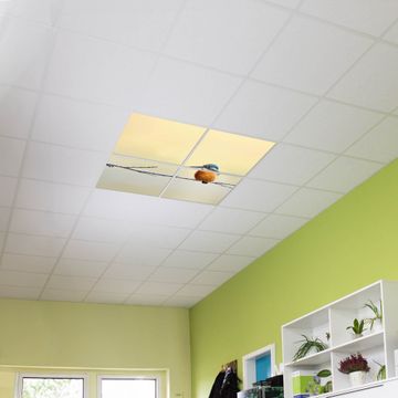 Entdecken Sie unsere vielseitigen Lichtdecken, hier in der Größe 124 x 124cm mit dem Motiv Motiv Pause - Ihre Beleuchtungslösung für jede Umgebung Beleuchten Sie Ihren Raum nicht nur, sondern schaffen Sie Atmosphäre! Die banjado Lichtdecke verwandelt jeden Ort, ob zu Hause, in Praxen, Büros oder Studios in eine Wohlfühloase. Unsere einzelnen Elemente haben eine genormte Einheitsgröße von 62 x 62cm und können somit in jede gängige Rasterdecken verbaut werden. So finden Sie Ihre passende Ausführung: Gern helfen wir Ihnen, die passende Ausführung zu wählen. Hierfür muss die aktuelle Gegebenheit Ihrer Decke oder Wand beachtet werden. Haben Sie bereits eine Rasterdecke (auch Odenwalddecke genannt)? Hier bestellen Sie lediglich das Motiv + Beleuchtungspanel, denn beides wird in die bereits vorhandene Decke eingelegt. Haben Sie eine glatte Decke mit Lichtauslass oder möchten die Lichtdecke an der Wand befestigen? Hier bestellen Sie bitte Motiv + Beleuchtungspanel + Deckenbefestigung, eine Aufbauanleitung liegt immer bei. Die Lichtdecke kann sowohl an der Decke als auch an der Wand montiert werden, perfekt für kreative Lichtakzente oder alternative Beleuchtungslösungen. Haben Sie bereits eine Lichtdecke und möchten nur das Motiv wechseln? Hier bestellen Sie bitte nur Motiv, der Wechsel ist denkbar einfach. Der Aufbau Ihrer banjado Lichtdecke gestaltet sich unkompliziert, dank einer verständlichen Anleitung, die Ihnen Schritt für Schritt durch den Montageprozess hilft. Für die endgültige Installation und den sicheren Anschluss empfehlen wir die Hinzuziehung eines Fachmanns, um die optimale Funktion und Sicherheit Ihrer Beleuchtung zu gewährleisten. Falls Sie einen Fachmann für die Installation benötigen, geben Sie uns gern Bescheid, wir vermitteln Ihnen gern einen geeigneten Ansprechpartner aus Ihrer Nähe. Steuerung: Steigern Sie Ihr Beleuchtungserlebnis mit der nahtlosen Integration in Ihr Smart Home. Durch die Kompatibilität mit der SmartLife App, Alexa und Google Assistant wird Ihr Smartphone zur zentralen Steuerungseinheit. Ihr Handy fungiert hierbei sozusagen als Fernbedienung. Legen Sie individuelle Lichtszenen in der App fest, die bei Aktivierung über den Wand-Ein-/Ausschalter immer wieder abgerufen werden können ohne Handy. Mit der Szenenfunktion in der Smart App können Sie die Beleuchtung personalisieren und steuern, sodass sie auf Ihre individuellen Bedürfnisse, Tagesrhythmus und Stimmung zugeschnitten ist. Beispielsweise können Sie sich in der Morgendämmerung durch ein sanftes Licht wecken lassen oder das Licht der Praxis werktags um 7 Uhr automatisch einschalten lassen. Dieses kann dann natürlich auch zu einer bestimmten Zeit automatisch ausgeschaltet werden. Motivwahl: Diese einzigartige Lichtdecke zeichnet sich durch ihre Fähigkeit aus, die Lichtfarbe je nach gewähltem Motiv anzupassen - ein Baum wirft ein sanftes grünes Licht, während eine Wolkendecke Ihren Raum in ein beruhigendes blaues Leuchten hüllt. Berücksichtigen Sie dies bitte bei Ihrer Motivauswahl. Sie können das Motiv jederzeit ohne großen Aufwand austauschen, ob nach Jahreszeit oder anderem Anlass, unsere Auswahl lässt kaum Wünsche offen. Wir fertigen Ihnen gern eine personalisierte Lichtdecke mit einem eigenen Motiv oder Logo oder Foto, schreiben Sie uns jederzeit an. Technische Daten: Das Motiv ist auf einer 4mm starken Acrylglas Scheibe aufgebracht, das Gesamtgewicht Ihrer Ausführung beträgt 17,7kg. Die Farbtemperatur lässt sich frei einstellen von 3000 bis 6000 Kelvin, damit können Sie stufenlos zwischen warmweiß, neutralweiß und kaltweiß wählen. Die Gesamtleistung bei Ihrer gewählten Ausführung beträgt 160W. Der Lichtstrom beträgt 3600 Lumen, die Nennspannung 230 V. Die Lichtdecke ist mit Schutzart IP20 für den Innenbereich konzipiert und sollte nicht im Nassbereich verwendet werden.