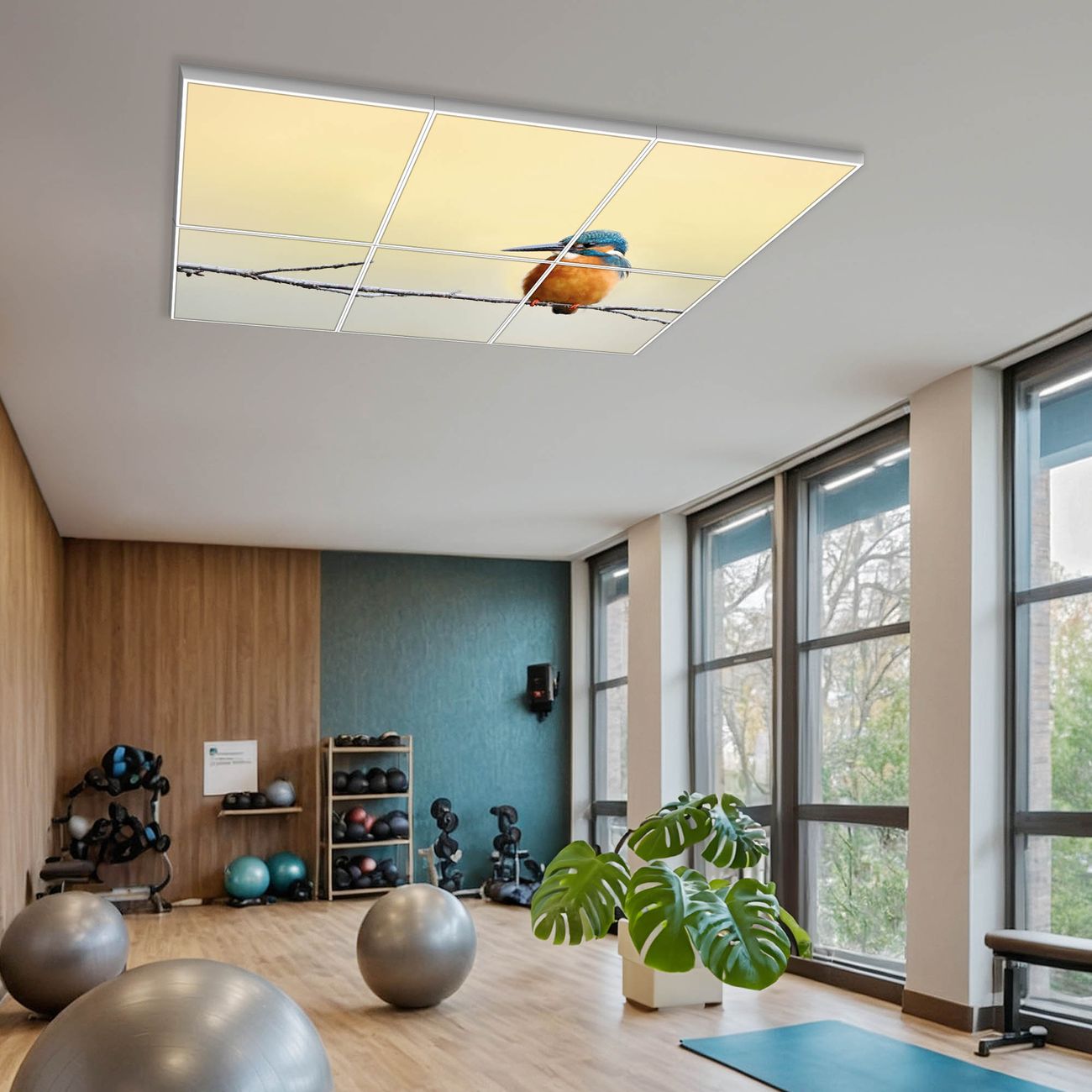 Entdecken Sie unsere vielseitigen Lichtdecken, hier in der Größe 186 x 124cm mit dem Motiv Motiv Pause - Ihre Beleuchtungslösung für jede Umgebung Beleuchten Sie Ihren Raum nicht nur, sondern schaffen Sie Atmosphäre! Die banjado Lichtdecke verwandelt jeden Ort, ob zu Hause, in Praxen, Büros oder Studios in eine Wohlfühloase. Unsere einzelnen Elemente haben eine genormte Einheitsgröße von 62 x 62cm und können somit in jede gängige Rasterdecken verbaut werden. So finden Sie Ihre passende Ausführung: Gern helfen wir Ihnen, die passende Ausführung zu wählen. Hierfür muss die aktuelle Gegebenheit Ihrer Decke oder Wand beachtet werden. Haben Sie bereits eine Rasterdecke (auch Odenwalddecke genannt)? Hier bestellen Sie lediglich das Motiv + Beleuchtungspanel, denn beides wird in die bereits vorhandene Decke eingelegt. Haben Sie eine glatte Decke mit Lichtauslass oder möchten die Lichtdecke an der Wand befestigen? Hier bestellen Sie bitte Motiv + Beleuchtungspanel + Deckenbefestigung, eine Aufbauanleitung liegt immer bei. Die Lichtdecke kann sowohl an der Decke als auch an der Wand montiert werden, perfekt für kreative Lichtakzente oder alternative Beleuchtungslösungen. Haben Sie bereits eine Lichtdecke und möchten nur das Motiv wechseln? Hier bestellen Sie bitte nur Motiv, der Wechsel ist denkbar einfach. Der Aufbau Ihrer banjado Lichtdecke gestaltet sich unkompliziert, dank einer verständlichen Anleitung, die Ihnen Schritt für Schritt durch den Montageprozess hilft. Für die endgültige Installation und den sicheren Anschluss empfehlen wir die Hinzuziehung eines Fachmanns, um die optimale Funktion und Sicherheit Ihrer Beleuchtung zu gewährleisten. Falls Sie einen Fachmann für die Installation benötigen, geben Sie uns gern Bescheid, wir vermitteln Ihnen gern einen geeigneten Ansprechpartner aus Ihrer Nähe. Steuerung: Steigern Sie Ihr Beleuchtungserlebnis mit der nahtlosen Integration in Ihr Smart Home. Durch die Kompatibilität mit der SmartLife App, Alexa und Google Assistant wird Ihr Smartphone zur zentralen Steuerungseinheit. Ihr Handy fungiert hierbei sozusagen als Fernbedienung. Legen Sie individuelle Lichtszenen in der App fest, die bei Aktivierung über den Wand-Ein-/Ausschalter immer wieder abgerufen werden können ohne Handy. Mit der Szenenfunktion in der Smart App können Sie die Beleuchtung personalisieren und steuern, sodass sie auf Ihre individuellen Bedürfnisse, Tagesrhythmus und Stimmung zugeschnitten ist. Beispielsweise können Sie sich in der Morgendämmerung durch ein sanftes Licht wecken lassen oder das Licht der Praxis werktags um 7 Uhr automatisch einschalten lassen. Dieses kann dann natürlich auch zu einer bestimmten Zeit automatisch ausgeschaltet werden. Motivwahl: Diese einzigartige Lichtdecke zeichnet sich durch ihre Fähigkeit aus, die Lichtfarbe je nach gewähltem Motiv anzupassen - ein Baum wirft ein sanftes grünes Licht, während eine Wolkendecke Ihren Raum in ein beruhigendes blaues Leuchten hüllt. Berücksichtigen Sie dies bitte bei Ihrer Motivauswahl. Sie können das Motiv jederzeit ohne großen Aufwand austauschen, ob nach Jahreszeit oder anderem Anlass, unsere Auswahl lässt kaum Wünsche offen. Wir fertigen Ihnen gern eine personalisierte Lichtdecke mit einem eigenen Motiv oder Logo oder Foto, schreiben Sie uns jederzeit an. Technische Daten: Das Motiv ist auf einer 4mm starken Acrylglas Scheibe aufgebracht, das Gesamtgewicht Ihrer Ausführung beträgt 29,6kg. Die Farbtemperatur lässt sich frei einstellen von 3000 bis 6000 Kelvin, damit können Sie stufenlos zwischen warmweiß, neutralweiß und kaltweiß wählen. Die Gesamtleistung bei Ihrer gewählten Ausführung beträgt 240W. Der Lichtstrom beträgt 3600 Lumen, die Nennspannung 230 V. Die Lichtdecke ist mit Schutzart IP20 für den Innenbereich konzipiert und sollte nicht im Nassbereich verwendet werden.