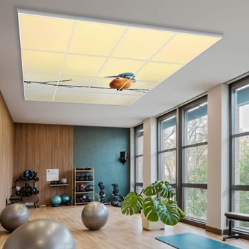 Entdecken Sie unsere vielseitigen Lichtdecken, hier in der Größe 248 x 248cm mit dem Motiv Motiv Pause - Ihre Beleuchtungslösung für jede Umgebung Beleuchten Sie Ihren Raum nicht nur, sondern schaffen Sie Atmosphäre! Die banjado Lichtdecke verwandelt jeden Ort, ob zu Hause, in Praxen, Büros oder Studios in eine Wohlfühloase. Unsere einzelnen Elemente haben eine genormte Einheitsgröße von 62 x 62cm und können somit in jede gängige Rasterdecken verbaut werden. So finden Sie Ihre passende Ausführung: Gern helfen wir Ihnen, die passende Ausführung zu wählen. Hierfür muss die aktuelle Gegebenheit Ihrer Decke oder Wand beachtet werden. Haben Sie bereits eine Rasterdecke (auch Odenwalddecke genannt)? Hier bestellen Sie lediglich das Motiv + Beleuchtungspanel, denn beides wird in die bereits vorhandene Decke eingelegt. Haben Sie eine glatte Decke mit Lichtauslass oder möchten die Lichtdecke an der Wand befestigen? Hier bestellen Sie bitte Motiv + Beleuchtungspanel + Deckenbefestigung, eine Aufbauanleitung liegt immer bei. Die Lichtdecke kann sowohl an der Decke als auch an der Wand montiert werden, perfekt für kreative Lichtakzente oder alternative Beleuchtungslösungen. Haben Sie bereits eine Lichtdecke und möchten nur das Motiv wechseln? Hier bestellen Sie bitte nur Motiv, der Wechsel ist denkbar einfach. Der Aufbau Ihrer banjado Lichtdecke gestaltet sich unkompliziert, dank einer verständlichen Anleitung, die Ihnen Schritt für Schritt durch den Montageprozess hilft. Für die endgültige Installation und den sicheren Anschluss empfehlen wir die Hinzuziehung eines Fachmanns, um die optimale Funktion und Sicherheit Ihrer Beleuchtung zu gewährleisten. Falls Sie einen Fachmann für die Installation benötigen, geben Sie uns gern Bescheid, wir vermitteln Ihnen gern einen geeigneten Ansprechpartner aus Ihrer Nähe. Steuerung: Steigern Sie Ihr Beleuchtungserlebnis mit der nahtlosen Integration in Ihr Smart Home. Durch die Kompatibilität mit der SmartLife App, Alexa und Google Assistant wird Ihr Smartphone zur zentralen Steuerungseinheit. Ihr Handy fungiert hierbei sozusagen als Fernbedienung. Legen Sie individuelle Lichtszenen in der App fest, die bei Aktivierung über den Wand-Ein-/Ausschalter immer wieder abgerufen werden können ohne Handy. Mit der Szenenfunktion in der Smart App können Sie die Beleuchtung personalisieren und steuern, sodass sie auf Ihre individuellen Bedürfnisse, Tagesrhythmus und Stimmung zugeschnitten ist. Beispielsweise können Sie sich in der Morgendämmerung durch ein sanftes Licht wecken lassen oder das Licht der Praxis werktags um 7 Uhr automatisch einschalten lassen. Dieses kann dann natürlich auch zu einer bestimmten Zeit automatisch ausgeschaltet werden. Motivwahl: Diese einzigartige Lichtdecke zeichnet sich durch ihre Fähigkeit aus, die Lichtfarbe je nach gewähltem Motiv anzupassen - ein Baum wirft ein sanftes grünes Licht, während eine Wolkendecke Ihren Raum in ein beruhigendes blaues Leuchten hüllt. Berücksichtigen Sie dies bitte bei Ihrer Motivauswahl. Sie können das Motiv jederzeit ohne großen Aufwand austauschen, ob nach Jahreszeit oder anderem Anlass, unsere Auswahl lässt kaum Wünsche offen. Wir fertigen Ihnen gern eine personalisierte Lichtdecke mit einem eigenen Motiv oder Logo oder Foto, schreiben Sie uns jederzeit an. Technische Daten: Das Motiv ist auf einer 4mm starken Acrylglas Scheibe aufgebracht, das Gesamtgewicht Ihrer Ausführung beträgt 78,9kg. Die Farbtemperatur lässt sich frei einstellen von 3000 bis 6000 Kelvin, damit können Sie stufenlos zwischen warmweiß, neutralweiß und kaltweiß wählen. Die Gesamtleistung bei Ihrer gewählten Ausführung beträgt 640W. Der Lichtstrom beträgt 3600 Lumen, die Nennspannung 230 V. Die Lichtdecke ist mit Schutzart IP20 für den Innenbereich konzipiert und sollte nicht im Nassbereich verwendet werden.