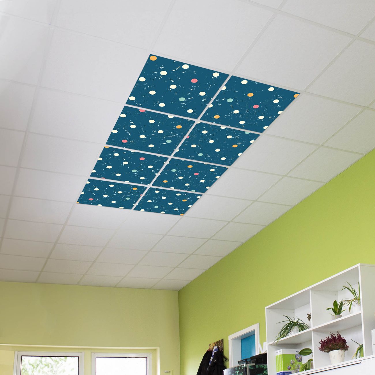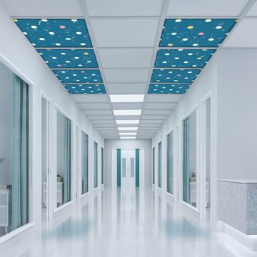 Entdecken Sie unsere vielseitigen Lichtdecken, hier in der Größe 124 x 248cm mit dem Motiv Motiv Punkte auf Blau - Ihre Beleuchtungslösung für jede Umgebung Beleuchten Sie Ihren Raum nicht nur, sondern schaffen Sie Atmosphäre! Die banjado Lichtdecke verwandelt jeden Ort, ob zu Hause, in Praxen, Büros oder Studios in eine Wohlfühloase. Unsere einzelnen Elemente haben eine genormte Einheitsgröße von 62 x 62cm und können somit in jede gängige Rasterdecken verbaut werden. So finden Sie Ihre passende Ausführung: Gern helfen wir Ihnen, die passende Ausführung zu wählen. Hierfür muss die aktuelle Gegebenheit Ihrer Decke oder Wand beachtet werden. Haben Sie bereits eine Rasterdecke (auch Odenwalddecke genannt)? Hier bestellen Sie lediglich das Motiv + Beleuchtungspanel, denn beides wird in die bereits vorhandene Decke eingelegt. Haben Sie eine glatte Decke mit Lichtauslass oder möchten die Lichtdecke an der Wand befestigen? Hier bestellen Sie bitte Motiv + Beleuchtungspanel + Deckenbefestigung, eine Aufbauanleitung liegt immer bei. Die Lichtdecke kann sowohl an der Decke als auch an der Wand montiert werden, perfekt für kreative Lichtakzente oder alternative Beleuchtungslösungen. Haben Sie bereits eine Lichtdecke und möchten nur das Motiv wechseln? Hier bestellen Sie bitte nur Motiv, der Wechsel ist denkbar einfach. Der Aufbau Ihrer banjado Lichtdecke gestaltet sich unkompliziert, dank einer verständlichen Anleitung, die Ihnen Schritt für Schritt durch den Montageprozess hilft. Für die endgültige Installation und den sicheren Anschluss empfehlen wir die Hinzuziehung eines Fachmanns, um die optimale Funktion und Sicherheit Ihrer Beleuchtung zu gewährleisten. Falls Sie einen Fachmann für die Installation benötigen, geben Sie uns gern Bescheid, wir vermitteln Ihnen gern einen geeigneten Ansprechpartner aus Ihrer Nähe. Steuerung: Steigern Sie Ihr Beleuchtungserlebnis mit der nahtlosen Integration in Ihr Smart Home. Durch die Kompatibilität mit der SmartLife App, Alexa und Google Assistant wird Ihr Smartphone zur zentralen Steuerungseinheit. Ihr Handy fungiert hierbei sozusagen als Fernbedienung. Legen Sie individuelle Lichtszenen in der App fest, die bei Aktivierung über den Wand-Ein-/Ausschalter immer wieder abgerufen werden können ohne Handy. Mit der Szenenfunktion in der Smart App können Sie die Beleuchtung personalisieren und steuern, sodass sie auf Ihre individuellen Bedürfnisse, Tagesrhythmus und Stimmung zugeschnitten ist. Beispielsweise können Sie sich in der Morgendämmerung durch ein sanftes Licht wecken lassen oder das Licht der Praxis werktags um 7 Uhr automatisch einschalten lassen. Dieses kann dann natürlich auch zu einer bestimmten Zeit automatisch ausgeschaltet werden. Motivwahl: Diese einzigartige Lichtdecke zeichnet sich durch ihre Fähigkeit aus, die Lichtfarbe je nach gewähltem Motiv anzupassen - ein Baum wirft ein sanftes grünes Licht, während eine Wolkendecke Ihren Raum in ein beruhigendes blaues Leuchten hüllt. Berücksichtigen Sie dies bitte bei Ihrer Motivauswahl. Sie können das Motiv jederzeit ohne großen Aufwand austauschen, ob nach Jahreszeit oder anderem Anlass, unsere Auswahl lässt kaum Wünsche offen. Wir fertigen Ihnen gern eine personalisierte Lichtdecke mit einem eigenen Motiv oder Logo oder Foto, schreiben Sie uns jederzeit an. Technische Daten: Das Motiv ist auf einer 4mm starken Acrylglas Scheibe aufgebracht, das Gesamtgewicht Ihrer Ausführung beträgt 18,1kg. Die Farbtemperatur lässt sich frei einstellen von 3000 bis 6000 Kelvin, damit können Sie stufenlos zwischen warmweiß, neutralweiß und kaltweiß wählen. Die Gesamtleistung bei Ihrer gewählten Ausführung beträgt 320W. Der Lichtstrom beträgt 3600 Lumen, die Nennspannung 230 V. Die Lichtdecke ist mit Schutzart IP20 für den Innenbereich konzipiert und sollte nicht im Nassbereich verwendet werden.