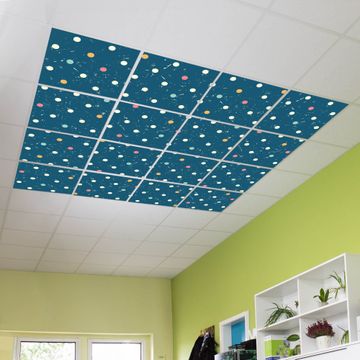 Entdecken Sie unsere vielseitigen Lichtdecken, hier in der Größe 248 x 248cm mit dem Motiv Motiv Punkte auf Blau - Ihre Beleuchtungslösung für jede Umgebung Beleuchten Sie Ihren Raum nicht nur, sondern schaffen Sie Atmosphäre! Die banjado Lichtdecke verwandelt jeden Ort, ob zu Hause, in Praxen, Büros oder Studios in eine Wohlfühloase. Unsere einzelnen Elemente haben eine genormte Einheitsgröße von 62 x 62cm und können somit in jede gängige Rasterdecken verbaut werden. So finden Sie Ihre passende Ausführung: Gern helfen wir Ihnen, die passende Ausführung zu wählen. Hierfür muss die aktuelle Gegebenheit Ihrer Decke oder Wand beachtet werden. Haben Sie bereits eine Rasterdecke (auch Odenwalddecke genannt)? Hier bestellen Sie lediglich das Motiv + Beleuchtungspanel, denn beides wird in die bereits vorhandene Decke eingelegt. Haben Sie eine glatte Decke mit Lichtauslass oder möchten die Lichtdecke an der Wand befestigen? Hier bestellen Sie bitte Motiv + Beleuchtungspanel + Deckenbefestigung, eine Aufbauanleitung liegt immer bei. Die Lichtdecke kann sowohl an der Decke als auch an der Wand montiert werden, perfekt für kreative Lichtakzente oder alternative Beleuchtungslösungen. Haben Sie bereits eine Lichtdecke und möchten nur das Motiv wechseln? Hier bestellen Sie bitte nur Motiv, der Wechsel ist denkbar einfach. Der Aufbau Ihrer banjado Lichtdecke gestaltet sich unkompliziert, dank einer verständlichen Anleitung, die Ihnen Schritt für Schritt durch den Montageprozess hilft. Für die endgültige Installation und den sicheren Anschluss empfehlen wir die Hinzuziehung eines Fachmanns, um die optimale Funktion und Sicherheit Ihrer Beleuchtung zu gewährleisten. Falls Sie einen Fachmann für die Installation benötigen, geben Sie uns gern Bescheid, wir vermitteln Ihnen gern einen geeigneten Ansprechpartner aus Ihrer Nähe. Steuerung: Steigern Sie Ihr Beleuchtungserlebnis mit der nahtlosen Integration in Ihr Smart Home. Durch die Kompatibilität mit der SmartLife App, Alexa und Google Assistant wird Ihr Smartphone zur zentralen Steuerungseinheit. Ihr Handy fungiert hierbei sozusagen als Fernbedienung. Legen Sie individuelle Lichtszenen in der App fest, die bei Aktivierung über den Wand-Ein-/Ausschalter immer wieder abgerufen werden können ohne Handy. Mit der Szenenfunktion in der Smart App können Sie die Beleuchtung personalisieren und steuern, sodass sie auf Ihre individuellen Bedürfnisse, Tagesrhythmus und Stimmung zugeschnitten ist. Beispielsweise können Sie sich in der Morgendämmerung durch ein sanftes Licht wecken lassen oder das Licht der Praxis werktags um 7 Uhr automatisch einschalten lassen. Dieses kann dann natürlich auch zu einer bestimmten Zeit automatisch ausgeschaltet werden. Motivwahl: Diese einzigartige Lichtdecke zeichnet sich durch ihre Fähigkeit aus, die Lichtfarbe je nach gewähltem Motiv anzupassen - ein Baum wirft ein sanftes grünes Licht, während eine Wolkendecke Ihren Raum in ein beruhigendes blaues Leuchten hüllt. Berücksichtigen Sie dies bitte bei Ihrer Motivauswahl. Sie können das Motiv jederzeit ohne großen Aufwand austauschen, ob nach Jahreszeit oder anderem Anlass, unsere Auswahl lässt kaum Wünsche offen. Wir fertigen Ihnen gern eine personalisierte Lichtdecke mit einem eigenen Motiv oder Logo oder Foto, schreiben Sie uns jederzeit an. Technische Daten: Das Motiv ist auf einer 4mm starken Acrylglas Scheibe aufgebracht, das Gesamtgewicht Ihrer Ausführung beträgt 70,9kg. Die Farbtemperatur lässt sich frei einstellen von 3000 bis 6000 Kelvin, damit können Sie stufenlos zwischen warmweiß, neutralweiß und kaltweiß wählen. Die Gesamtleistung bei Ihrer gewählten Ausführung beträgt 640W. Der Lichtstrom beträgt 3600 Lumen, die Nennspannung 230 V. Die Lichtdecke ist mit Schutzart IP20 für den Innenbereich konzipiert und sollte nicht im Nassbereich verwendet werden.