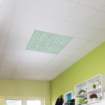 Entdecken Sie unsere vielseitigen Lichtdecken, hier in der Größe 124 x 124cm mit dem Motiv Motiv Punkte Lindgrün - Ihre Beleuchtungslösung für jede Umgebung Beleuchten Sie Ihren Raum nicht nur, sondern schaffen Sie Atmosphäre! Die banjado Lichtdecke verwandelt jeden Ort, ob zu Hause, in Praxen, Büros oder Studios in eine Wohlfühloase. Unsere einzelnen Elemente haben eine genormte Einheitsgröße von 62 x 62cm und können somit in jede gängige Rasterdecken verbaut werden. So finden Sie Ihre passende Ausführung: Gern helfen wir Ihnen, die passende Ausführung zu wählen. Hierfür muss die aktuelle Gegebenheit Ihrer Decke oder Wand beachtet werden. Haben Sie bereits eine Rasterdecke (auch Odenwalddecke genannt)? Hier bestellen Sie lediglich das Motiv + Beleuchtungspanel, denn beides wird in die bereits vorhandene Decke eingelegt. Haben Sie eine glatte Decke mit Lichtauslass oder möchten die Lichtdecke an der Wand befestigen? Hier bestellen Sie bitte Motiv + Beleuchtungspanel + Deckenbefestigung, eine Aufbauanleitung liegt immer bei. Die Lichtdecke kann sowohl an der Decke als auch an der Wand montiert werden, perfekt für kreative Lichtakzente oder alternative Beleuchtungslösungen. Haben Sie bereits eine Lichtdecke und möchten nur das Motiv wechseln? Hier bestellen Sie bitte nur Motiv, der Wechsel ist denkbar einfach. Der Aufbau Ihrer banjado Lichtdecke gestaltet sich unkompliziert, dank einer verständlichen Anleitung, die Ihnen Schritt für Schritt durch den Montageprozess hilft. Für die endgültige Installation und den sicheren Anschluss empfehlen wir die Hinzuziehung eines Fachmanns, um die optimale Funktion und Sicherheit Ihrer Beleuchtung zu gewährleisten. Falls Sie einen Fachmann für die Installation benötigen, geben Sie uns gern Bescheid, wir vermitteln Ihnen gern einen geeigneten Ansprechpartner aus Ihrer Nähe. Steuerung: Steigern Sie Ihr Beleuchtungserlebnis mit der nahtlosen Integration in Ihr Smart Home. Durch die Kompatibilität mit der SmartLife App, Alexa und Google Assistant wird Ihr Smartphone zur zentralen Steuerungseinheit. Ihr Handy fungiert hierbei sozusagen als Fernbedienung. Legen Sie individuelle Lichtszenen in der App fest, die bei Aktivierung über den Wand-Ein-/Ausschalter immer wieder abgerufen werden können ohne Handy. Mit der Szenenfunktion in der Smart App können Sie die Beleuchtung personalisieren und steuern, sodass sie auf Ihre individuellen Bedürfnisse, Tagesrhythmus und Stimmung zugeschnitten ist. Beispielsweise können Sie sich in der Morgendämmerung durch ein sanftes Licht wecken lassen oder das Licht der Praxis werktags um 7 Uhr automatisch einschalten lassen. Dieses kann dann natürlich auch zu einer bestimmten Zeit automatisch ausgeschaltet werden. Motivwahl: Diese einzigartige Lichtdecke zeichnet sich durch ihre Fähigkeit aus, die Lichtfarbe je nach gewähltem Motiv anzupassen - ein Baum wirft ein sanftes grünes Licht, während eine Wolkendecke Ihren Raum in ein beruhigendes blaues Leuchten hüllt. Berücksichtigen Sie dies bitte bei Ihrer Motivauswahl. Sie können das Motiv jederzeit ohne großen Aufwand austauschen, ob nach Jahreszeit oder anderem Anlass, unsere Auswahl lässt kaum Wünsche offen. Wir fertigen Ihnen gern eine personalisierte Lichtdecke mit einem eigenen Motiv oder Logo oder Foto, schreiben Sie uns jederzeit an. Technische Daten: Das Motiv ist auf einer 4mm starken Acrylglas Scheibe aufgebracht, das Gesamtgewicht Ihrer Ausführung beträgt 17,7kg. Die Farbtemperatur lässt sich frei einstellen von 3000 bis 6000 Kelvin, damit können Sie stufenlos zwischen warmweiß, neutralweiß und kaltweiß wählen. Die Gesamtleistung bei Ihrer gewählten Ausführung beträgt 160W. Der Lichtstrom beträgt 3600 Lumen, die Nennspannung 230 V. Die Lichtdecke ist mit Schutzart IP20 für den Innenbereich konzipiert und sollte nicht im Nassbereich verwendet werden.