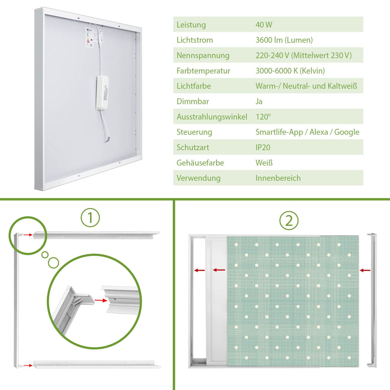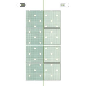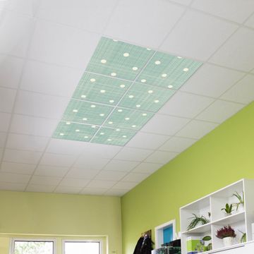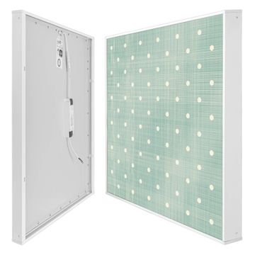 Entdecken Sie unsere vielseitigen Lichtdecken, hier in der Größe 124 x 248cm mit dem Motiv Motiv Punkte Lindgrün - Ihre Beleuchtungslösung für jede Umgebung Beleuchten Sie Ihren Raum nicht nur, sondern schaffen Sie Atmosphäre! Die banjado Lichtdecke verwandelt jeden Ort, ob zu Hause, in Praxen, Büros oder Studios in eine Wohlfühloase. Unsere einzelnen Elemente haben eine genormte Einheitsgröße von 62 x 62cm und können somit in jede gängige Rasterdecken verbaut werden. So finden Sie Ihre passende Ausführung: Gern helfen wir Ihnen, die passende Ausführung zu wählen. Hierfür muss die aktuelle Gegebenheit Ihrer Decke oder Wand beachtet werden. Haben Sie bereits eine Rasterdecke (auch Odenwalddecke genannt)? Hier bestellen Sie lediglich das Motiv + Beleuchtungspanel, denn beides wird in die bereits vorhandene Decke eingelegt. Haben Sie eine glatte Decke mit Lichtauslass oder möchten die Lichtdecke an der Wand befestigen? Hier bestellen Sie bitte Motiv + Beleuchtungspanel + Deckenbefestigung, eine Aufbauanleitung liegt immer bei. Die Lichtdecke kann sowohl an der Decke als auch an der Wand montiert werden, perfekt für kreative Lichtakzente oder alternative Beleuchtungslösungen. Haben Sie bereits eine Lichtdecke und möchten nur das Motiv wechseln? Hier bestellen Sie bitte nur Motiv, der Wechsel ist denkbar einfach. Der Aufbau Ihrer banjado Lichtdecke gestaltet sich unkompliziert, dank einer verständlichen Anleitung, die Ihnen Schritt für Schritt durch den Montageprozess hilft. Für die endgültige Installation und den sicheren Anschluss empfehlen wir die Hinzuziehung eines Fachmanns, um die optimale Funktion und Sicherheit Ihrer Beleuchtung zu gewährleisten. Falls Sie einen Fachmann für die Installation benötigen, geben Sie uns gern Bescheid, wir vermitteln Ihnen gern einen geeigneten Ansprechpartner aus Ihrer Nähe. Steuerung: Steigern Sie Ihr Beleuchtungserlebnis mit der nahtlosen Integration in Ihr Smart Home. Durch die Kompatibilität mit der SmartLife App, Alexa und Google Assistant wird Ihr Smartphone zur zentralen Steuerungseinheit. Ihr Handy fungiert hierbei sozusagen als Fernbedienung. Legen Sie individuelle Lichtszenen in der App fest, die bei Aktivierung über den Wand-Ein-/Ausschalter immer wieder abgerufen werden können ohne Handy. Mit der Szenenfunktion in der Smart App können Sie die Beleuchtung personalisieren und steuern, sodass sie auf Ihre individuellen Bedürfnisse, Tagesrhythmus und Stimmung zugeschnitten ist. Beispielsweise können Sie sich in der Morgendämmerung durch ein sanftes Licht wecken lassen oder das Licht der Praxis werktags um 7 Uhr automatisch einschalten lassen. Dieses kann dann natürlich auch zu einer bestimmten Zeit automatisch ausgeschaltet werden. Motivwahl: Diese einzigartige Lichtdecke zeichnet sich durch ihre Fähigkeit aus, die Lichtfarbe je nach gewähltem Motiv anzupassen - ein Baum wirft ein sanftes grünes Licht, während eine Wolkendecke Ihren Raum in ein beruhigendes blaues Leuchten hüllt. Berücksichtigen Sie dies bitte bei Ihrer Motivauswahl. Sie können das Motiv jederzeit ohne großen Aufwand austauschen, ob nach Jahreszeit oder anderem Anlass, unsere Auswahl lässt kaum Wünsche offen. Wir fertigen Ihnen gern eine personalisierte Lichtdecke mit einem eigenen Motiv oder Logo oder Foto, schreiben Sie uns jederzeit an. Technische Daten: Das Motiv ist auf einer 4mm starken Acrylglas Scheibe aufgebracht, das Gesamtgewicht Ihrer Ausführung beträgt 35,4kg. Die Farbtemperatur lässt sich frei einstellen von 3000 bis 6000 Kelvin, damit können Sie stufenlos zwischen warmweiß, neutralweiß und kaltweiß wählen. Die Gesamtleistung bei Ihrer gewählten Ausführung beträgt 320W. Der Lichtstrom beträgt 3600 Lumen, die Nennspannung 230 V. Die Lichtdecke ist mit Schutzart IP20 für den Innenbereich konzipiert und sollte nicht im Nassbereich verwendet werden.