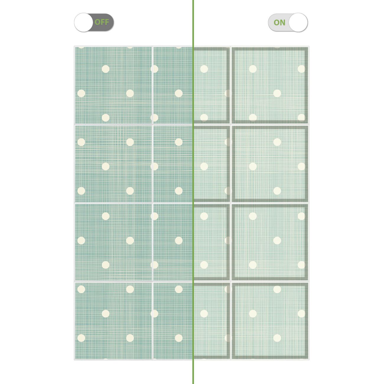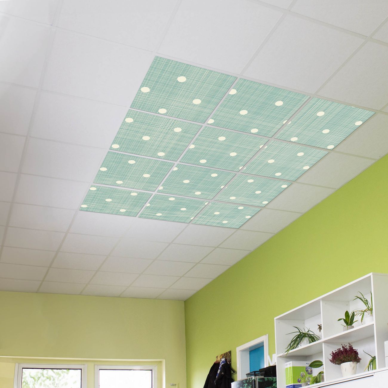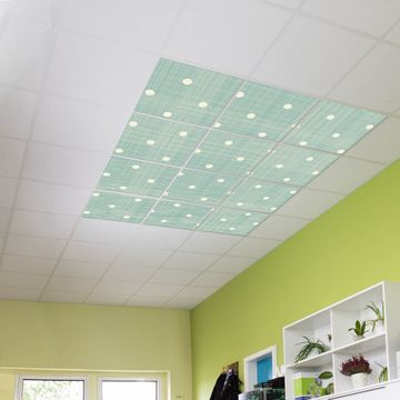 Entdecken Sie unsere vielseitigen Lichtdecken, hier in der Größe 186 x 248cm mit dem Motiv Motiv Punkte Lindgrün - Ihre Beleuchtungslösung für jede Umgebung Beleuchten Sie Ihren Raum nicht nur, sondern schaffen Sie Atmosphäre! Die banjado Lichtdecke verwandelt jeden Ort, ob zu Hause, in Praxen, Büros oder Studios in eine Wohlfühloase. Unsere einzelnen Elemente haben eine genormte Einheitsgröße von 62 x 62cm und können somit in jede gängige Rasterdecken verbaut werden. So finden Sie Ihre passende Ausführung: Gern helfen wir Ihnen, die passende Ausführung zu wählen. Hierfür muss die aktuelle Gegebenheit Ihrer Decke oder Wand beachtet werden. Haben Sie bereits eine Rasterdecke (auch Odenwalddecke genannt)? Hier bestellen Sie lediglich das Motiv + Beleuchtungspanel, denn beides wird in die bereits vorhandene Decke eingelegt. Haben Sie eine glatte Decke mit Lichtauslass oder möchten die Lichtdecke an der Wand befestigen? Hier bestellen Sie bitte Motiv + Beleuchtungspanel + Deckenbefestigung, eine Aufbauanleitung liegt immer bei. Die Lichtdecke kann sowohl an der Decke als auch an der Wand montiert werden, perfekt für kreative Lichtakzente oder alternative Beleuchtungslösungen. Haben Sie bereits eine Lichtdecke und möchten nur das Motiv wechseln? Hier bestellen Sie bitte nur Motiv, der Wechsel ist denkbar einfach. Der Aufbau Ihrer banjado Lichtdecke gestaltet sich unkompliziert, dank einer verständlichen Anleitung, die Ihnen Schritt für Schritt durch den Montageprozess hilft. Für die endgültige Installation und den sicheren Anschluss empfehlen wir die Hinzuziehung eines Fachmanns, um die optimale Funktion und Sicherheit Ihrer Beleuchtung zu gewährleisten. Falls Sie einen Fachmann für die Installation benötigen, geben Sie uns gern Bescheid, wir vermitteln Ihnen gern einen geeigneten Ansprechpartner aus Ihrer Nähe. Steuerung: Steigern Sie Ihr Beleuchtungserlebnis mit der nahtlosen Integration in Ihr Smart Home. Durch die Kompatibilität mit der SmartLife App, Alexa und Google Assistant wird Ihr Smartphone zur zentralen Steuerungseinheit. Ihr Handy fungiert hierbei sozusagen als Fernbedienung. Legen Sie individuelle Lichtszenen in der App fest, die bei Aktivierung über den Wand-Ein-/Ausschalter immer wieder abgerufen werden können ohne Handy. Mit der Szenenfunktion in der Smart App können Sie die Beleuchtung personalisieren und steuern, sodass sie auf Ihre individuellen Bedürfnisse, Tagesrhythmus und Stimmung zugeschnitten ist. Beispielsweise können Sie sich in der Morgendämmerung durch ein sanftes Licht wecken lassen oder das Licht der Praxis werktags um 7 Uhr automatisch einschalten lassen. Dieses kann dann natürlich auch zu einer bestimmten Zeit automatisch ausgeschaltet werden. Motivwahl: Diese einzigartige Lichtdecke zeichnet sich durch ihre Fähigkeit aus, die Lichtfarbe je nach gewähltem Motiv anzupassen - ein Baum wirft ein sanftes grünes Licht, während eine Wolkendecke Ihren Raum in ein beruhigendes blaues Leuchten hüllt. Berücksichtigen Sie dies bitte bei Ihrer Motivauswahl. Sie können das Motiv jederzeit ohne großen Aufwand austauschen, ob nach Jahreszeit oder anderem Anlass, unsere Auswahl lässt kaum Wünsche offen. Wir fertigen Ihnen gern eine personalisierte Lichtdecke mit einem eigenen Motiv oder Logo oder Foto, schreiben Sie uns jederzeit an. Technische Daten: Das Motiv ist auf einer 4mm starken Acrylglas Scheibe aufgebracht, das Gesamtgewicht Ihrer Ausführung beträgt 53,1kg. Die Farbtemperatur lässt sich frei einstellen von 3000 bis 6000 Kelvin, damit können Sie stufenlos zwischen warmweiß, neutralweiß und kaltweiß wählen. Die Gesamtleistung bei Ihrer gewählten Ausführung beträgt 480W. Der Lichtstrom beträgt 3600 Lumen, die Nennspannung 230 V. Die Lichtdecke ist mit Schutzart IP20 für den Innenbereich konzipiert und sollte nicht im Nassbereich verwendet werden.