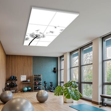 Entdecken Sie unsere vielseitigen Lichtdecken, hier in der Größe 124 x 248cm mit dem Motiv Motiv Pusteblume 2 - Ihre Beleuchtungslösung für jede Umgebung Beleuchten Sie Ihren Raum nicht nur, sondern schaffen Sie Atmosphäre! Die banjado Lichtdecke verwandelt jeden Ort, ob zu Hause, in Praxen, Büros oder Studios in eine Wohlfühloase. Unsere einzelnen Elemente haben eine genormte Einheitsgröße von 62 x 62cm und können somit in jede gängige Rasterdecken verbaut werden. So finden Sie Ihre passende Ausführung: Gern helfen wir Ihnen, die passende Ausführung zu wählen. Hierfür muss die aktuelle Gegebenheit Ihrer Decke oder Wand beachtet werden. Haben Sie bereits eine Rasterdecke (auch Odenwalddecke genannt)? Hier bestellen Sie lediglich das Motiv + Beleuchtungspanel, denn beides wird in die bereits vorhandene Decke eingelegt. Haben Sie eine glatte Decke mit Lichtauslass oder möchten die Lichtdecke an der Wand befestigen? Hier bestellen Sie bitte Motiv + Beleuchtungspanel + Deckenbefestigung, eine Aufbauanleitung liegt immer bei. Die Lichtdecke kann sowohl an der Decke als auch an der Wand montiert werden, perfekt für kreative Lichtakzente oder alternative Beleuchtungslösungen. Haben Sie bereits eine Lichtdecke und möchten nur das Motiv wechseln? Hier bestellen Sie bitte nur Motiv, der Wechsel ist denkbar einfach. Der Aufbau Ihrer banjado Lichtdecke gestaltet sich unkompliziert, dank einer verständlichen Anleitung, die Ihnen Schritt für Schritt durch den Montageprozess hilft. Für die endgültige Installation und den sicheren Anschluss empfehlen wir die Hinzuziehung eines Fachmanns, um die optimale Funktion und Sicherheit Ihrer Beleuchtung zu gewährleisten. Falls Sie einen Fachmann für die Installation benötigen, geben Sie uns gern Bescheid, wir vermitteln Ihnen gern einen geeigneten Ansprechpartner aus Ihrer Nähe. Steuerung: Steigern Sie Ihr Beleuchtungserlebnis mit der nahtlosen Integration in Ihr Smart Home. Durch die Kompatibilität mit der SmartLife App, Alexa und Google Assistant wird Ihr Smartphone zur zentralen Steuerungseinheit. Ihr Handy fungiert hierbei sozusagen als Fernbedienung. Legen Sie individuelle Lichtszenen in der App fest, die bei Aktivierung über den Wand-Ein-/Ausschalter immer wieder abgerufen werden können ohne Handy. Mit der Szenenfunktion in der Smart App können Sie die Beleuchtung personalisieren und steuern, sodass sie auf Ihre individuellen Bedürfnisse, Tagesrhythmus und Stimmung zugeschnitten ist. Beispielsweise können Sie sich in der Morgendämmerung durch ein sanftes Licht wecken lassen oder das Licht der Praxis werktags um 7 Uhr automatisch einschalten lassen. Dieses kann dann natürlich auch zu einer bestimmten Zeit automatisch ausgeschaltet werden. Motivwahl: Diese einzigartige Lichtdecke zeichnet sich durch ihre Fähigkeit aus, die Lichtfarbe je nach gewähltem Motiv anzupassen - ein Baum wirft ein sanftes grünes Licht, während eine Wolkendecke Ihren Raum in ein beruhigendes blaues Leuchten hüllt. Berücksichtigen Sie dies bitte bei Ihrer Motivauswahl. Sie können das Motiv jederzeit ohne großen Aufwand austauschen, ob nach Jahreszeit oder anderem Anlass, unsere Auswahl lässt kaum Wünsche offen. Wir fertigen Ihnen gern eine personalisierte Lichtdecke mit einem eigenen Motiv oder Logo oder Foto, schreiben Sie uns jederzeit an. Technische Daten: Das Motiv ist auf einer 4mm starken Acrylglas Scheibe aufgebracht, das Gesamtgewicht Ihrer Ausführung beträgt 39,4kg. Die Farbtemperatur lässt sich frei einstellen von 3000 bis 6000 Kelvin, damit können Sie stufenlos zwischen warmweiß, neutralweiß und kaltweiß wählen. Die Gesamtleistung bei Ihrer gewählten Ausführung beträgt 320W. Der Lichtstrom beträgt 3600 Lumen, die Nennspannung 230 V. Die Lichtdecke ist mit Schutzart IP20 für den Innenbereich konzipiert und sollte nicht im Nassbereich verwendet werden.