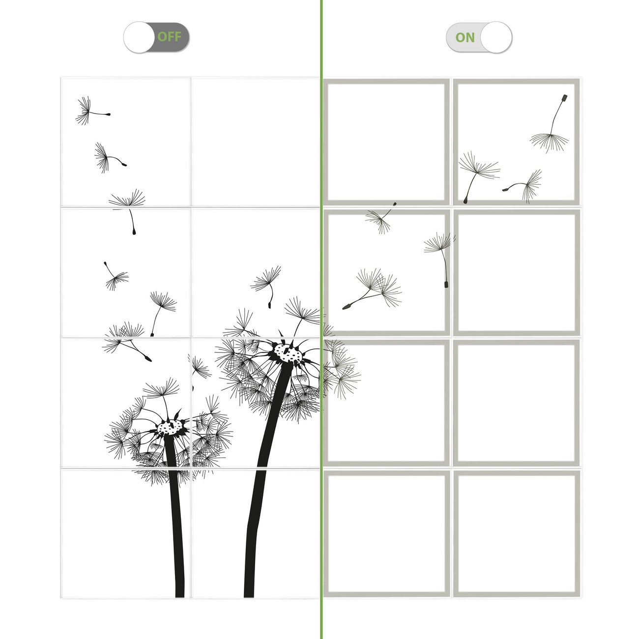 Entdecken Sie unsere vielseitigen Lichtdecken, hier in der Größe 248 x 248cm mit dem Motiv Motiv Pusteblume 2 - Ihre Beleuchtungslösung für jede Umgebung Beleuchten Sie Ihren Raum nicht nur, sondern schaffen Sie Atmosphäre! Die banjado Lichtdecke verwandelt jeden Ort, ob zu Hause, in Praxen, Büros oder Studios in eine Wohlfühloase. Unsere einzelnen Elemente haben eine genormte Einheitsgröße von 62 x 62cm und können somit in jede gängige Rasterdecken verbaut werden. So finden Sie Ihre passende Ausführung: Gern helfen wir Ihnen, die passende Ausführung zu wählen. Hierfür muss die aktuelle Gegebenheit Ihrer Decke oder Wand beachtet werden. Haben Sie bereits eine Rasterdecke (auch Odenwalddecke genannt)? Hier bestellen Sie lediglich das Motiv + Beleuchtungspanel, denn beides wird in die bereits vorhandene Decke eingelegt. Haben Sie eine glatte Decke mit Lichtauslass oder möchten die Lichtdecke an der Wand befestigen? Hier bestellen Sie bitte Motiv + Beleuchtungspanel + Deckenbefestigung, eine Aufbauanleitung liegt immer bei. Die Lichtdecke kann sowohl an der Decke als auch an der Wand montiert werden, perfekt für kreative Lichtakzente oder alternative Beleuchtungslösungen. Haben Sie bereits eine Lichtdecke und möchten nur das Motiv wechseln? Hier bestellen Sie bitte nur Motiv, der Wechsel ist denkbar einfach. Der Aufbau Ihrer banjado Lichtdecke gestaltet sich unkompliziert, dank einer verständlichen Anleitung, die Ihnen Schritt für Schritt durch den Montageprozess hilft. Für die endgültige Installation und den sicheren Anschluss empfehlen wir die Hinzuziehung eines Fachmanns, um die optimale Funktion und Sicherheit Ihrer Beleuchtung zu gewährleisten. Falls Sie einen Fachmann für die Installation benötigen, geben Sie uns gern Bescheid, wir vermitteln Ihnen gern einen geeigneten Ansprechpartner aus Ihrer Nähe. Steuerung: Steigern Sie Ihr Beleuchtungserlebnis mit der nahtlosen Integration in Ihr Smart Home. Durch die Kompatibilität mit der SmartLife App, Alexa und Google Assistant wird Ihr Smartphone zur zentralen Steuerungseinheit. Ihr Handy fungiert hierbei sozusagen als Fernbedienung. Legen Sie individuelle Lichtszenen in der App fest, die bei Aktivierung über den Wand-Ein-/Ausschalter immer wieder abgerufen werden können ohne Handy. Mit der Szenenfunktion in der Smart App können Sie die Beleuchtung personalisieren und steuern, sodass sie auf Ihre individuellen Bedürfnisse, Tagesrhythmus und Stimmung zugeschnitten ist. Beispielsweise können Sie sich in der Morgendämmerung durch ein sanftes Licht wecken lassen oder das Licht der Praxis werktags um 7 Uhr automatisch einschalten lassen. Dieses kann dann natürlich auch zu einer bestimmten Zeit automatisch ausgeschaltet werden. Motivwahl: Diese einzigartige Lichtdecke zeichnet sich durch ihre Fähigkeit aus, die Lichtfarbe je nach gewähltem Motiv anzupassen - ein Baum wirft ein sanftes grünes Licht, während eine Wolkendecke Ihren Raum in ein beruhigendes blaues Leuchten hüllt. Berücksichtigen Sie dies bitte bei Ihrer Motivauswahl. Sie können das Motiv jederzeit ohne großen Aufwand austauschen, ob nach Jahreszeit oder anderem Anlass, unsere Auswahl lässt kaum Wünsche offen. Wir fertigen Ihnen gern eine personalisierte Lichtdecke mit einem eigenen Motiv oder Logo oder Foto, schreiben Sie uns jederzeit an. Technische Daten: Das Motiv ist auf einer 4mm starken Acrylglas Scheibe aufgebracht, das Gesamtgewicht Ihrer Ausführung beträgt 36,2kg. Die Farbtemperatur lässt sich frei einstellen von 3000 bis 6000 Kelvin, damit können Sie stufenlos zwischen warmweiß, neutralweiß und kaltweiß wählen. Die Gesamtleistung bei Ihrer gewählten Ausführung beträgt 640W. Der Lichtstrom beträgt 3600 Lumen, die Nennspannung 230 V. Die Lichtdecke ist mit Schutzart IP20 für den Innenbereich konzipiert und sollte nicht im Nassbereich verwendet werden.