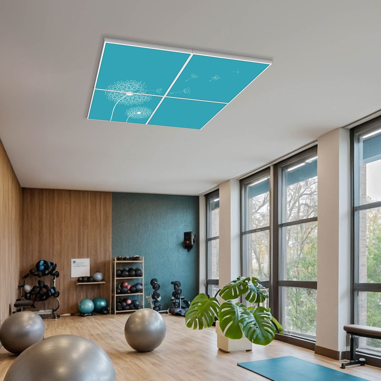 Entdecken Sie unsere vielseitigen Lichtdecken, hier in der Größe 124 x 124cm mit dem Motiv Motiv Pusteblume 4 - Ihre Beleuchtungslösung für jede Umgebung Beleuchten Sie Ihren Raum nicht nur, sondern schaffen Sie Atmosphäre! Die banjado Lichtdecke verwandelt jeden Ort, ob zu Hause, in Praxen, Büros oder Studios in eine Wohlfühloase. Unsere einzelnen Elemente haben eine genormte Einheitsgröße von 62 x 62cm und können somit in jede gängige Rasterdecken verbaut werden. So finden Sie Ihre passende Ausführung: Gern helfen wir Ihnen, die passende Ausführung zu wählen. Hierfür muss die aktuelle Gegebenheit Ihrer Decke oder Wand beachtet werden. Haben Sie bereits eine Rasterdecke (auch Odenwalddecke genannt)? Hier bestellen Sie lediglich das Motiv + Beleuchtungspanel, denn beides wird in die bereits vorhandene Decke eingelegt. Haben Sie eine glatte Decke mit Lichtauslass oder möchten die Lichtdecke an der Wand befestigen? Hier bestellen Sie bitte Motiv + Beleuchtungspanel + Deckenbefestigung, eine Aufbauanleitung liegt immer bei. Die Lichtdecke kann sowohl an der Decke als auch an der Wand montiert werden, perfekt für kreative Lichtakzente oder alternative Beleuchtungslösungen. Haben Sie bereits eine Lichtdecke und möchten nur das Motiv wechseln? Hier bestellen Sie bitte nur Motiv, der Wechsel ist denkbar einfach. Der Aufbau Ihrer banjado Lichtdecke gestaltet sich unkompliziert, dank einer verständlichen Anleitung, die Ihnen Schritt für Schritt durch den Montageprozess hilft. Für die endgültige Installation und den sicheren Anschluss empfehlen wir die Hinzuziehung eines Fachmanns, um die optimale Funktion und Sicherheit Ihrer Beleuchtung zu gewährleisten. Falls Sie einen Fachmann für die Installation benötigen, geben Sie uns gern Bescheid, wir vermitteln Ihnen gern einen geeigneten Ansprechpartner aus Ihrer Nähe. Steuerung: Steigern Sie Ihr Beleuchtungserlebnis mit der nahtlosen Integration in Ihr Smart Home. Durch die Kompatibilität mit der SmartLife App, Alexa und Google Assistant wird Ihr Smartphone zur zentralen Steuerungseinheit. Ihr Handy fungiert hierbei sozusagen als Fernbedienung. Legen Sie individuelle Lichtszenen in der App fest, die bei Aktivierung über den Wand-Ein-/Ausschalter immer wieder abgerufen werden können ohne Handy. Mit der Szenenfunktion in der Smart App können Sie die Beleuchtung personalisieren und steuern, sodass sie auf Ihre individuellen Bedürfnisse, Tagesrhythmus und Stimmung zugeschnitten ist. Beispielsweise können Sie sich in der Morgendämmerung durch ein sanftes Licht wecken lassen oder das Licht der Praxis werktags um 7 Uhr automatisch einschalten lassen. Dieses kann dann natürlich auch zu einer bestimmten Zeit automatisch ausgeschaltet werden. Motivwahl: Diese einzigartige Lichtdecke zeichnet sich durch ihre Fähigkeit aus, die Lichtfarbe je nach gewähltem Motiv anzupassen - ein Baum wirft ein sanftes grünes Licht, während eine Wolkendecke Ihren Raum in ein beruhigendes blaues Leuchten hüllt. Berücksichtigen Sie dies bitte bei Ihrer Motivauswahl. Sie können das Motiv jederzeit ohne großen Aufwand austauschen, ob nach Jahreszeit oder anderem Anlass, unsere Auswahl lässt kaum Wünsche offen. Wir fertigen Ihnen gern eine personalisierte Lichtdecke mit einem eigenen Motiv oder Logo oder Foto, schreiben Sie uns jederzeit an. Technische Daten: Das Motiv ist auf einer 4mm starken Acrylglas Scheibe aufgebracht, das Gesamtgewicht Ihrer Ausführung beträgt 19,7kg. Die Farbtemperatur lässt sich frei einstellen von 3000 bis 6000 Kelvin, damit können Sie stufenlos zwischen warmweiß, neutralweiß und kaltweiß wählen. Die Gesamtleistung bei Ihrer gewählten Ausführung beträgt 160W. Der Lichtstrom beträgt 3600 Lumen, die Nennspannung 230 V. Die Lichtdecke ist mit Schutzart IP20 für den Innenbereich konzipiert und sollte nicht im Nassbereich verwendet werden.