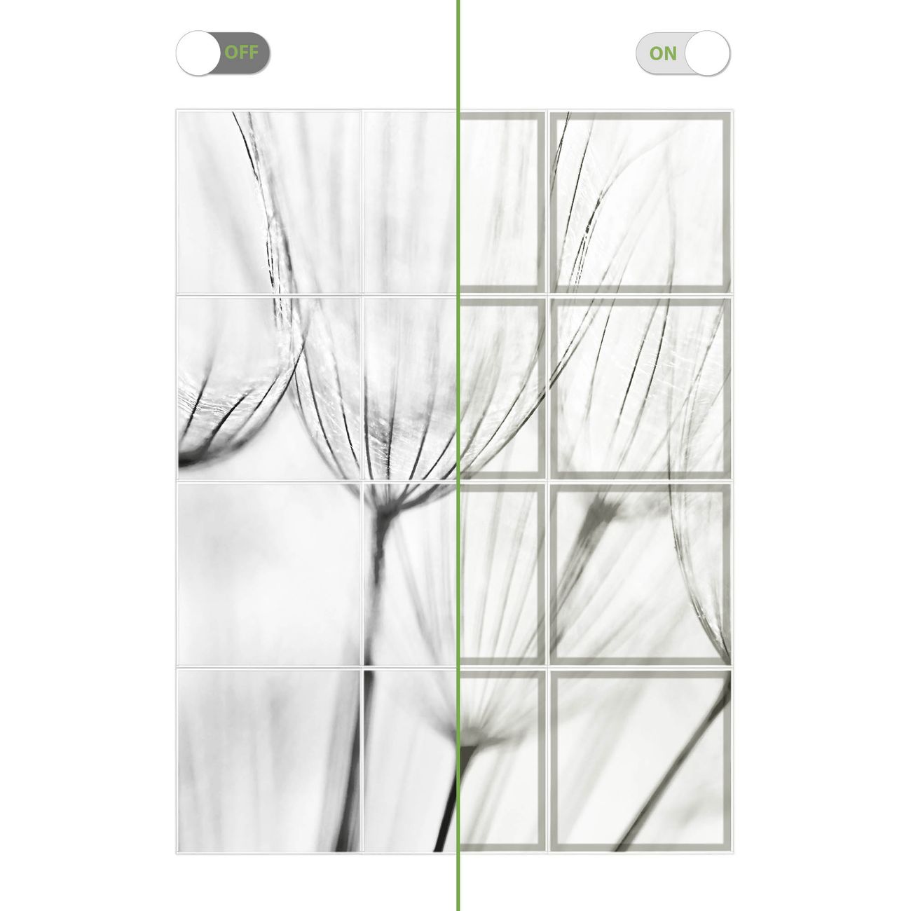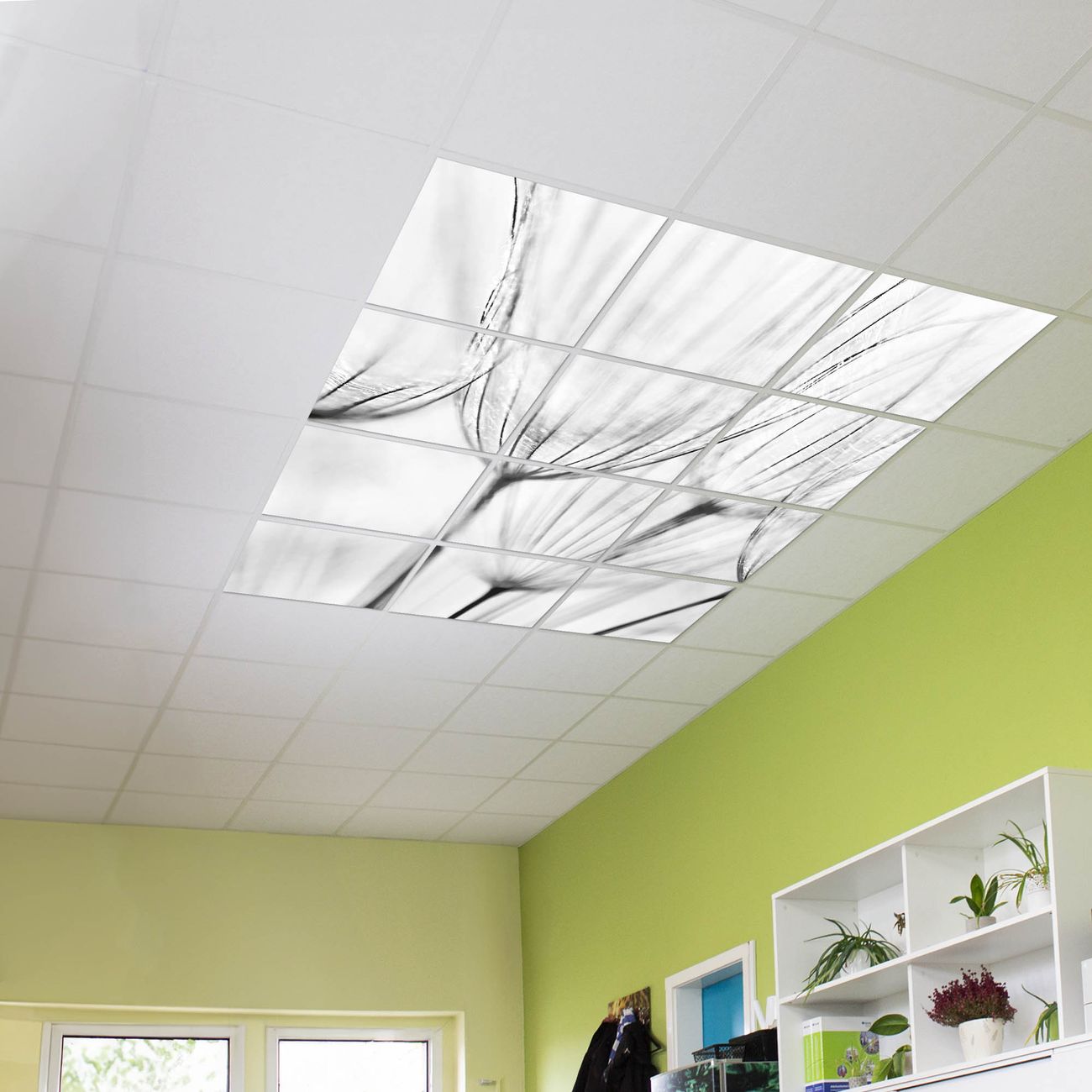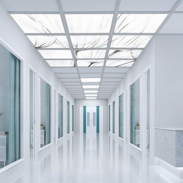 Entdecken Sie unsere vielseitigen Lichtdecken, hier in der Größe 186 x 248cm mit dem Motiv Motiv Pusteblumen SW - Ihre Beleuchtungslösung für jede Umgebung Beleuchten Sie Ihren Raum nicht nur, sondern schaffen Sie Atmosphäre! Die banjado Lichtdecke verwandelt jeden Ort, ob zu Hause, in Praxen, Büros oder Studios in eine Wohlfühloase. Unsere einzelnen Elemente haben eine genormte Einheitsgröße von 62 x 62cm und können somit in jede gängige Rasterdecken verbaut werden. So finden Sie Ihre passende Ausführung: Gern helfen wir Ihnen, die passende Ausführung zu wählen. Hierfür muss die aktuelle Gegebenheit Ihrer Decke oder Wand beachtet werden. Haben Sie bereits eine Rasterdecke (auch Odenwalddecke genannt)? Hier bestellen Sie lediglich das Motiv + Beleuchtungspanel, denn beides wird in die bereits vorhandene Decke eingelegt. Haben Sie eine glatte Decke mit Lichtauslass oder möchten die Lichtdecke an der Wand befestigen? Hier bestellen Sie bitte Motiv + Beleuchtungspanel + Deckenbefestigung, eine Aufbauanleitung liegt immer bei. Die Lichtdecke kann sowohl an der Decke als auch an der Wand montiert werden, perfekt für kreative Lichtakzente oder alternative Beleuchtungslösungen. Haben Sie bereits eine Lichtdecke und möchten nur das Motiv wechseln? Hier bestellen Sie bitte nur Motiv, der Wechsel ist denkbar einfach. Der Aufbau Ihrer banjado Lichtdecke gestaltet sich unkompliziert, dank einer verständlichen Anleitung, die Ihnen Schritt für Schritt durch den Montageprozess hilft. Für die endgültige Installation und den sicheren Anschluss empfehlen wir die Hinzuziehung eines Fachmanns, um die optimale Funktion und Sicherheit Ihrer Beleuchtung zu gewährleisten. Falls Sie einen Fachmann für die Installation benötigen, geben Sie uns gern Bescheid, wir vermitteln Ihnen gern einen geeigneten Ansprechpartner aus Ihrer Nähe. Steuerung: Steigern Sie Ihr Beleuchtungserlebnis mit der nahtlosen Integration in Ihr Smart Home. Durch die Kompatibilität mit der SmartLife App, Alexa und Google Assistant wird Ihr Smartphone zur zentralen Steuerungseinheit. Ihr Handy fungiert hierbei sozusagen als Fernbedienung. Legen Sie individuelle Lichtszenen in der App fest, die bei Aktivierung über den Wand-Ein-/Ausschalter immer wieder abgerufen werden können ohne Handy. Mit der Szenenfunktion in der Smart App können Sie die Beleuchtung personalisieren und steuern, sodass sie auf Ihre individuellen Bedürfnisse, Tagesrhythmus und Stimmung zugeschnitten ist. Beispielsweise können Sie sich in der Morgendämmerung durch ein sanftes Licht wecken lassen oder das Licht der Praxis werktags um 7 Uhr automatisch einschalten lassen. Dieses kann dann natürlich auch zu einer bestimmten Zeit automatisch ausgeschaltet werden. Motivwahl: Diese einzigartige Lichtdecke zeichnet sich durch ihre Fähigkeit aus, die Lichtfarbe je nach gewähltem Motiv anzupassen - ein Baum wirft ein sanftes grünes Licht, während eine Wolkendecke Ihren Raum in ein beruhigendes blaues Leuchten hüllt. Berücksichtigen Sie dies bitte bei Ihrer Motivauswahl. Sie können das Motiv jederzeit ohne großen Aufwand austauschen, ob nach Jahreszeit oder anderem Anlass, unsere Auswahl lässt kaum Wünsche offen. Wir fertigen Ihnen gern eine personalisierte Lichtdecke mit einem eigenen Motiv oder Logo oder Foto, schreiben Sie uns jederzeit an. Technische Daten: Das Motiv ist auf einer 4mm starken Acrylglas Scheibe aufgebracht, das Gesamtgewicht Ihrer Ausführung beträgt 27,1kg. Die Farbtemperatur lässt sich frei einstellen von 3000 bis 6000 Kelvin, damit können Sie stufenlos zwischen warmweiß, neutralweiß und kaltweiß wählen. Die Gesamtleistung bei Ihrer gewählten Ausführung beträgt 480W. Der Lichtstrom beträgt 3600 Lumen, die Nennspannung 230 V. Die Lichtdecke ist mit Schutzart IP20 für den Innenbereich konzipiert und sollte nicht im Nassbereich verwendet werden.