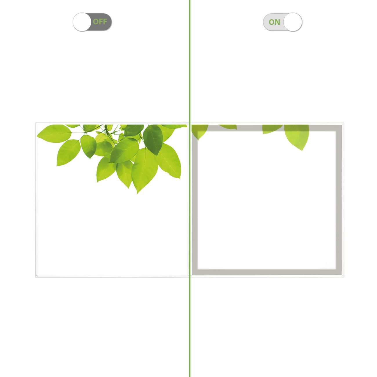Entdecken Sie unsere vielseitigen Lichtdecken, hier in der Größe 124 x 62cm mit dem Motiv Motiv Rahmen Blätter - Ihre Beleuchtungslösung für jede Umgebung Beleuchten Sie Ihren Raum nicht nur, sondern schaffen Sie Atmosphäre! Die banjado Lichtdecke verwandelt jeden Ort, ob zu Hause, in Praxen, Büros oder Studios in eine Wohlfühloase. Unsere einzelnen Elemente haben eine genormte Einheitsgröße von 62 x 62cm und können somit in jede gängige Rasterdecken verbaut werden. So finden Sie Ihre passende Ausführung: Gern helfen wir Ihnen, die passende Ausführung zu wählen. Hierfür muss die aktuelle Gegebenheit Ihrer Decke oder Wand beachtet werden. Haben Sie bereits eine Rasterdecke (auch Odenwalddecke genannt)? Hier bestellen Sie lediglich das Motiv + Beleuchtungspanel, denn beides wird in die bereits vorhandene Decke eingelegt. Haben Sie eine glatte Decke mit Lichtauslass oder möchten die Lichtdecke an der Wand befestigen? Hier bestellen Sie bitte Motiv + Beleuchtungspanel + Deckenbefestigung, eine Aufbauanleitung liegt immer bei. Die Lichtdecke kann sowohl an der Decke als auch an der Wand montiert werden, perfekt für kreative Lichtakzente oder alternative Beleuchtungslösungen. Haben Sie bereits eine Lichtdecke und möchten nur das Motiv wechseln? Hier bestellen Sie bitte nur Motiv, der Wechsel ist denkbar einfach. Der Aufbau Ihrer banjado Lichtdecke gestaltet sich unkompliziert, dank einer verständlichen Anleitung, die Ihnen Schritt für Schritt durch den Montageprozess hilft. Für die endgültige Installation und den sicheren Anschluss empfehlen wir die Hinzuziehung eines Fachmanns, um die optimale Funktion und Sicherheit Ihrer Beleuchtung zu gewährleisten. Falls Sie einen Fachmann für die Installation benötigen, geben Sie uns gern Bescheid, wir vermitteln Ihnen gern einen geeigneten Ansprechpartner aus Ihrer Nähe. Steuerung: Steigern Sie Ihr Beleuchtungserlebnis mit der nahtlosen Integration in Ihr Smart Home. Durch die Kompatibilität mit der SmartLife App, Alexa und Google Assistant wird Ihr Smartphone zur zentralen Steuerungseinheit. Ihr Handy fungiert hierbei sozusagen als Fernbedienung. Legen Sie individuelle Lichtszenen in der App fest, die bei Aktivierung über den Wand-Ein-/Ausschalter immer wieder abgerufen werden können ohne Handy. Mit der Szenenfunktion in der Smart App können Sie die Beleuchtung personalisieren und steuern, sodass sie auf Ihre individuellen Bedürfnisse, Tagesrhythmus und Stimmung zugeschnitten ist. Beispielsweise können Sie sich in der Morgendämmerung durch ein sanftes Licht wecken lassen oder das Licht der Praxis werktags um 7 Uhr automatisch einschalten lassen. Dieses kann dann natürlich auch zu einer bestimmten Zeit automatisch ausgeschaltet werden. Motivwahl: Diese einzigartige Lichtdecke zeichnet sich durch ihre Fähigkeit aus, die Lichtfarbe je nach gewähltem Motiv anzupassen - ein Baum wirft ein sanftes grünes Licht, während eine Wolkendecke Ihren Raum in ein beruhigendes blaues Leuchten hüllt. Berücksichtigen Sie dies bitte bei Ihrer Motivauswahl. Sie können das Motiv jederzeit ohne großen Aufwand austauschen, ob nach Jahreszeit oder anderem Anlass, unsere Auswahl lässt kaum Wünsche offen. Wir fertigen Ihnen gern eine personalisierte Lichtdecke mit einem eigenen Motiv oder Logo oder Foto, schreiben Sie uns jederzeit an. Technische Daten: Das Motiv ist auf einer 4mm starken Acrylglas Scheibe aufgebracht, das Gesamtgewicht Ihrer Ausführung beträgt 4,5kg. Die Farbtemperatur lässt sich frei einstellen von 3000 bis 6000 Kelvin, damit können Sie stufenlos zwischen warmweiß, neutralweiß und kaltweiß wählen. Die Gesamtleistung bei Ihrer gewählten Ausführung beträgt 80W. Der Lichtstrom beträgt 3600 Lumen, die Nennspannung 230 V. Die Lichtdecke ist mit Schutzart IP20 für den Innenbereich konzipiert und sollte nicht im Nassbereich verwendet werden.
