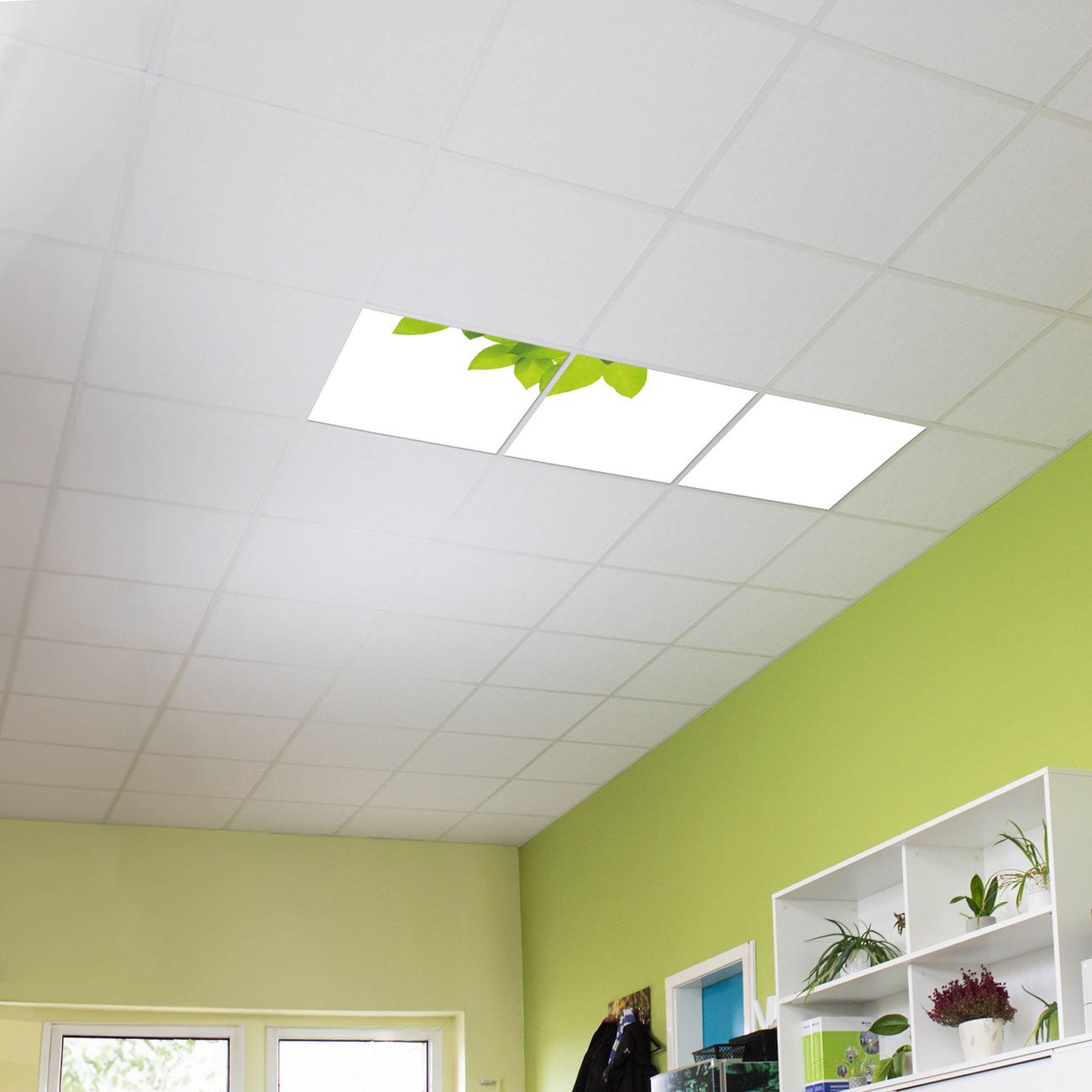 Entdecken Sie unsere vielseitigen Lichtdecken, hier in der Größe 186 x 62cm mit dem Motiv Motiv Rahmen Blätter - Ihre Beleuchtungslösung für jede Umgebung Beleuchten Sie Ihren Raum nicht nur, sondern schaffen Sie Atmosphäre! Die banjado Lichtdecke verwandelt jeden Ort, ob zu Hause, in Praxen, Büros oder Studios in eine Wohlfühloase. Unsere einzelnen Elemente haben eine genormte Einheitsgröße von 62 x 62cm und können somit in jede gängige Rasterdecken verbaut werden. So finden Sie Ihre passende Ausführung: Gern helfen wir Ihnen, die passende Ausführung zu wählen. Hierfür muss die aktuelle Gegebenheit Ihrer Decke oder Wand beachtet werden. Haben Sie bereits eine Rasterdecke (auch Odenwalddecke genannt)? Hier bestellen Sie lediglich das Motiv + Beleuchtungspanel, denn beides wird in die bereits vorhandene Decke eingelegt. Haben Sie eine glatte Decke mit Lichtauslass oder möchten die Lichtdecke an der Wand befestigen? Hier bestellen Sie bitte Motiv + Beleuchtungspanel + Deckenbefestigung, eine Aufbauanleitung liegt immer bei. Die Lichtdecke kann sowohl an der Decke als auch an der Wand montiert werden, perfekt für kreative Lichtakzente oder alternative Beleuchtungslösungen. Haben Sie bereits eine Lichtdecke und möchten nur das Motiv wechseln? Hier bestellen Sie bitte nur Motiv, der Wechsel ist denkbar einfach. Der Aufbau Ihrer banjado Lichtdecke gestaltet sich unkompliziert, dank einer verständlichen Anleitung, die Ihnen Schritt für Schritt durch den Montageprozess hilft. Für die endgültige Installation und den sicheren Anschluss empfehlen wir die Hinzuziehung eines Fachmanns, um die optimale Funktion und Sicherheit Ihrer Beleuchtung zu gewährleisten. Falls Sie einen Fachmann für die Installation benötigen, geben Sie uns gern Bescheid, wir vermitteln Ihnen gern einen geeigneten Ansprechpartner aus Ihrer Nähe. Steuerung: Steigern Sie Ihr Beleuchtungserlebnis mit der nahtlosen Integration in Ihr Smart Home. Durch die Kompatibilität mit der SmartLife App, Alexa und Google Assistant wird Ihr Smartphone zur zentralen Steuerungseinheit. Ihr Handy fungiert hierbei sozusagen als Fernbedienung. Legen Sie individuelle Lichtszenen in der App fest, die bei Aktivierung über den Wand-Ein-/Ausschalter immer wieder abgerufen werden können ohne Handy. Mit der Szenenfunktion in der Smart App können Sie die Beleuchtung personalisieren und steuern, sodass sie auf Ihre individuellen Bedürfnisse, Tagesrhythmus und Stimmung zugeschnitten ist. Beispielsweise können Sie sich in der Morgendämmerung durch ein sanftes Licht wecken lassen oder das Licht der Praxis werktags um 7 Uhr automatisch einschalten lassen. Dieses kann dann natürlich auch zu einer bestimmten Zeit automatisch ausgeschaltet werden. Motivwahl: Diese einzigartige Lichtdecke zeichnet sich durch ihre Fähigkeit aus, die Lichtfarbe je nach gewähltem Motiv anzupassen - ein Baum wirft ein sanftes grünes Licht, während eine Wolkendecke Ihren Raum in ein beruhigendes blaues Leuchten hüllt. Berücksichtigen Sie dies bitte bei Ihrer Motivauswahl. Sie können das Motiv jederzeit ohne großen Aufwand austauschen, ob nach Jahreszeit oder anderem Anlass, unsere Auswahl lässt kaum Wünsche offen. Wir fertigen Ihnen gern eine personalisierte Lichtdecke mit einem eigenen Motiv oder Logo oder Foto, schreiben Sie uns jederzeit an. Technische Daten: Das Motiv ist auf einer 4mm starken Acrylglas Scheibe aufgebracht, das Gesamtgewicht Ihrer Ausführung beträgt 6,8kg. Die Farbtemperatur lässt sich frei einstellen von 3000 bis 6000 Kelvin, damit können Sie stufenlos zwischen warmweiß, neutralweiß und kaltweiß wählen. Die Gesamtleistung bei Ihrer gewählten Ausführung beträgt 120W. Der Lichtstrom beträgt 3600 Lumen, die Nennspannung 230 V. Die Lichtdecke ist mit Schutzart IP20 für den Innenbereich konzipiert und sollte nicht im Nassbereich verwendet werden.