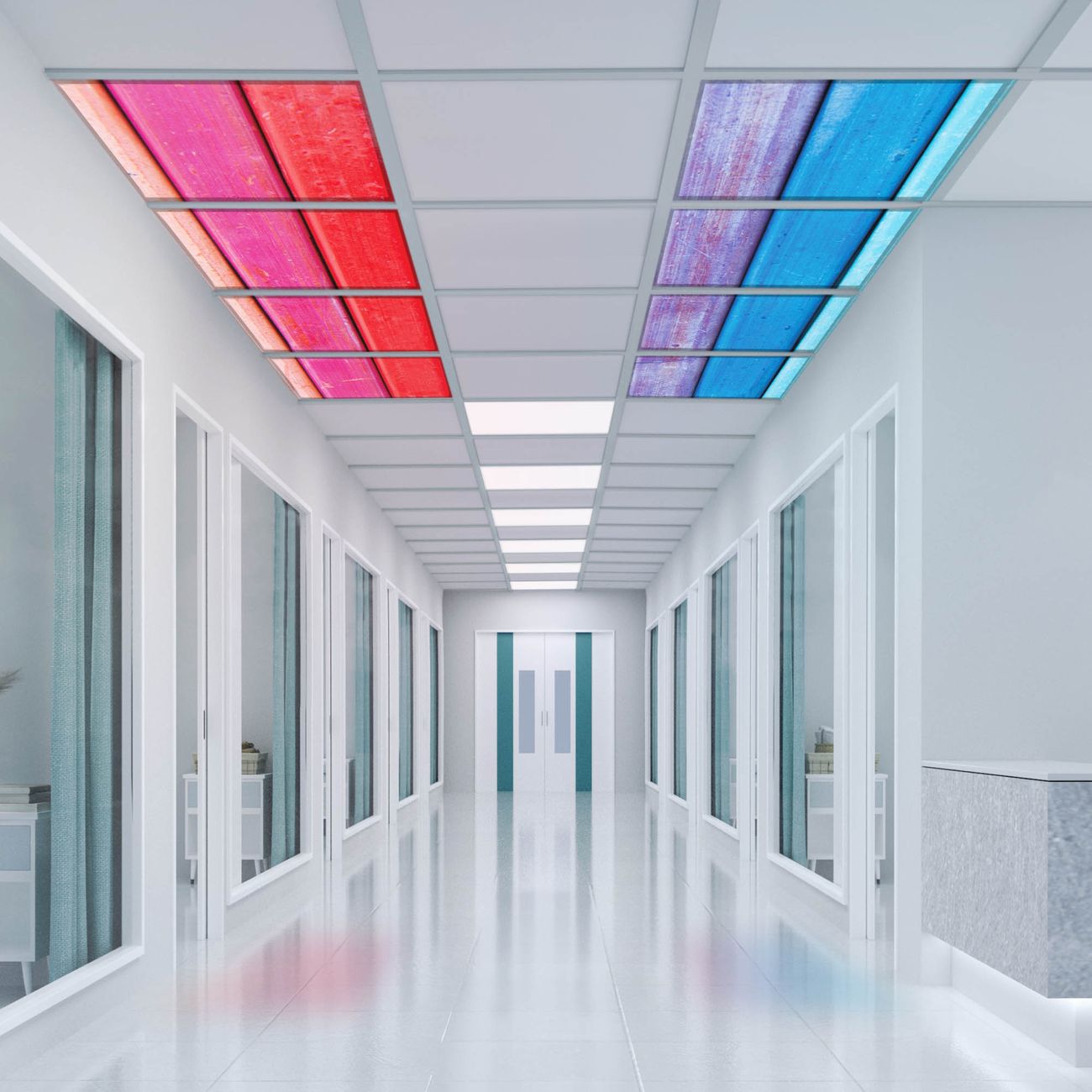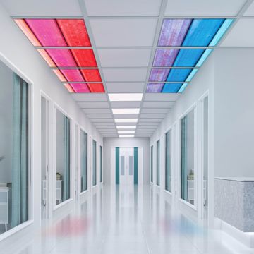 Entdecken Sie unsere vielseitigen Lichtdecken, hier in der Größe 124 x 248cm mit dem Motiv Motiv Regenbogenfarben - Ihre Beleuchtungslösung für jede Umgebung Beleuchten Sie Ihren Raum nicht nur, sondern schaffen Sie Atmosphäre! Die banjado Lichtdecke verwandelt jeden Ort, ob zu Hause, in Praxen, Büros oder Studios in eine Wohlfühloase. Unsere einzelnen Elemente haben eine genormte Einheitsgröße von 62 x 62cm und können somit in jede gängige Rasterdecken verbaut werden. So finden Sie Ihre passende Ausführung: Gern helfen wir Ihnen, die passende Ausführung zu wählen. Hierfür muss die aktuelle Gegebenheit Ihrer Decke oder Wand beachtet werden. Haben Sie bereits eine Rasterdecke (auch Odenwalddecke genannt)? Hier bestellen Sie lediglich das Motiv + Beleuchtungspanel, denn beides wird in die bereits vorhandene Decke eingelegt. Haben Sie eine glatte Decke mit Lichtauslass oder möchten die Lichtdecke an der Wand befestigen? Hier bestellen Sie bitte Motiv + Beleuchtungspanel + Deckenbefestigung, eine Aufbauanleitung liegt immer bei. Die Lichtdecke kann sowohl an der Decke als auch an der Wand montiert werden, perfekt für kreative Lichtakzente oder alternative Beleuchtungslösungen. Haben Sie bereits eine Lichtdecke und möchten nur das Motiv wechseln? Hier bestellen Sie bitte nur Motiv, der Wechsel ist denkbar einfach. Der Aufbau Ihrer banjado Lichtdecke gestaltet sich unkompliziert, dank einer verständlichen Anleitung, die Ihnen Schritt für Schritt durch den Montageprozess hilft. Für die endgültige Installation und den sicheren Anschluss empfehlen wir die Hinzuziehung eines Fachmanns, um die optimale Funktion und Sicherheit Ihrer Beleuchtung zu gewährleisten. Falls Sie einen Fachmann für die Installation benötigen, geben Sie uns gern Bescheid, wir vermitteln Ihnen gern einen geeigneten Ansprechpartner aus Ihrer Nähe. Steuerung: Steigern Sie Ihr Beleuchtungserlebnis mit der nahtlosen Integration in Ihr Smart Home. Durch die Kompatibilität mit der SmartLife App, Alexa und Google Assistant wird Ihr Smartphone zur zentralen Steuerungseinheit. Ihr Handy fungiert hierbei sozusagen als Fernbedienung. Legen Sie individuelle Lichtszenen in der App fest, die bei Aktivierung über den Wand-Ein-/Ausschalter immer wieder abgerufen werden können ohne Handy. Mit der Szenenfunktion in der Smart App können Sie die Beleuchtung personalisieren und steuern, sodass sie auf Ihre individuellen Bedürfnisse, Tagesrhythmus und Stimmung zugeschnitten ist. Beispielsweise können Sie sich in der Morgendämmerung durch ein sanftes Licht wecken lassen oder das Licht der Praxis werktags um 7 Uhr automatisch einschalten lassen. Dieses kann dann natürlich auch zu einer bestimmten Zeit automatisch ausgeschaltet werden. Motivwahl: Diese einzigartige Lichtdecke zeichnet sich durch ihre Fähigkeit aus, die Lichtfarbe je nach gewähltem Motiv anzupassen - ein Baum wirft ein sanftes grünes Licht, während eine Wolkendecke Ihren Raum in ein beruhigendes blaues Leuchten hüllt. Berücksichtigen Sie dies bitte bei Ihrer Motivauswahl. Sie können das Motiv jederzeit ohne großen Aufwand austauschen, ob nach Jahreszeit oder anderem Anlass, unsere Auswahl lässt kaum Wünsche offen. Wir fertigen Ihnen gern eine personalisierte Lichtdecke mit einem eigenen Motiv oder Logo oder Foto, schreiben Sie uns jederzeit an. Technische Daten: Das Motiv ist auf einer 4mm starken Acrylglas Scheibe aufgebracht, das Gesamtgewicht Ihrer Ausführung beträgt 35,4kg. Die Farbtemperatur lässt sich frei einstellen von 3000 bis 6000 Kelvin, damit können Sie stufenlos zwischen warmweiß, neutralweiß und kaltweiß wählen. Die Gesamtleistung bei Ihrer gewählten Ausführung beträgt 320W. Der Lichtstrom beträgt 3600 Lumen, die Nennspannung 230 V. Die Lichtdecke ist mit Schutzart IP20 für den Innenbereich konzipiert und sollte nicht im Nassbereich verwendet werden.