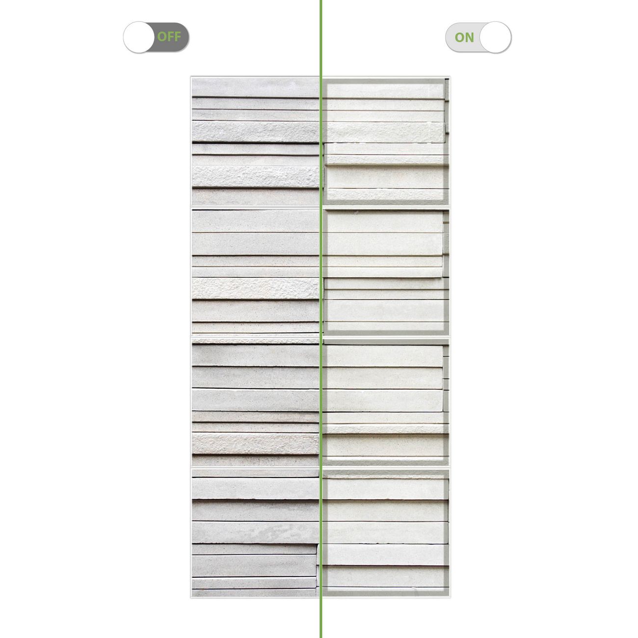 Entdecken Sie unsere vielseitigen Lichtdecken, hier in der Größe 124 x 248cm mit dem Motiv Motiv Relief - Ihre Beleuchtungslösung für jede Umgebung Beleuchten Sie Ihren Raum nicht nur, sondern schaffen Sie Atmosphäre! Die banjado Lichtdecke verwandelt jeden Ort, ob zu Hause, in Praxen, Büros oder Studios in eine Wohlfühloase. Unsere einzelnen Elemente haben eine genormte Einheitsgröße von 62 x 62cm und können somit in jede gängige Rasterdecken verbaut werden. So finden Sie Ihre passende Ausführung: Gern helfen wir Ihnen, die passende Ausführung zu wählen. Hierfür muss die aktuelle Gegebenheit Ihrer Decke oder Wand beachtet werden. Haben Sie bereits eine Rasterdecke (auch Odenwalddecke genannt)? Hier bestellen Sie lediglich das Motiv + Beleuchtungspanel, denn beides wird in die bereits vorhandene Decke eingelegt. Haben Sie eine glatte Decke mit Lichtauslass oder möchten die Lichtdecke an der Wand befestigen? Hier bestellen Sie bitte Motiv + Beleuchtungspanel + Deckenbefestigung, eine Aufbauanleitung liegt immer bei. Die Lichtdecke kann sowohl an der Decke als auch an der Wand montiert werden, perfekt für kreative Lichtakzente oder alternative Beleuchtungslösungen. Haben Sie bereits eine Lichtdecke und möchten nur das Motiv wechseln? Hier bestellen Sie bitte nur Motiv, der Wechsel ist denkbar einfach. Der Aufbau Ihrer banjado Lichtdecke gestaltet sich unkompliziert, dank einer verständlichen Anleitung, die Ihnen Schritt für Schritt durch den Montageprozess hilft. Für die endgültige Installation und den sicheren Anschluss empfehlen wir die Hinzuziehung eines Fachmanns, um die optimale Funktion und Sicherheit Ihrer Beleuchtung zu gewährleisten. Falls Sie einen Fachmann für die Installation benötigen, geben Sie uns gern Bescheid, wir vermitteln Ihnen gern einen geeigneten Ansprechpartner aus Ihrer Nähe. Steuerung: Steigern Sie Ihr Beleuchtungserlebnis mit der nahtlosen Integration in Ihr Smart Home. Durch die Kompatibilität mit der SmartLife App, Alexa und Google Assistant wird Ihr Smartphone zur zentralen Steuerungseinheit. Ihr Handy fungiert hierbei sozusagen als Fernbedienung. Legen Sie individuelle Lichtszenen in der App fest, die bei Aktivierung über den Wand-Ein-/Ausschalter immer wieder abgerufen werden können ohne Handy. Mit der Szenenfunktion in der Smart App können Sie die Beleuchtung personalisieren und steuern, sodass sie auf Ihre individuellen Bedürfnisse, Tagesrhythmus und Stimmung zugeschnitten ist. Beispielsweise können Sie sich in der Morgendämmerung durch ein sanftes Licht wecken lassen oder das Licht der Praxis werktags um 7 Uhr automatisch einschalten lassen. Dieses kann dann natürlich auch zu einer bestimmten Zeit automatisch ausgeschaltet werden. Motivwahl: Diese einzigartige Lichtdecke zeichnet sich durch ihre Fähigkeit aus, die Lichtfarbe je nach gewähltem Motiv anzupassen - ein Baum wirft ein sanftes grünes Licht, während eine Wolkendecke Ihren Raum in ein beruhigendes blaues Leuchten hüllt. Berücksichtigen Sie dies bitte bei Ihrer Motivauswahl. Sie können das Motiv jederzeit ohne großen Aufwand austauschen, ob nach Jahreszeit oder anderem Anlass, unsere Auswahl lässt kaum Wünsche offen. Wir fertigen Ihnen gern eine personalisierte Lichtdecke mit einem eigenen Motiv oder Logo oder Foto, schreiben Sie uns jederzeit an. Technische Daten: Das Motiv ist auf einer 4mm starken Acrylglas Scheibe aufgebracht, das Gesamtgewicht Ihrer Ausführung beträgt 18,1kg. Die Farbtemperatur lässt sich frei einstellen von 3000 bis 6000 Kelvin, damit können Sie stufenlos zwischen warmweiß, neutralweiß und kaltweiß wählen. Die Gesamtleistung bei Ihrer gewählten Ausführung beträgt 320W. Der Lichtstrom beträgt 3600 Lumen, die Nennspannung 230 V. Die Lichtdecke ist mit Schutzart IP20 für den Innenbereich konzipiert und sollte nicht im Nassbereich verwendet werden.