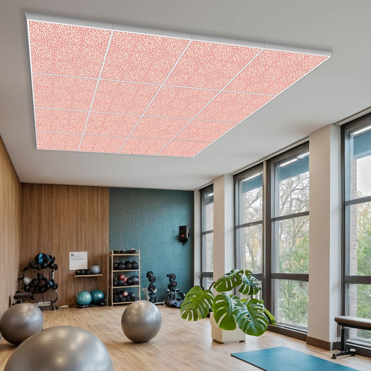 Entdecken Sie unsere vielseitigen Lichtdecken, hier in der Größe 248 x 248cm mit dem Motiv Motiv Rosa Arabesque - Ihre Beleuchtungslösung für jede Umgebung Beleuchten Sie Ihren Raum nicht nur, sondern schaffen Sie Atmosphäre! Die banjado Lichtdecke verwandelt jeden Ort, ob zu Hause, in Praxen, Büros oder Studios in eine Wohlfühloase. Unsere einzelnen Elemente haben eine genormte Einheitsgröße von 62 x 62cm und können somit in jede gängige Rasterdecken verbaut werden. So finden Sie Ihre passende Ausführung: Gern helfen wir Ihnen, die passende Ausführung zu wählen. Hierfür muss die aktuelle Gegebenheit Ihrer Decke oder Wand beachtet werden. Haben Sie bereits eine Rasterdecke (auch Odenwalddecke genannt)? Hier bestellen Sie lediglich das Motiv + Beleuchtungspanel, denn beides wird in die bereits vorhandene Decke eingelegt. Haben Sie eine glatte Decke mit Lichtauslass oder möchten die Lichtdecke an der Wand befestigen? Hier bestellen Sie bitte Motiv + Beleuchtungspanel + Deckenbefestigung, eine Aufbauanleitung liegt immer bei. Die Lichtdecke kann sowohl an der Decke als auch an der Wand montiert werden, perfekt für kreative Lichtakzente oder alternative Beleuchtungslösungen. Haben Sie bereits eine Lichtdecke und möchten nur das Motiv wechseln? Hier bestellen Sie bitte nur Motiv, der Wechsel ist denkbar einfach. Der Aufbau Ihrer banjado Lichtdecke gestaltet sich unkompliziert, dank einer verständlichen Anleitung, die Ihnen Schritt für Schritt durch den Montageprozess hilft. Für die endgültige Installation und den sicheren Anschluss empfehlen wir die Hinzuziehung eines Fachmanns, um die optimale Funktion und Sicherheit Ihrer Beleuchtung zu gewährleisten. Falls Sie einen Fachmann für die Installation benötigen, geben Sie uns gern Bescheid, wir vermitteln Ihnen gern einen geeigneten Ansprechpartner aus Ihrer Nähe. Steuerung: Steigern Sie Ihr Beleuchtungserlebnis mit der nahtlosen Integration in Ihr Smart Home. Durch die Kompatibilität mit der SmartLife App, Alexa und Google Assistant wird Ihr Smartphone zur zentralen Steuerungseinheit. Ihr Handy fungiert hierbei sozusagen als Fernbedienung. Legen Sie individuelle Lichtszenen in der App fest, die bei Aktivierung über den Wand-Ein-/Ausschalter immer wieder abgerufen werden können ohne Handy. Mit der Szenenfunktion in der Smart App können Sie die Beleuchtung personalisieren und steuern, sodass sie auf Ihre individuellen Bedürfnisse, Tagesrhythmus und Stimmung zugeschnitten ist. Beispielsweise können Sie sich in der Morgendämmerung durch ein sanftes Licht wecken lassen oder das Licht der Praxis werktags um 7 Uhr automatisch einschalten lassen. Dieses kann dann natürlich auch zu einer bestimmten Zeit automatisch ausgeschaltet werden. Motivwahl: Diese einzigartige Lichtdecke zeichnet sich durch ihre Fähigkeit aus, die Lichtfarbe je nach gewähltem Motiv anzupassen - ein Baum wirft ein sanftes grünes Licht, während eine Wolkendecke Ihren Raum in ein beruhigendes blaues Leuchten hüllt. Berücksichtigen Sie dies bitte bei Ihrer Motivauswahl. Sie können das Motiv jederzeit ohne großen Aufwand austauschen, ob nach Jahreszeit oder anderem Anlass, unsere Auswahl lässt kaum Wünsche offen. Wir fertigen Ihnen gern eine personalisierte Lichtdecke mit einem eigenen Motiv oder Logo oder Foto, schreiben Sie uns jederzeit an. Technische Daten: Das Motiv ist auf einer 4mm starken Acrylglas Scheibe aufgebracht, das Gesamtgewicht Ihrer Ausführung beträgt 78,9kg. Die Farbtemperatur lässt sich frei einstellen von 3000 bis 6000 Kelvin, damit können Sie stufenlos zwischen warmweiß, neutralweiß und kaltweiß wählen. Die Gesamtleistung bei Ihrer gewählten Ausführung beträgt 640W. Der Lichtstrom beträgt 3600 Lumen, die Nennspannung 230 V. Die Lichtdecke ist mit Schutzart IP20 für den Innenbereich konzipiert und sollte nicht im Nassbereich verwendet werden.