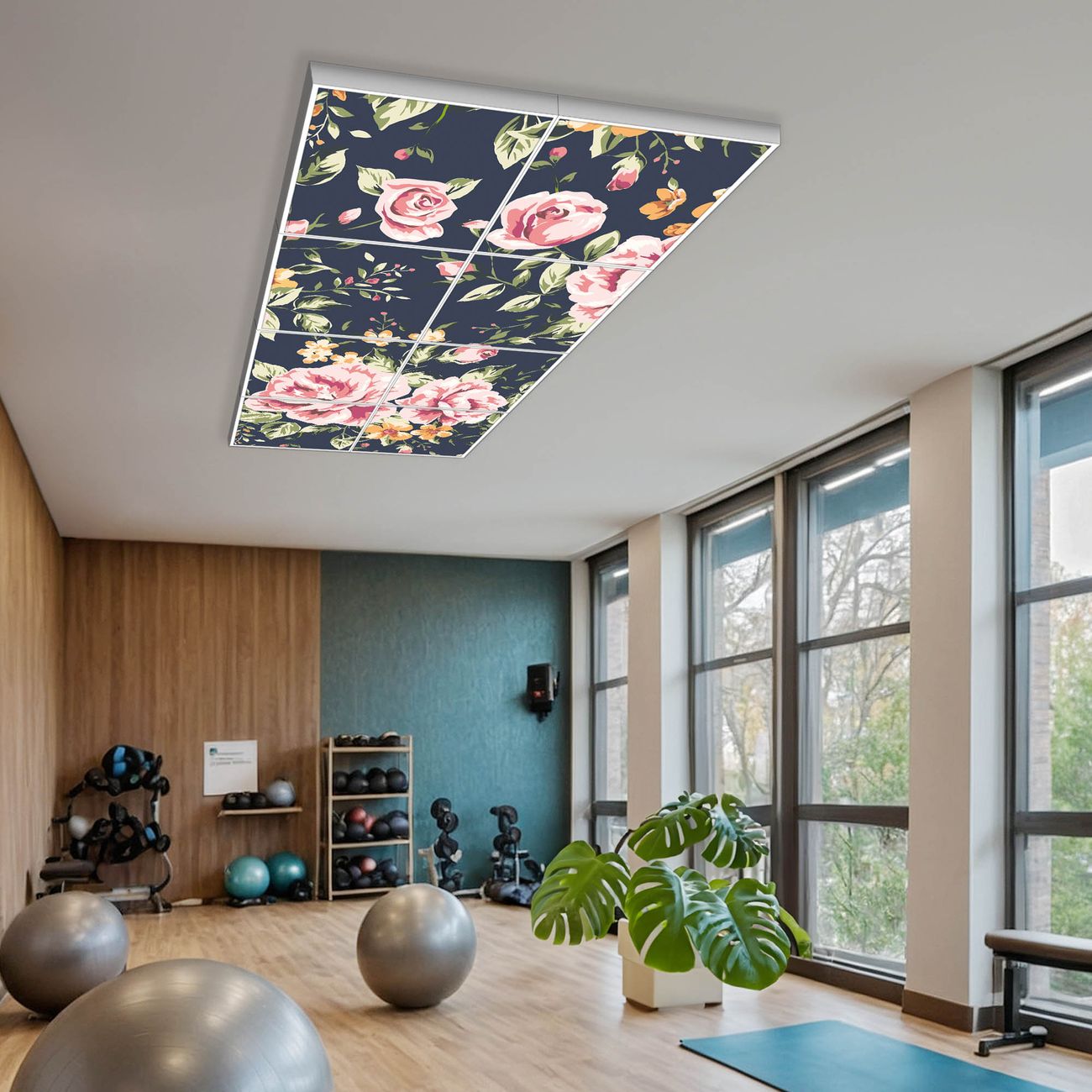 Entdecken Sie unsere vielseitigen Lichtdecken, hier in der Größe 124 x 248cm mit dem Motiv Motiv Rosen Auf Anthrazit - Ihre Beleuchtungslösung für jede Umgebung Beleuchten Sie Ihren Raum nicht nur, sondern schaffen Sie Atmosphäre! Die banjado Lichtdecke verwandelt jeden Ort, ob zu Hause, in Praxen, Büros oder Studios in eine Wohlfühloase. Unsere einzelnen Elemente haben eine genormte Einheitsgröße von 62 x 62cm und können somit in jede gängige Rasterdecken verbaut werden. So finden Sie Ihre passende Ausführung: Gern helfen wir Ihnen, die passende Ausführung zu wählen. Hierfür muss die aktuelle Gegebenheit Ihrer Decke oder Wand beachtet werden. Haben Sie bereits eine Rasterdecke (auch Odenwalddecke genannt)? Hier bestellen Sie lediglich das Motiv + Beleuchtungspanel, denn beides wird in die bereits vorhandene Decke eingelegt. Haben Sie eine glatte Decke mit Lichtauslass oder möchten die Lichtdecke an der Wand befestigen? Hier bestellen Sie bitte Motiv + Beleuchtungspanel + Deckenbefestigung, eine Aufbauanleitung liegt immer bei. Die Lichtdecke kann sowohl an der Decke als auch an der Wand montiert werden, perfekt für kreative Lichtakzente oder alternative Beleuchtungslösungen. Haben Sie bereits eine Lichtdecke und möchten nur das Motiv wechseln? Hier bestellen Sie bitte nur Motiv, der Wechsel ist denkbar einfach. Der Aufbau Ihrer banjado Lichtdecke gestaltet sich unkompliziert, dank einer verständlichen Anleitung, die Ihnen Schritt für Schritt durch den Montageprozess hilft. Für die endgültige Installation und den sicheren Anschluss empfehlen wir die Hinzuziehung eines Fachmanns, um die optimale Funktion und Sicherheit Ihrer Beleuchtung zu gewährleisten. Falls Sie einen Fachmann für die Installation benötigen, geben Sie uns gern Bescheid, wir vermitteln Ihnen gern einen geeigneten Ansprechpartner aus Ihrer Nähe. Steuerung: Steigern Sie Ihr Beleuchtungserlebnis mit der nahtlosen Integration in Ihr Smart Home. Durch die Kompatibilität mit der SmartLife App, Alexa und Google Assistant wird Ihr Smartphone zur zentralen Steuerungseinheit. Ihr Handy fungiert hierbei sozusagen als Fernbedienung. Legen Sie individuelle Lichtszenen in der App fest, die bei Aktivierung über den Wand-Ein-/Ausschalter immer wieder abgerufen werden können ohne Handy. Mit der Szenenfunktion in der Smart App können Sie die Beleuchtung personalisieren und steuern, sodass sie auf Ihre individuellen Bedürfnisse, Tagesrhythmus und Stimmung zugeschnitten ist. Beispielsweise können Sie sich in der Morgendämmerung durch ein sanftes Licht wecken lassen oder das Licht der Praxis werktags um 7 Uhr automatisch einschalten lassen. Dieses kann dann natürlich auch zu einer bestimmten Zeit automatisch ausgeschaltet werden. Motivwahl: Diese einzigartige Lichtdecke zeichnet sich durch ihre Fähigkeit aus, die Lichtfarbe je nach gewähltem Motiv anzupassen - ein Baum wirft ein sanftes grünes Licht, während eine Wolkendecke Ihren Raum in ein beruhigendes blaues Leuchten hüllt. Berücksichtigen Sie dies bitte bei Ihrer Motivauswahl. Sie können das Motiv jederzeit ohne großen Aufwand austauschen, ob nach Jahreszeit oder anderem Anlass, unsere Auswahl lässt kaum Wünsche offen. Wir fertigen Ihnen gern eine personalisierte Lichtdecke mit einem eigenen Motiv oder Logo oder Foto, schreiben Sie uns jederzeit an. Technische Daten: Das Motiv ist auf einer 4mm starken Acrylglas Scheibe aufgebracht, das Gesamtgewicht Ihrer Ausführung beträgt 39,4kg. Die Farbtemperatur lässt sich frei einstellen von 3000 bis 6000 Kelvin, damit können Sie stufenlos zwischen warmweiß, neutralweiß und kaltweiß wählen. Die Gesamtleistung bei Ihrer gewählten Ausführung beträgt 320W. Der Lichtstrom beträgt 3600 Lumen, die Nennspannung 230 V. Die Lichtdecke ist mit Schutzart IP20 für den Innenbereich konzipiert und sollte nicht im Nassbereich verwendet werden.