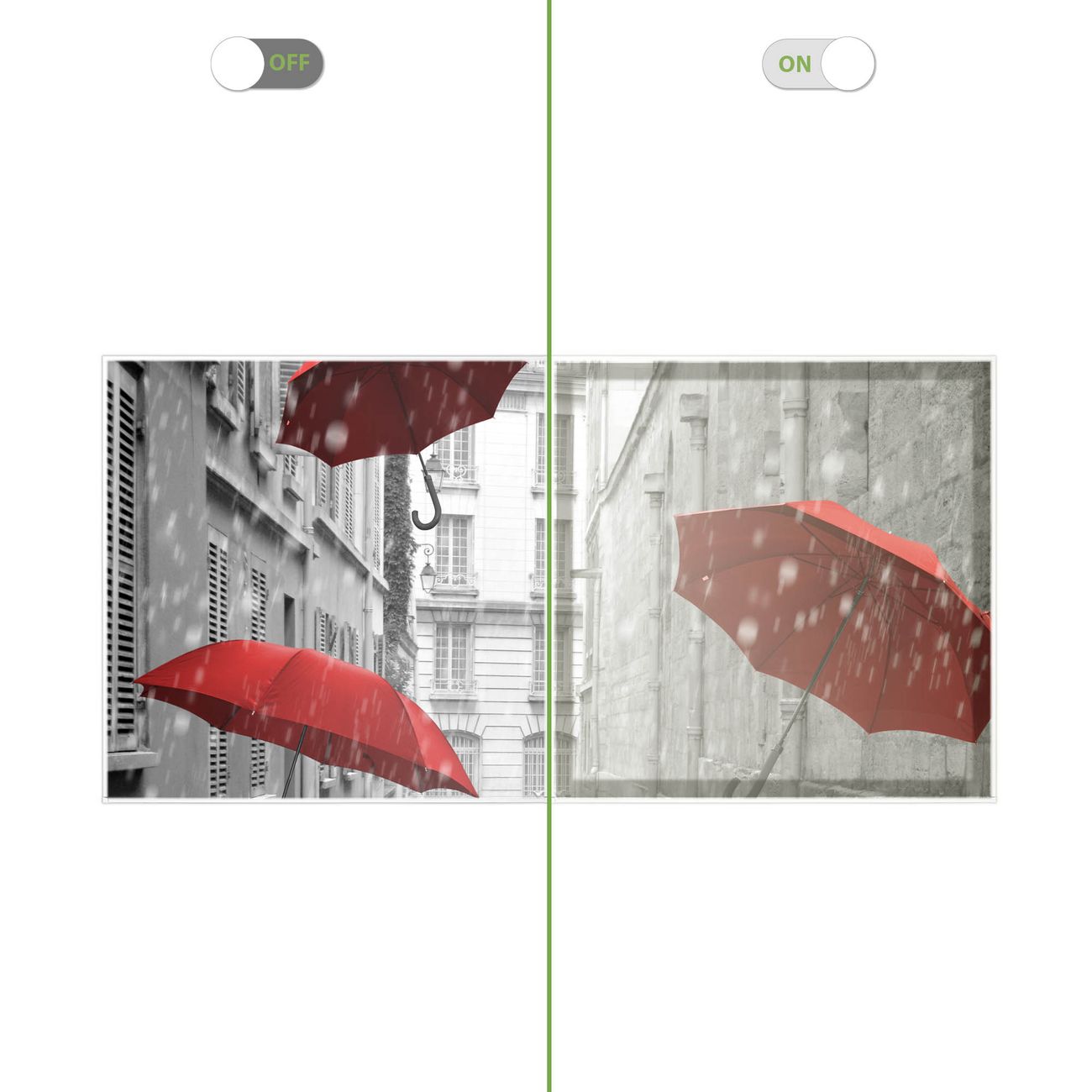 Entdecken Sie unsere vielseitigen Lichtdecken, hier in der Größe 124 x 62cm mit dem Motiv Motiv Rote Schirme - Ihre Beleuchtungslösung für jede Umgebung Beleuchten Sie Ihren Raum nicht nur, sondern schaffen Sie Atmosphäre! Die banjado Lichtdecke verwandelt jeden Ort, ob zu Hause, in Praxen, Büros oder Studios in eine Wohlfühloase. Unsere einzelnen Elemente haben eine genormte Einheitsgröße von 62 x 62cm und können somit in jede gängige Rasterdecken verbaut werden. So finden Sie Ihre passende Ausführung: Gern helfen wir Ihnen, die passende Ausführung zu wählen. Hierfür muss die aktuelle Gegebenheit Ihrer Decke oder Wand beachtet werden. Haben Sie bereits eine Rasterdecke (auch Odenwalddecke genannt)? Hier bestellen Sie lediglich das Motiv + Beleuchtungspanel, denn beides wird in die bereits vorhandene Decke eingelegt. Haben Sie eine glatte Decke mit Lichtauslass oder möchten die Lichtdecke an der Wand befestigen? Hier bestellen Sie bitte Motiv + Beleuchtungspanel + Deckenbefestigung, eine Aufbauanleitung liegt immer bei. Die Lichtdecke kann sowohl an der Decke als auch an der Wand montiert werden, perfekt für kreative Lichtakzente oder alternative Beleuchtungslösungen. Haben Sie bereits eine Lichtdecke und möchten nur das Motiv wechseln? Hier bestellen Sie bitte nur Motiv, der Wechsel ist denkbar einfach. Der Aufbau Ihrer banjado Lichtdecke gestaltet sich unkompliziert, dank einer verständlichen Anleitung, die Ihnen Schritt für Schritt durch den Montageprozess hilft. Für die endgültige Installation und den sicheren Anschluss empfehlen wir die Hinzuziehung eines Fachmanns, um die optimale Funktion und Sicherheit Ihrer Beleuchtung zu gewährleisten. Falls Sie einen Fachmann für die Installation benötigen, geben Sie uns gern Bescheid, wir vermitteln Ihnen gern einen geeigneten Ansprechpartner aus Ihrer Nähe. Steuerung: Steigern Sie Ihr Beleuchtungserlebnis mit der nahtlosen Integration in Ihr Smart Home. Durch die Kompatibilität mit der SmartLife App, Alexa und Google Assistant wird Ihr Smartphone zur zentralen Steuerungseinheit. Ihr Handy fungiert hierbei sozusagen als Fernbedienung. Legen Sie individuelle Lichtszenen in der App fest, die bei Aktivierung über den Wand-Ein-/Ausschalter immer wieder abgerufen werden können ohne Handy. Mit der Szenenfunktion in der Smart App können Sie die Beleuchtung personalisieren und steuern, sodass sie auf Ihre individuellen Bedürfnisse, Tagesrhythmus und Stimmung zugeschnitten ist. Beispielsweise können Sie sich in der Morgendämmerung durch ein sanftes Licht wecken lassen oder das Licht der Praxis werktags um 7 Uhr automatisch einschalten lassen. Dieses kann dann natürlich auch zu einer bestimmten Zeit automatisch ausgeschaltet werden. Motivwahl: Diese einzigartige Lichtdecke zeichnet sich durch ihre Fähigkeit aus, die Lichtfarbe je nach gewähltem Motiv anzupassen - ein Baum wirft ein sanftes grünes Licht, während eine Wolkendecke Ihren Raum in ein beruhigendes blaues Leuchten hüllt. Berücksichtigen Sie dies bitte bei Ihrer Motivauswahl. Sie können das Motiv jederzeit ohne großen Aufwand austauschen, ob nach Jahreszeit oder anderem Anlass, unsere Auswahl lässt kaum Wünsche offen. Wir fertigen Ihnen gern eine personalisierte Lichtdecke mit einem eigenen Motiv oder Logo oder Foto, schreiben Sie uns jederzeit an. Technische Daten: Das Motiv ist auf einer 4mm starken Acrylglas Scheibe aufgebracht, das Gesamtgewicht Ihrer Ausführung beträgt 8,9kg. Die Farbtemperatur lässt sich frei einstellen von 3000 bis 6000 Kelvin, damit können Sie stufenlos zwischen warmweiß, neutralweiß und kaltweiß wählen. Die Gesamtleistung bei Ihrer gewählten Ausführung beträgt 80W. Der Lichtstrom beträgt 3600 Lumen, die Nennspannung 230 V. Die Lichtdecke ist mit Schutzart IP20 für den Innenbereich konzipiert und sollte nicht im Nassbereich verwendet werden.