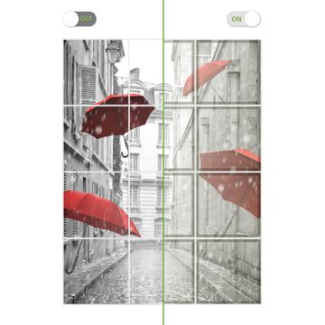Entdecken Sie unsere vielseitigen Lichtdecken, hier in der Größe 186 x 248cm mit dem Motiv Motiv Rote Schirme - Ihre Beleuchtungslösung für jede Umgebung Beleuchten Sie Ihren Raum nicht nur, sondern schaffen Sie Atmosphäre! Die banjado Lichtdecke verwandelt jeden Ort, ob zu Hause, in Praxen, Büros oder Studios in eine Wohlfühloase. Unsere einzelnen Elemente haben eine genormte Einheitsgröße von 62 x 62cm und können somit in jede gängige Rasterdecken verbaut werden. So finden Sie Ihre passende Ausführung: Gern helfen wir Ihnen, die passende Ausführung zu wählen. Hierfür muss die aktuelle Gegebenheit Ihrer Decke oder Wand beachtet werden. Haben Sie bereits eine Rasterdecke (auch Odenwalddecke genannt)? Hier bestellen Sie lediglich das Motiv + Beleuchtungspanel, denn beides wird in die bereits vorhandene Decke eingelegt. Haben Sie eine glatte Decke mit Lichtauslass oder möchten die Lichtdecke an der Wand befestigen? Hier bestellen Sie bitte Motiv + Beleuchtungspanel + Deckenbefestigung, eine Aufbauanleitung liegt immer bei. Die Lichtdecke kann sowohl an der Decke als auch an der Wand montiert werden, perfekt für kreative Lichtakzente oder alternative Beleuchtungslösungen. Haben Sie bereits eine Lichtdecke und möchten nur das Motiv wechseln? Hier bestellen Sie bitte nur Motiv, der Wechsel ist denkbar einfach. Der Aufbau Ihrer banjado Lichtdecke gestaltet sich unkompliziert, dank einer verständlichen Anleitung, die Ihnen Schritt für Schritt durch den Montageprozess hilft. Für die endgültige Installation und den sicheren Anschluss empfehlen wir die Hinzuziehung eines Fachmanns, um die optimale Funktion und Sicherheit Ihrer Beleuchtung zu gewährleisten. Falls Sie einen Fachmann für die Installation benötigen, geben Sie uns gern Bescheid, wir vermitteln Ihnen gern einen geeigneten Ansprechpartner aus Ihrer Nähe. Steuerung: Steigern Sie Ihr Beleuchtungserlebnis mit der nahtlosen Integration in Ihr Smart Home. Durch die Kompatibilität mit der SmartLife App, Alexa und Google Assistant wird Ihr Smartphone zur zentralen Steuerungseinheit. Ihr Handy fungiert hierbei sozusagen als Fernbedienung. Legen Sie individuelle Lichtszenen in der App fest, die bei Aktivierung über den Wand-Ein-/Ausschalter immer wieder abgerufen werden können ohne Handy. Mit der Szenenfunktion in der Smart App können Sie die Beleuchtung personalisieren und steuern, sodass sie auf Ihre individuellen Bedürfnisse, Tagesrhythmus und Stimmung zugeschnitten ist. Beispielsweise können Sie sich in der Morgendämmerung durch ein sanftes Licht wecken lassen oder das Licht der Praxis werktags um 7 Uhr automatisch einschalten lassen. Dieses kann dann natürlich auch zu einer bestimmten Zeit automatisch ausgeschaltet werden. Motivwahl: Diese einzigartige Lichtdecke zeichnet sich durch ihre Fähigkeit aus, die Lichtfarbe je nach gewähltem Motiv anzupassen - ein Baum wirft ein sanftes grünes Licht, während eine Wolkendecke Ihren Raum in ein beruhigendes blaues Leuchten hüllt. Berücksichtigen Sie dies bitte bei Ihrer Motivauswahl. Sie können das Motiv jederzeit ohne großen Aufwand austauschen, ob nach Jahreszeit oder anderem Anlass, unsere Auswahl lässt kaum Wünsche offen. Wir fertigen Ihnen gern eine personalisierte Lichtdecke mit einem eigenen Motiv oder Logo oder Foto, schreiben Sie uns jederzeit an. Technische Daten: Das Motiv ist auf einer 4mm starken Acrylglas Scheibe aufgebracht, das Gesamtgewicht Ihrer Ausführung beträgt 27,1kg. Die Farbtemperatur lässt sich frei einstellen von 3000 bis 6000 Kelvin, damit können Sie stufenlos zwischen warmweiß, neutralweiß und kaltweiß wählen. Die Gesamtleistung bei Ihrer gewählten Ausführung beträgt 480W. Der Lichtstrom beträgt 3600 Lumen, die Nennspannung 230 V. Die Lichtdecke ist mit Schutzart IP20 für den Innenbereich konzipiert und sollte nicht im Nassbereich verwendet werden.