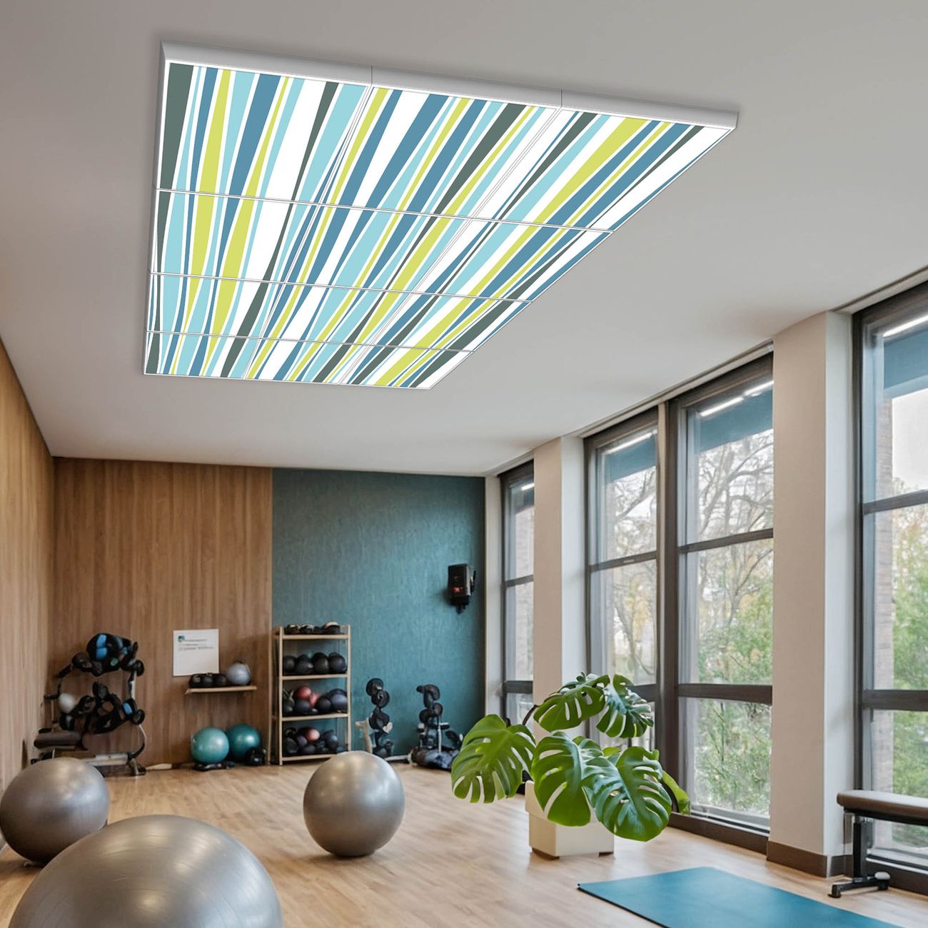 Entdecken Sie unsere vielseitigen Lichtdecken, hier in der Größe 186 x 248cm mit dem Motiv Motiv Schilf Abstrakt - Ihre Beleuchtungslösung für jede Umgebung Beleuchten Sie Ihren Raum nicht nur, sondern schaffen Sie Atmosphäre! Die banjado Lichtdecke verwandelt jeden Ort, ob zu Hause, in Praxen, Büros oder Studios in eine Wohlfühloase. Unsere einzelnen Elemente haben eine genormte Einheitsgröße von 62 x 62cm und können somit in jede gängige Rasterdecken verbaut werden. So finden Sie Ihre passende Ausführung: Gern helfen wir Ihnen, die passende Ausführung zu wählen. Hierfür muss die aktuelle Gegebenheit Ihrer Decke oder Wand beachtet werden. Haben Sie bereits eine Rasterdecke (auch Odenwalddecke genannt)? Hier bestellen Sie lediglich das Motiv + Beleuchtungspanel, denn beides wird in die bereits vorhandene Decke eingelegt. Haben Sie eine glatte Decke mit Lichtauslass oder möchten die Lichtdecke an der Wand befestigen? Hier bestellen Sie bitte Motiv + Beleuchtungspanel + Deckenbefestigung, eine Aufbauanleitung liegt immer bei. Die Lichtdecke kann sowohl an der Decke als auch an der Wand montiert werden, perfekt für kreative Lichtakzente oder alternative Beleuchtungslösungen. Haben Sie bereits eine Lichtdecke und möchten nur das Motiv wechseln? Hier bestellen Sie bitte nur Motiv, der Wechsel ist denkbar einfach. Der Aufbau Ihrer banjado Lichtdecke gestaltet sich unkompliziert, dank einer verständlichen Anleitung, die Ihnen Schritt für Schritt durch den Montageprozess hilft. Für die endgültige Installation und den sicheren Anschluss empfehlen wir die Hinzuziehung eines Fachmanns, um die optimale Funktion und Sicherheit Ihrer Beleuchtung zu gewährleisten. Falls Sie einen Fachmann für die Installation benötigen, geben Sie uns gern Bescheid, wir vermitteln Ihnen gern einen geeigneten Ansprechpartner aus Ihrer Nähe. Steuerung: Steigern Sie Ihr Beleuchtungserlebnis mit der nahtlosen Integration in Ihr Smart Home. Durch die Kompatibilität mit der SmartLife App, Alexa und Google Assistant wird Ihr Smartphone zur zentralen Steuerungseinheit. Ihr Handy fungiert hierbei sozusagen als Fernbedienung. Legen Sie individuelle Lichtszenen in der App fest, die bei Aktivierung über den Wand-Ein-/Ausschalter immer wieder abgerufen werden können ohne Handy. Mit der Szenenfunktion in der Smart App können Sie die Beleuchtung personalisieren und steuern, sodass sie auf Ihre individuellen Bedürfnisse, Tagesrhythmus und Stimmung zugeschnitten ist. Beispielsweise können Sie sich in der Morgendämmerung durch ein sanftes Licht wecken lassen oder das Licht der Praxis werktags um 7 Uhr automatisch einschalten lassen. Dieses kann dann natürlich auch zu einer bestimmten Zeit automatisch ausgeschaltet werden. Motivwahl: Diese einzigartige Lichtdecke zeichnet sich durch ihre Fähigkeit aus, die Lichtfarbe je nach gewähltem Motiv anzupassen - ein Baum wirft ein sanftes grünes Licht, während eine Wolkendecke Ihren Raum in ein beruhigendes blaues Leuchten hüllt. Berücksichtigen Sie dies bitte bei Ihrer Motivauswahl. Sie können das Motiv jederzeit ohne großen Aufwand austauschen, ob nach Jahreszeit oder anderem Anlass, unsere Auswahl lässt kaum Wünsche offen. Wir fertigen Ihnen gern eine personalisierte Lichtdecke mit einem eigenen Motiv oder Logo oder Foto, schreiben Sie uns jederzeit an. Technische Daten: Das Motiv ist auf einer 4mm starken Acrylglas Scheibe aufgebracht, das Gesamtgewicht Ihrer Ausführung beträgt 59,1kg. Die Farbtemperatur lässt sich frei einstellen von 3000 bis 6000 Kelvin, damit können Sie stufenlos zwischen warmweiß, neutralweiß und kaltweiß wählen. Die Gesamtleistung bei Ihrer gewählten Ausführung beträgt 480W. Der Lichtstrom beträgt 3600 Lumen, die Nennspannung 230 V. Die Lichtdecke ist mit Schutzart IP20 für den Innenbereich konzipiert und sollte nicht im Nassbereich verwendet werden.