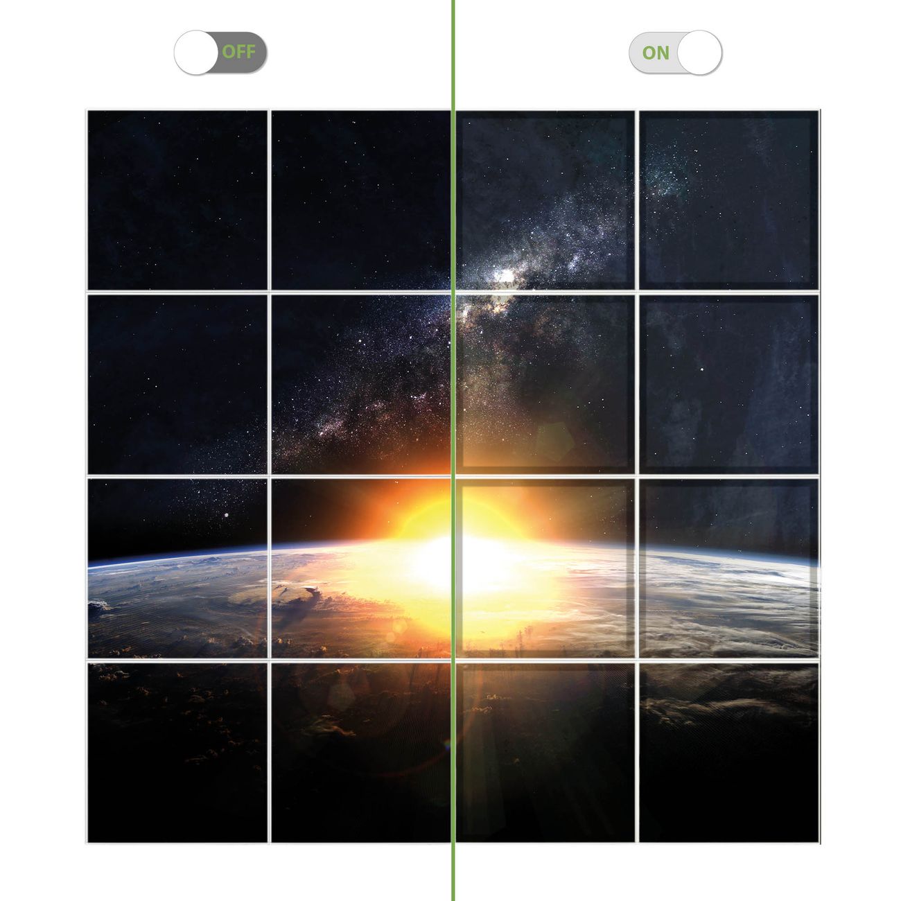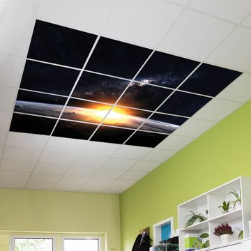 Entdecken Sie unsere vielseitigen Lichtdecken, hier in der Größe 248 x 248cm mit dem Motiv Motiv Sonne im Weltall - Ihre Beleuchtungslösung für jede Umgebung Beleuchten Sie Ihren Raum nicht nur, sondern schaffen Sie Atmosphäre! Die banjado Lichtdecke verwandelt jeden Ort, ob zu Hause, in Praxen, Büros oder Studios in eine Wohlfühloase. Unsere einzelnen Elemente haben eine genormte Einheitsgröße von 62 x 62cm und können somit in jede gängige Rasterdecken verbaut werden. So finden Sie Ihre passende Ausführung: Gern helfen wir Ihnen, die passende Ausführung zu wählen. Hierfür muss die aktuelle Gegebenheit Ihrer Decke oder Wand beachtet werden. Haben Sie bereits eine Rasterdecke (auch Odenwalddecke genannt)? Hier bestellen Sie lediglich das Motiv + Beleuchtungspanel, denn beides wird in die bereits vorhandene Decke eingelegt. Haben Sie eine glatte Decke mit Lichtauslass oder möchten die Lichtdecke an der Wand befestigen? Hier bestellen Sie bitte Motiv + Beleuchtungspanel + Deckenbefestigung, eine Aufbauanleitung liegt immer bei. Die Lichtdecke kann sowohl an der Decke als auch an der Wand montiert werden, perfekt für kreative Lichtakzente oder alternative Beleuchtungslösungen. Haben Sie bereits eine Lichtdecke und möchten nur das Motiv wechseln? Hier bestellen Sie bitte nur Motiv, der Wechsel ist denkbar einfach. Der Aufbau Ihrer banjado Lichtdecke gestaltet sich unkompliziert, dank einer verständlichen Anleitung, die Ihnen Schritt für Schritt durch den Montageprozess hilft. Für die endgültige Installation und den sicheren Anschluss empfehlen wir die Hinzuziehung eines Fachmanns, um die optimale Funktion und Sicherheit Ihrer Beleuchtung zu gewährleisten. Falls Sie einen Fachmann für die Installation benötigen, geben Sie uns gern Bescheid, wir vermitteln Ihnen gern einen geeigneten Ansprechpartner aus Ihrer Nähe. Steuerung: Steigern Sie Ihr Beleuchtungserlebnis mit der nahtlosen Integration in Ihr Smart Home. Durch die Kompatibilität mit der SmartLife App, Alexa und Google Assistant wird Ihr Smartphone zur zentralen Steuerungseinheit. Ihr Handy fungiert hierbei sozusagen als Fernbedienung. Legen Sie individuelle Lichtszenen in der App fest, die bei Aktivierung über den Wand-Ein-/Ausschalter immer wieder abgerufen werden können ohne Handy. Mit der Szenenfunktion in der Smart App können Sie die Beleuchtung personalisieren und steuern, sodass sie auf Ihre individuellen Bedürfnisse, Tagesrhythmus und Stimmung zugeschnitten ist. Beispielsweise können Sie sich in der Morgendämmerung durch ein sanftes Licht wecken lassen oder das Licht der Praxis werktags um 7 Uhr automatisch einschalten lassen. Dieses kann dann natürlich auch zu einer bestimmten Zeit automatisch ausgeschaltet werden. Motivwahl: Diese einzigartige Lichtdecke zeichnet sich durch ihre Fähigkeit aus, die Lichtfarbe je nach gewähltem Motiv anzupassen - ein Baum wirft ein sanftes grünes Licht, während eine Wolkendecke Ihren Raum in ein beruhigendes blaues Leuchten hüllt. Berücksichtigen Sie dies bitte bei Ihrer Motivauswahl. Sie können das Motiv jederzeit ohne großen Aufwand austauschen, ob nach Jahreszeit oder anderem Anlass, unsere Auswahl lässt kaum Wünsche offen. Wir fertigen Ihnen gern eine personalisierte Lichtdecke mit einem eigenen Motiv oder Logo oder Foto, schreiben Sie uns jederzeit an. Technische Daten: Das Motiv ist auf einer 4mm starken Acrylglas Scheibe aufgebracht, das Gesamtgewicht Ihrer Ausführung beträgt 36,2kg. Die Farbtemperatur lässt sich frei einstellen von 3000 bis 6000 Kelvin, damit können Sie stufenlos zwischen warmweiß, neutralweiß und kaltweiß wählen. Die Gesamtleistung bei Ihrer gewählten Ausführung beträgt 640W. Der Lichtstrom beträgt 3600 Lumen, die Nennspannung 230 V. Die Lichtdecke ist mit Schutzart IP20 für den Innenbereich konzipiert und sollte nicht im Nassbereich verwendet werden.