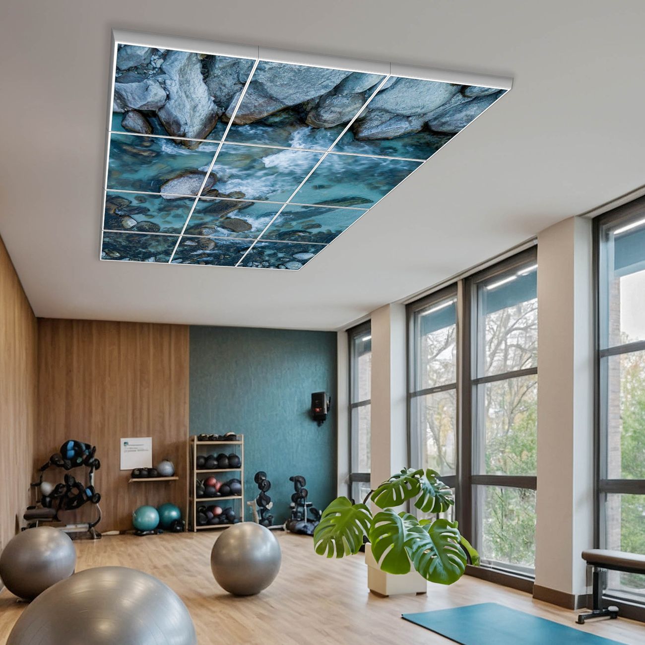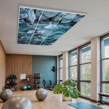 Entdecken Sie unsere vielseitigen Lichtdecken, hier in der Größe 186 x 248cm mit dem Motiv Motiv Steinbucht 2 - Ihre Beleuchtungslösung für jede Umgebung Beleuchten Sie Ihren Raum nicht nur, sondern schaffen Sie Atmosphäre! Die banjado Lichtdecke verwandelt jeden Ort, ob zu Hause, in Praxen, Büros oder Studios in eine Wohlfühloase. Unsere einzelnen Elemente haben eine genormte Einheitsgröße von 62 x 62cm und können somit in jede gängige Rasterdecken verbaut werden. So finden Sie Ihre passende Ausführung: Gern helfen wir Ihnen, die passende Ausführung zu wählen. Hierfür muss die aktuelle Gegebenheit Ihrer Decke oder Wand beachtet werden. Haben Sie bereits eine Rasterdecke (auch Odenwalddecke genannt)? Hier bestellen Sie lediglich das Motiv + Beleuchtungspanel, denn beides wird in die bereits vorhandene Decke eingelegt. Haben Sie eine glatte Decke mit Lichtauslass oder möchten die Lichtdecke an der Wand befestigen? Hier bestellen Sie bitte Motiv + Beleuchtungspanel + Deckenbefestigung, eine Aufbauanleitung liegt immer bei. Die Lichtdecke kann sowohl an der Decke als auch an der Wand montiert werden, perfekt für kreative Lichtakzente oder alternative Beleuchtungslösungen. Haben Sie bereits eine Lichtdecke und möchten nur das Motiv wechseln? Hier bestellen Sie bitte nur Motiv, der Wechsel ist denkbar einfach. Der Aufbau Ihrer banjado Lichtdecke gestaltet sich unkompliziert, dank einer verständlichen Anleitung, die Ihnen Schritt für Schritt durch den Montageprozess hilft. Für die endgültige Installation und den sicheren Anschluss empfehlen wir die Hinzuziehung eines Fachmanns, um die optimale Funktion und Sicherheit Ihrer Beleuchtung zu gewährleisten. Falls Sie einen Fachmann für die Installation benötigen, geben Sie uns gern Bescheid, wir vermitteln Ihnen gern einen geeigneten Ansprechpartner aus Ihrer Nähe. Steuerung: Steigern Sie Ihr Beleuchtungserlebnis mit der nahtlosen Integration in Ihr Smart Home. Durch die Kompatibilität mit der SmartLife App, Alexa und Google Assistant wird Ihr Smartphone zur zentralen Steuerungseinheit. Ihr Handy fungiert hierbei sozusagen als Fernbedienung. Legen Sie individuelle Lichtszenen in der App fest, die bei Aktivierung über den Wand-Ein-/Ausschalter immer wieder abgerufen werden können ohne Handy. Mit der Szenenfunktion in der Smart App können Sie die Beleuchtung personalisieren und steuern, sodass sie auf Ihre individuellen Bedürfnisse, Tagesrhythmus und Stimmung zugeschnitten ist. Beispielsweise können Sie sich in der Morgendämmerung durch ein sanftes Licht wecken lassen oder das Licht der Praxis werktags um 7 Uhr automatisch einschalten lassen. Dieses kann dann natürlich auch zu einer bestimmten Zeit automatisch ausgeschaltet werden. Motivwahl: Diese einzigartige Lichtdecke zeichnet sich durch ihre Fähigkeit aus, die Lichtfarbe je nach gewähltem Motiv anzupassen - ein Baum wirft ein sanftes grünes Licht, während eine Wolkendecke Ihren Raum in ein beruhigendes blaues Leuchten hüllt. Berücksichtigen Sie dies bitte bei Ihrer Motivauswahl. Sie können das Motiv jederzeit ohne großen Aufwand austauschen, ob nach Jahreszeit oder anderem Anlass, unsere Auswahl lässt kaum Wünsche offen. Wir fertigen Ihnen gern eine personalisierte Lichtdecke mit einem eigenen Motiv oder Logo oder Foto, schreiben Sie uns jederzeit an. Technische Daten: Das Motiv ist auf einer 4mm starken Acrylglas Scheibe aufgebracht, das Gesamtgewicht Ihrer Ausführung beträgt 59,1kg. Die Farbtemperatur lässt sich frei einstellen von 3000 bis 6000 Kelvin, damit können Sie stufenlos zwischen warmweiß, neutralweiß und kaltweiß wählen. Die Gesamtleistung bei Ihrer gewählten Ausführung beträgt 480W. Der Lichtstrom beträgt 3600 Lumen, die Nennspannung 230 V. Die Lichtdecke ist mit Schutzart IP20 für den Innenbereich konzipiert und sollte nicht im Nassbereich verwendet werden.