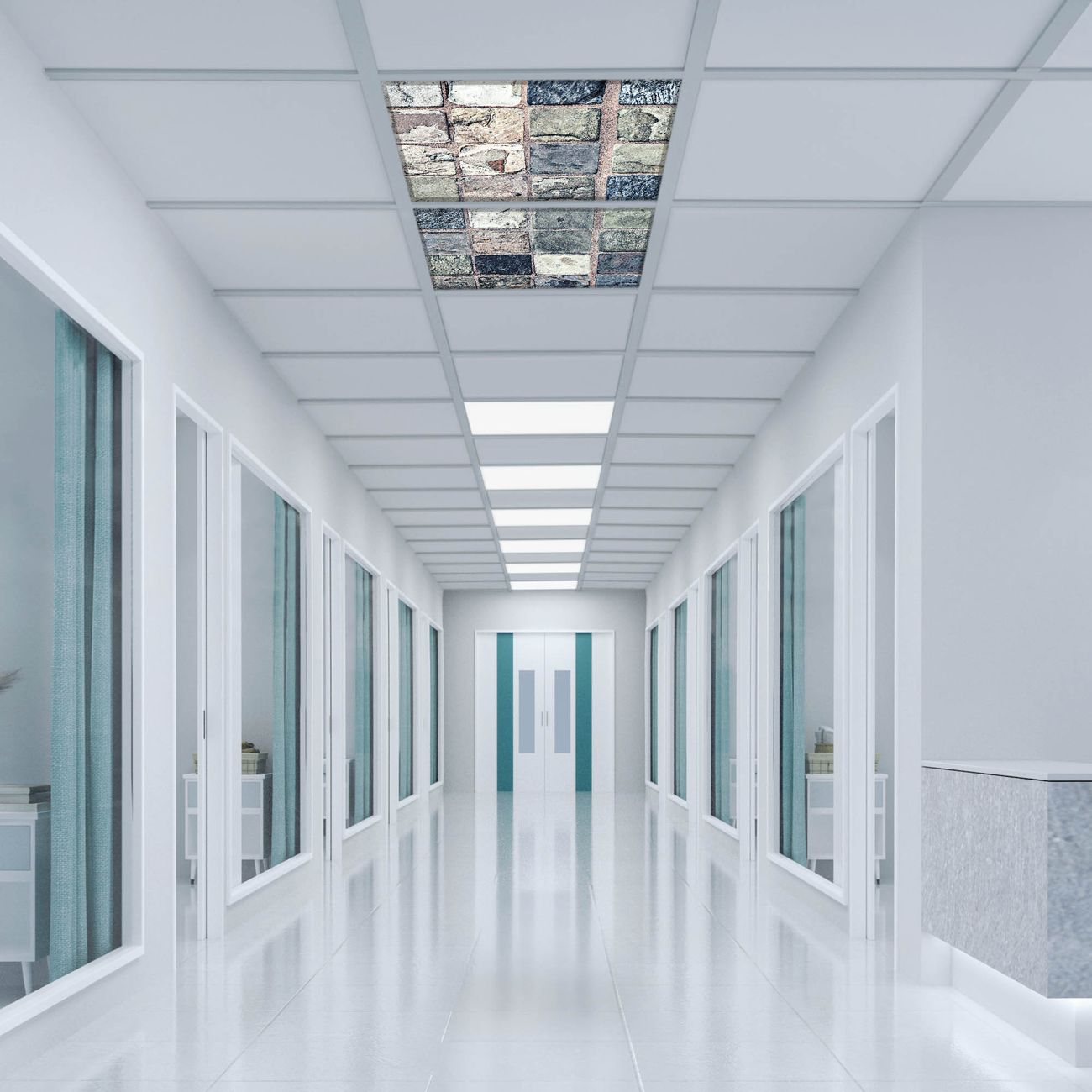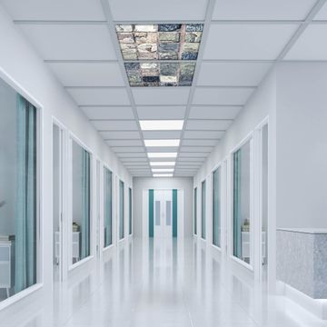 Entdecken Sie unsere vielseitigen Lichtdecken, hier in der Größe 124 x 62cm mit dem Motiv Motiv Steinfliesen - Ihre Beleuchtungslösung für jede Umgebung Beleuchten Sie Ihren Raum nicht nur, sondern schaffen Sie Atmosphäre! Die banjado Lichtdecke verwandelt jeden Ort, ob zu Hause, in Praxen, Büros oder Studios in eine Wohlfühloase. Unsere einzelnen Elemente haben eine genormte Einheitsgröße von 62 x 62cm und können somit in jede gängige Rasterdecken verbaut werden. So finden Sie Ihre passende Ausführung: Gern helfen wir Ihnen, die passende Ausführung zu wählen. Hierfür muss die aktuelle Gegebenheit Ihrer Decke oder Wand beachtet werden. Haben Sie bereits eine Rasterdecke (auch Odenwalddecke genannt)? Hier bestellen Sie lediglich das Motiv + Beleuchtungspanel, denn beides wird in die bereits vorhandene Decke eingelegt. Haben Sie eine glatte Decke mit Lichtauslass oder möchten die Lichtdecke an der Wand befestigen? Hier bestellen Sie bitte Motiv + Beleuchtungspanel + Deckenbefestigung, eine Aufbauanleitung liegt immer bei. Die Lichtdecke kann sowohl an der Decke als auch an der Wand montiert werden, perfekt für kreative Lichtakzente oder alternative Beleuchtungslösungen. Haben Sie bereits eine Lichtdecke und möchten nur das Motiv wechseln? Hier bestellen Sie bitte nur Motiv, der Wechsel ist denkbar einfach. Der Aufbau Ihrer banjado Lichtdecke gestaltet sich unkompliziert, dank einer verständlichen Anleitung, die Ihnen Schritt für Schritt durch den Montageprozess hilft. Für die endgültige Installation und den sicheren Anschluss empfehlen wir die Hinzuziehung eines Fachmanns, um die optimale Funktion und Sicherheit Ihrer Beleuchtung zu gewährleisten. Falls Sie einen Fachmann für die Installation benötigen, geben Sie uns gern Bescheid, wir vermitteln Ihnen gern einen geeigneten Ansprechpartner aus Ihrer Nähe. Steuerung: Steigern Sie Ihr Beleuchtungserlebnis mit der nahtlosen Integration in Ihr Smart Home. Durch die Kompatibilität mit der SmartLife App, Alexa und Google Assistant wird Ihr Smartphone zur zentralen Steuerungseinheit. Ihr Handy fungiert hierbei sozusagen als Fernbedienung. Legen Sie individuelle Lichtszenen in der App fest, die bei Aktivierung über den Wand-Ein-/Ausschalter immer wieder abgerufen werden können ohne Handy. Mit der Szenenfunktion in der Smart App können Sie die Beleuchtung personalisieren und steuern, sodass sie auf Ihre individuellen Bedürfnisse, Tagesrhythmus und Stimmung zugeschnitten ist. Beispielsweise können Sie sich in der Morgendämmerung durch ein sanftes Licht wecken lassen oder das Licht der Praxis werktags um 7 Uhr automatisch einschalten lassen. Dieses kann dann natürlich auch zu einer bestimmten Zeit automatisch ausgeschaltet werden. Motivwahl: Diese einzigartige Lichtdecke zeichnet sich durch ihre Fähigkeit aus, die Lichtfarbe je nach gewähltem Motiv anzupassen - ein Baum wirft ein sanftes grünes Licht, während eine Wolkendecke Ihren Raum in ein beruhigendes blaues Leuchten hüllt. Berücksichtigen Sie dies bitte bei Ihrer Motivauswahl. Sie können das Motiv jederzeit ohne großen Aufwand austauschen, ob nach Jahreszeit oder anderem Anlass, unsere Auswahl lässt kaum Wünsche offen. Wir fertigen Ihnen gern eine personalisierte Lichtdecke mit einem eigenen Motiv oder Logo oder Foto, schreiben Sie uns jederzeit an. Technische Daten: Das Motiv ist auf einer 4mm starken Acrylglas Scheibe aufgebracht, das Gesamtgewicht Ihrer Ausführung beträgt 4,5kg. Die Farbtemperatur lässt sich frei einstellen von 3000 bis 6000 Kelvin, damit können Sie stufenlos zwischen warmweiß, neutralweiß und kaltweiß wählen. Die Gesamtleistung bei Ihrer gewählten Ausführung beträgt 80W. Der Lichtstrom beträgt 3600 Lumen, die Nennspannung 230 V. Die Lichtdecke ist mit Schutzart IP20 für den Innenbereich konzipiert und sollte nicht im Nassbereich verwendet werden.