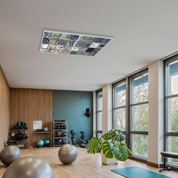 Entdecken Sie unsere vielseitigen Lichtdecken, hier in der Größe 124 x 62cm mit dem Motiv Motiv Steinfliesen - Ihre Beleuchtungslösung für jede Umgebung Beleuchten Sie Ihren Raum nicht nur, sondern schaffen Sie Atmosphäre! Die banjado Lichtdecke verwandelt jeden Ort, ob zu Hause, in Praxen, Büros oder Studios in eine Wohlfühloase. Unsere einzelnen Elemente haben eine genormte Einheitsgröße von 62 x 62cm und können somit in jede gängige Rasterdecken verbaut werden. So finden Sie Ihre passende Ausführung: Gern helfen wir Ihnen, die passende Ausführung zu wählen. Hierfür muss die aktuelle Gegebenheit Ihrer Decke oder Wand beachtet werden. Haben Sie bereits eine Rasterdecke (auch Odenwalddecke genannt)? Hier bestellen Sie lediglich das Motiv + Beleuchtungspanel, denn beides wird in die bereits vorhandene Decke eingelegt. Haben Sie eine glatte Decke mit Lichtauslass oder möchten die Lichtdecke an der Wand befestigen? Hier bestellen Sie bitte Motiv + Beleuchtungspanel + Deckenbefestigung, eine Aufbauanleitung liegt immer bei. Die Lichtdecke kann sowohl an der Decke als auch an der Wand montiert werden, perfekt für kreative Lichtakzente oder alternative Beleuchtungslösungen. Haben Sie bereits eine Lichtdecke und möchten nur das Motiv wechseln? Hier bestellen Sie bitte nur Motiv, der Wechsel ist denkbar einfach. Der Aufbau Ihrer banjado Lichtdecke gestaltet sich unkompliziert, dank einer verständlichen Anleitung, die Ihnen Schritt für Schritt durch den Montageprozess hilft. Für die endgültige Installation und den sicheren Anschluss empfehlen wir die Hinzuziehung eines Fachmanns, um die optimale Funktion und Sicherheit Ihrer Beleuchtung zu gewährleisten. Falls Sie einen Fachmann für die Installation benötigen, geben Sie uns gern Bescheid, wir vermitteln Ihnen gern einen geeigneten Ansprechpartner aus Ihrer Nähe. Steuerung: Steigern Sie Ihr Beleuchtungserlebnis mit der nahtlosen Integration in Ihr Smart Home. Durch die Kompatibilität mit der SmartLife App, Alexa und Google Assistant wird Ihr Smartphone zur zentralen Steuerungseinheit. Ihr Handy fungiert hierbei sozusagen als Fernbedienung. Legen Sie individuelle Lichtszenen in der App fest, die bei Aktivierung über den Wand-Ein-/Ausschalter immer wieder abgerufen werden können ohne Handy. Mit der Szenenfunktion in der Smart App können Sie die Beleuchtung personalisieren und steuern, sodass sie auf Ihre individuellen Bedürfnisse, Tagesrhythmus und Stimmung zugeschnitten ist. Beispielsweise können Sie sich in der Morgendämmerung durch ein sanftes Licht wecken lassen oder das Licht der Praxis werktags um 7 Uhr automatisch einschalten lassen. Dieses kann dann natürlich auch zu einer bestimmten Zeit automatisch ausgeschaltet werden. Motivwahl: Diese einzigartige Lichtdecke zeichnet sich durch ihre Fähigkeit aus, die Lichtfarbe je nach gewähltem Motiv anzupassen - ein Baum wirft ein sanftes grünes Licht, während eine Wolkendecke Ihren Raum in ein beruhigendes blaues Leuchten hüllt. Berücksichtigen Sie dies bitte bei Ihrer Motivauswahl. Sie können das Motiv jederzeit ohne großen Aufwand austauschen, ob nach Jahreszeit oder anderem Anlass, unsere Auswahl lässt kaum Wünsche offen. Wir fertigen Ihnen gern eine personalisierte Lichtdecke mit einem eigenen Motiv oder Logo oder Foto, schreiben Sie uns jederzeit an. Technische Daten: Das Motiv ist auf einer 4mm starken Acrylglas Scheibe aufgebracht, das Gesamtgewicht Ihrer Ausführung beträgt 9,9kg. Die Farbtemperatur lässt sich frei einstellen von 3000 bis 6000 Kelvin, damit können Sie stufenlos zwischen warmweiß, neutralweiß und kaltweiß wählen. Die Gesamtleistung bei Ihrer gewählten Ausführung beträgt 80W. Der Lichtstrom beträgt 3600 Lumen, die Nennspannung 230 V. Die Lichtdecke ist mit Schutzart IP20 für den Innenbereich konzipiert und sollte nicht im Nassbereich verwendet werden.