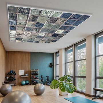 Entdecken Sie unsere vielseitigen Lichtdecken, hier in der Größe 248 x 248cm mit dem Motiv Motiv Steinfliesen - Ihre Beleuchtungslösung für jede Umgebung Beleuchten Sie Ihren Raum nicht nur, sondern schaffen Sie Atmosphäre! Die banjado Lichtdecke verwandelt jeden Ort, ob zu Hause, in Praxen, Büros oder Studios in eine Wohlfühloase. Unsere einzelnen Elemente haben eine genormte Einheitsgröße von 62 x 62cm und können somit in jede gängige Rasterdecken verbaut werden. So finden Sie Ihre passende Ausführung: Gern helfen wir Ihnen, die passende Ausführung zu wählen. Hierfür muss die aktuelle Gegebenheit Ihrer Decke oder Wand beachtet werden. Haben Sie bereits eine Rasterdecke (auch Odenwalddecke genannt)? Hier bestellen Sie lediglich das Motiv + Beleuchtungspanel, denn beides wird in die bereits vorhandene Decke eingelegt. Haben Sie eine glatte Decke mit Lichtauslass oder möchten die Lichtdecke an der Wand befestigen? Hier bestellen Sie bitte Motiv + Beleuchtungspanel + Deckenbefestigung, eine Aufbauanleitung liegt immer bei. Die Lichtdecke kann sowohl an der Decke als auch an der Wand montiert werden, perfekt für kreative Lichtakzente oder alternative Beleuchtungslösungen. Haben Sie bereits eine Lichtdecke und möchten nur das Motiv wechseln? Hier bestellen Sie bitte nur Motiv, der Wechsel ist denkbar einfach. Der Aufbau Ihrer banjado Lichtdecke gestaltet sich unkompliziert, dank einer verständlichen Anleitung, die Ihnen Schritt für Schritt durch den Montageprozess hilft. Für die endgültige Installation und den sicheren Anschluss empfehlen wir die Hinzuziehung eines Fachmanns, um die optimale Funktion und Sicherheit Ihrer Beleuchtung zu gewährleisten. Falls Sie einen Fachmann für die Installation benötigen, geben Sie uns gern Bescheid, wir vermitteln Ihnen gern einen geeigneten Ansprechpartner aus Ihrer Nähe. Steuerung: Steigern Sie Ihr Beleuchtungserlebnis mit der nahtlosen Integration in Ihr Smart Home. Durch die Kompatibilität mit der SmartLife App, Alexa und Google Assistant wird Ihr Smartphone zur zentralen Steuerungseinheit. Ihr Handy fungiert hierbei sozusagen als Fernbedienung. Legen Sie individuelle Lichtszenen in der App fest, die bei Aktivierung über den Wand-Ein-/Ausschalter immer wieder abgerufen werden können ohne Handy. Mit der Szenenfunktion in der Smart App können Sie die Beleuchtung personalisieren und steuern, sodass sie auf Ihre individuellen Bedürfnisse, Tagesrhythmus und Stimmung zugeschnitten ist. Beispielsweise können Sie sich in der Morgendämmerung durch ein sanftes Licht wecken lassen oder das Licht der Praxis werktags um 7 Uhr automatisch einschalten lassen. Dieses kann dann natürlich auch zu einer bestimmten Zeit automatisch ausgeschaltet werden. Motivwahl: Diese einzigartige Lichtdecke zeichnet sich durch ihre Fähigkeit aus, die Lichtfarbe je nach gewähltem Motiv anzupassen - ein Baum wirft ein sanftes grünes Licht, während eine Wolkendecke Ihren Raum in ein beruhigendes blaues Leuchten hüllt. Berücksichtigen Sie dies bitte bei Ihrer Motivauswahl. Sie können das Motiv jederzeit ohne großen Aufwand austauschen, ob nach Jahreszeit oder anderem Anlass, unsere Auswahl lässt kaum Wünsche offen. Wir fertigen Ihnen gern eine personalisierte Lichtdecke mit einem eigenen Motiv oder Logo oder Foto, schreiben Sie uns jederzeit an. Technische Daten: Das Motiv ist auf einer 4mm starken Acrylglas Scheibe aufgebracht, das Gesamtgewicht Ihrer Ausführung beträgt 78,9kg. Die Farbtemperatur lässt sich frei einstellen von 3000 bis 6000 Kelvin, damit können Sie stufenlos zwischen warmweiß, neutralweiß und kaltweiß wählen. Die Gesamtleistung bei Ihrer gewählten Ausführung beträgt 640W. Der Lichtstrom beträgt 3600 Lumen, die Nennspannung 230 V. Die Lichtdecke ist mit Schutzart IP20 für den Innenbereich konzipiert und sollte nicht im Nassbereich verwendet werden.